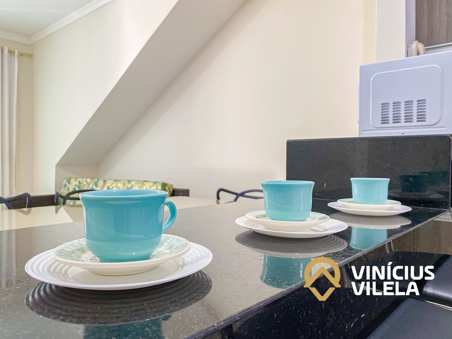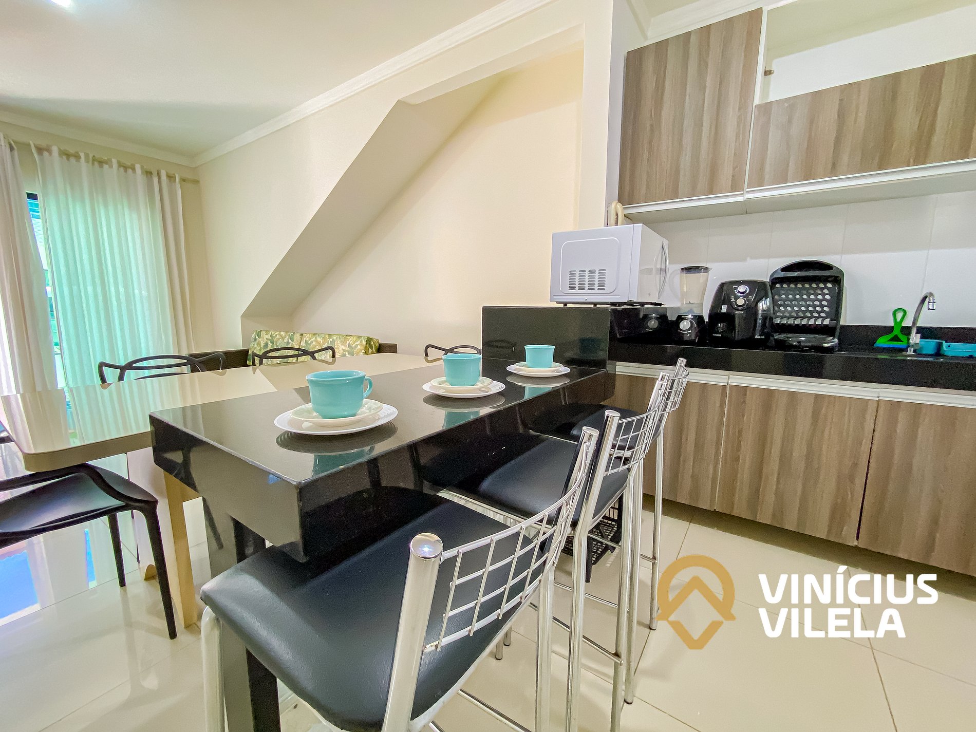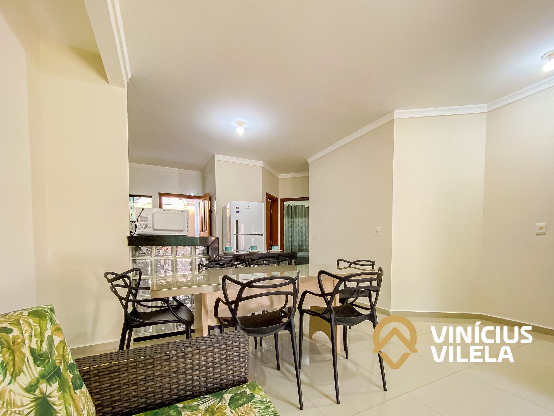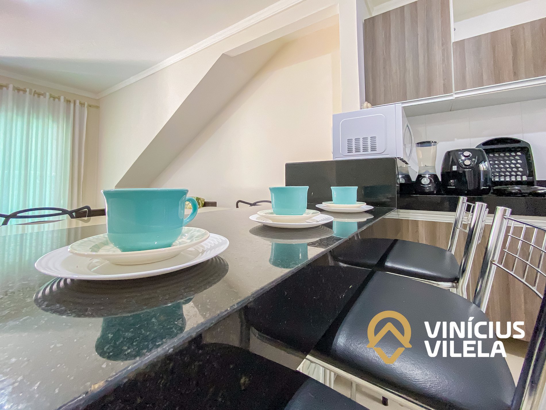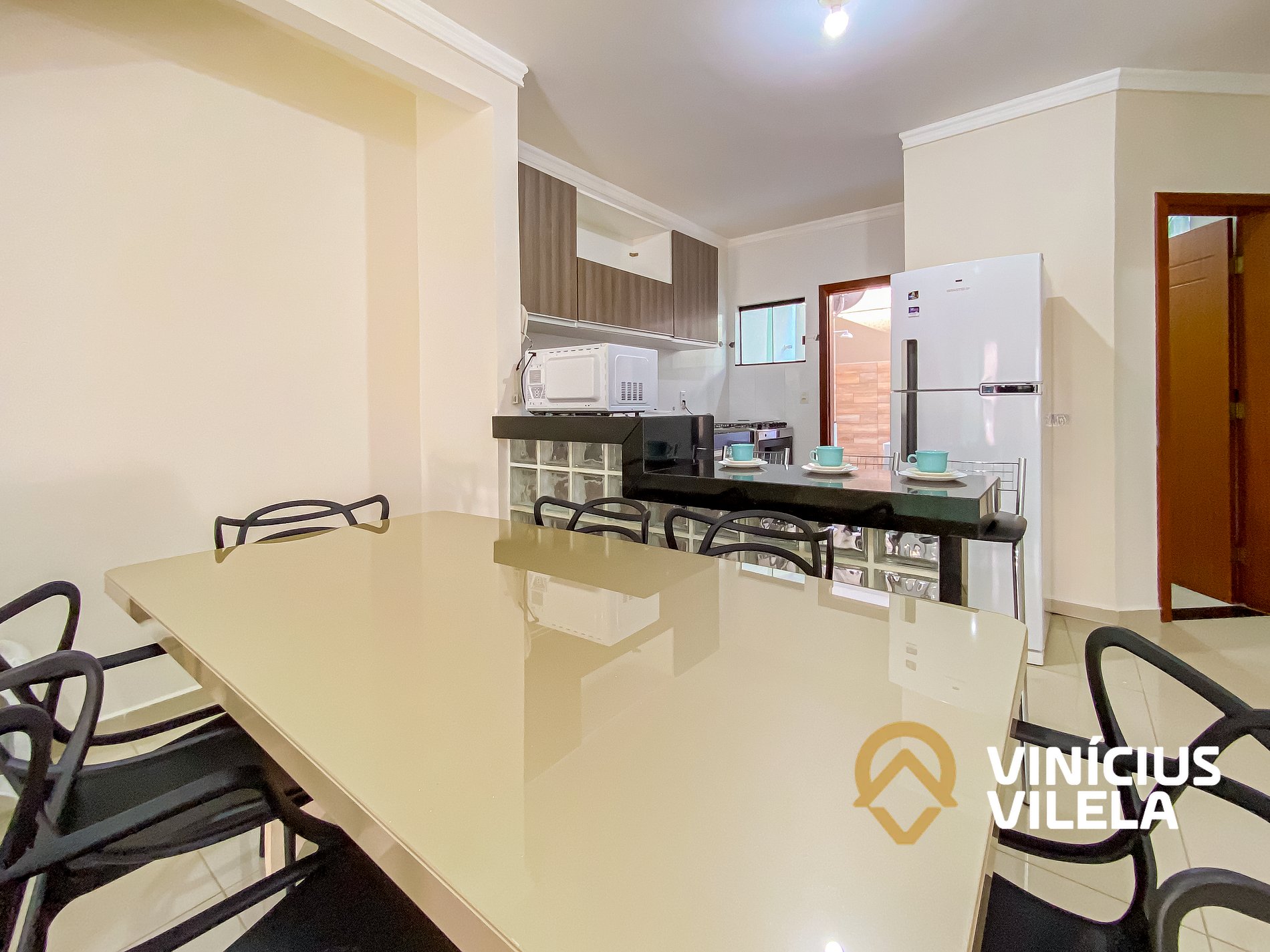 O apartamento conta com 3 quartos, sendo 1 suíte, todos com ar condicionado Split, roupas de cama e banho, na sala com rack, sofá e TV , internet Wi-fi 300MBPS exclusiva do apartamento. Sala de jantar com mesa, cozinha completa com armários , fogão, airfrier, micro ondas, forno elétrico e utensílios, além de área de serviço com maquina lavar.