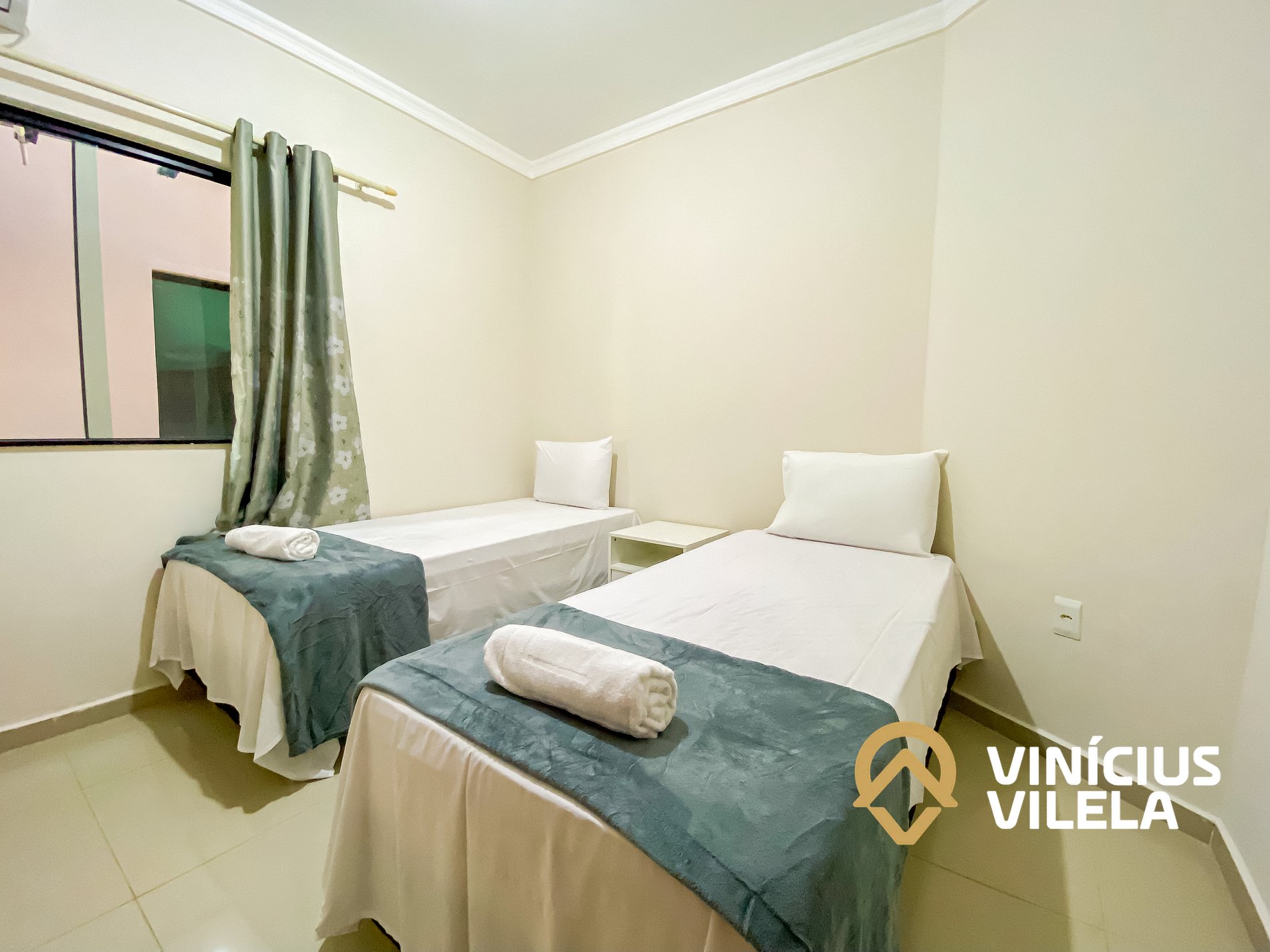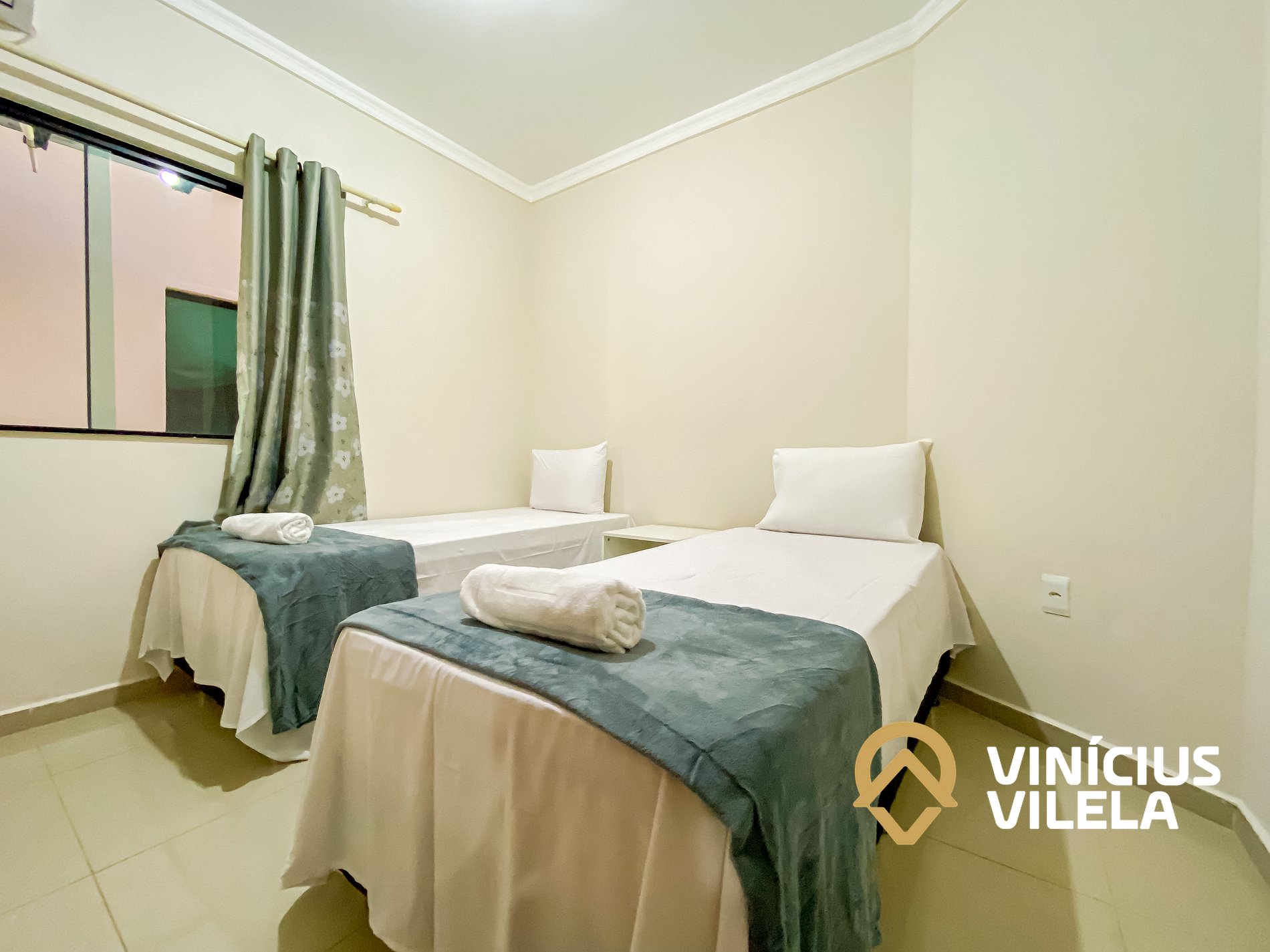 - Acomodações com 3 quartos sendo 1 suíte, ambos com ar condicionado