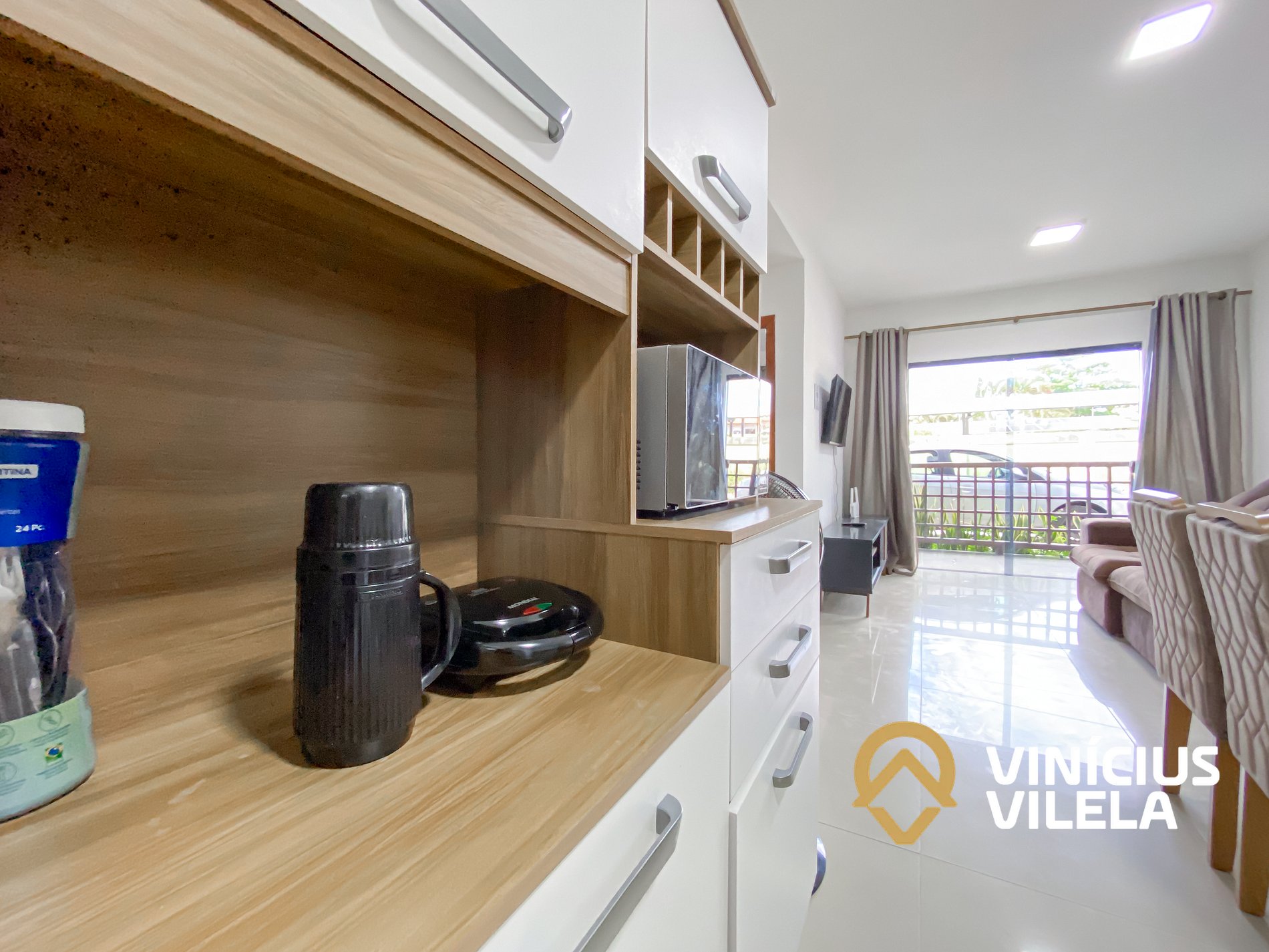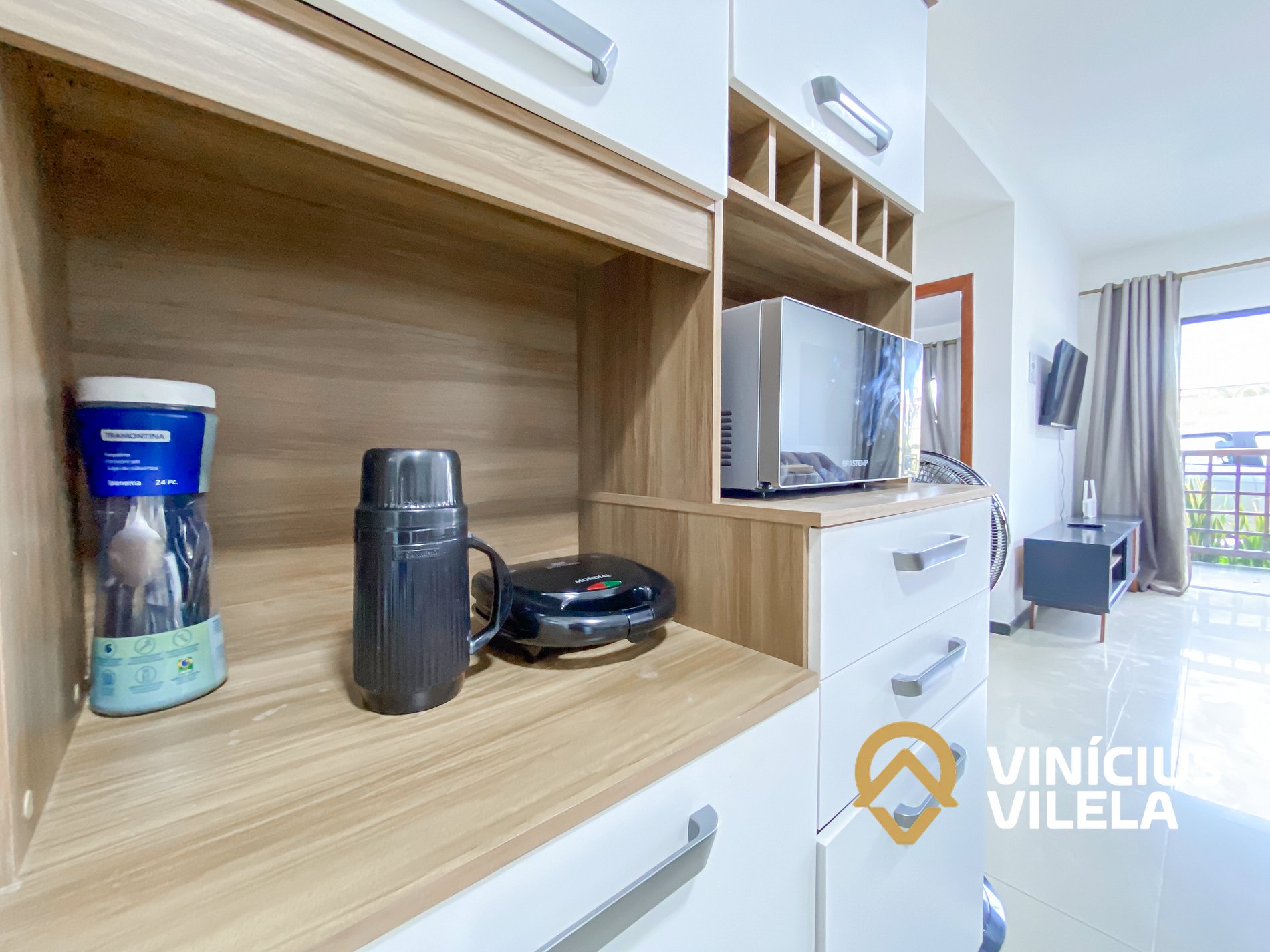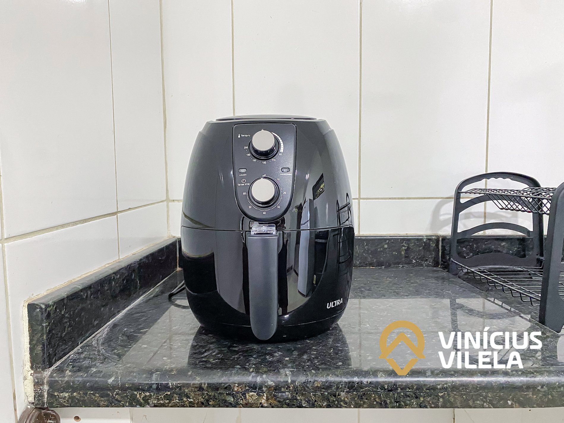 A cozinha oferece eletrodomésticos como, fogão, airfryer geladeira, utensílios, panelas, talheres, pratos, xícaras, garrafa térmica de café ,copos de vidro, e nas gavetas sempre você vai encontrar utensílios essenciais em uma cozinha.