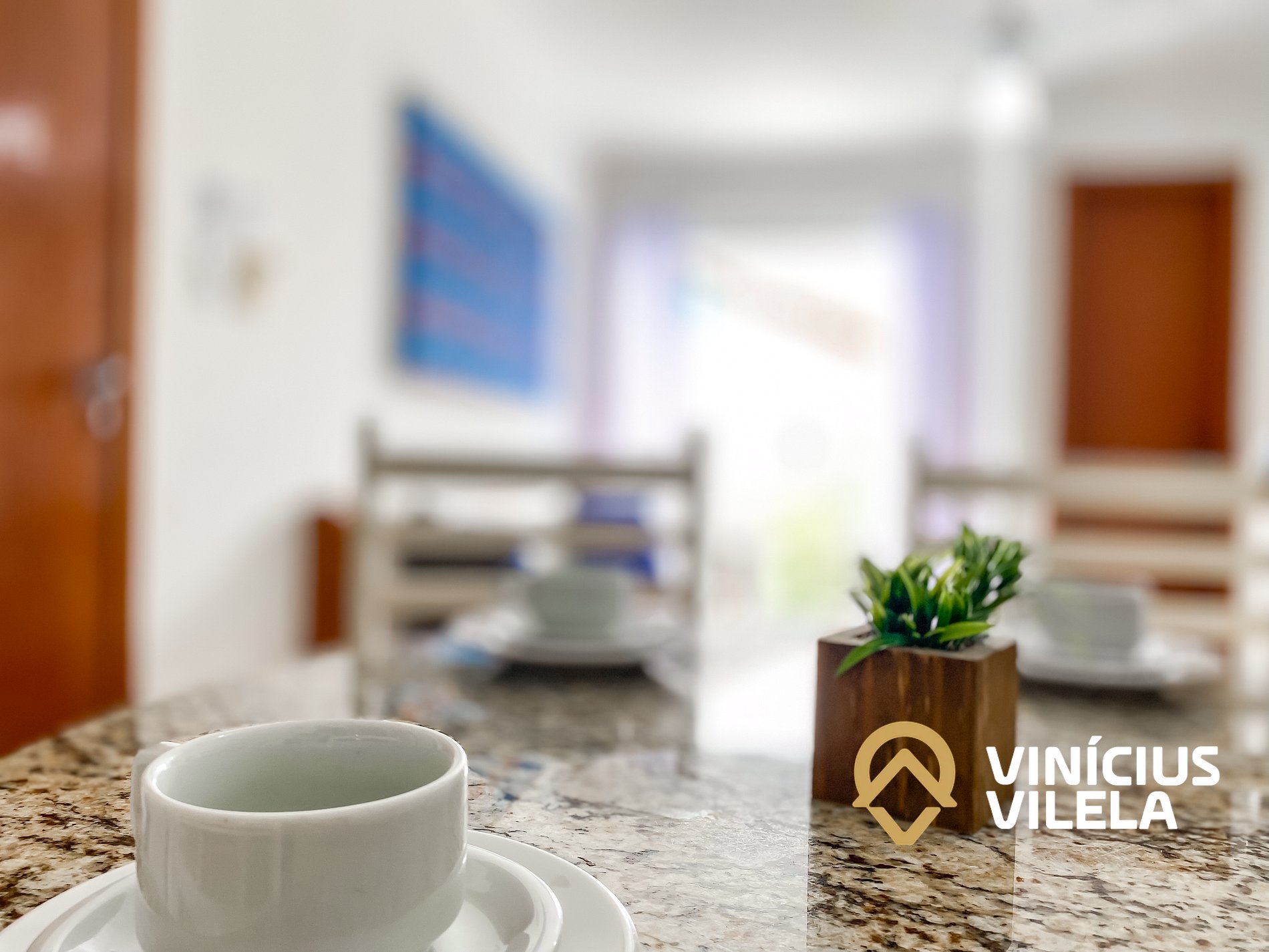 O Apto fica no pavimento superior no Residencial Monte Sião, condômino situado a poucos metros da praia de Taperapuã. Possui 1 vaga de estacionamento gratuito, dentro do condomínio.