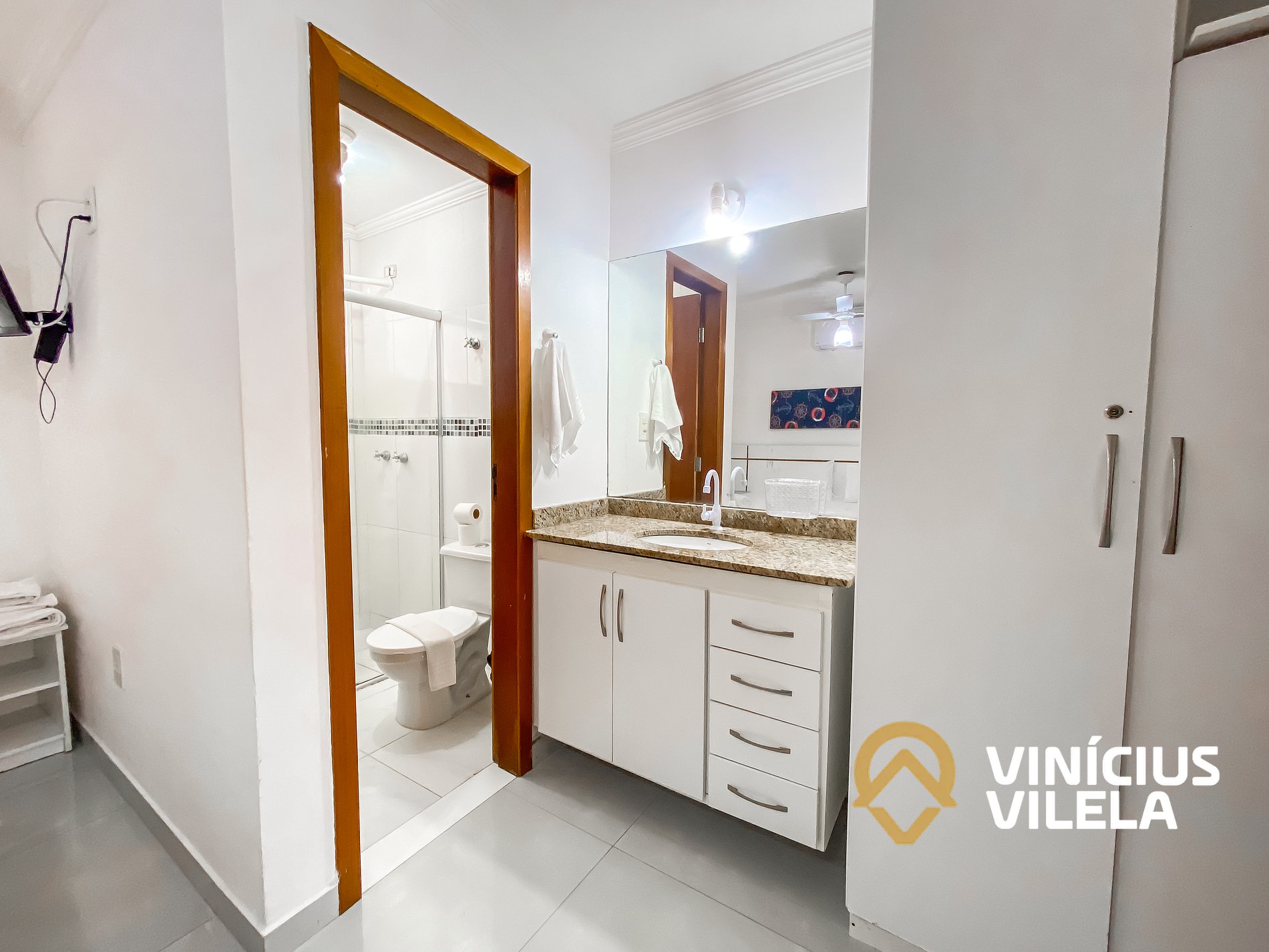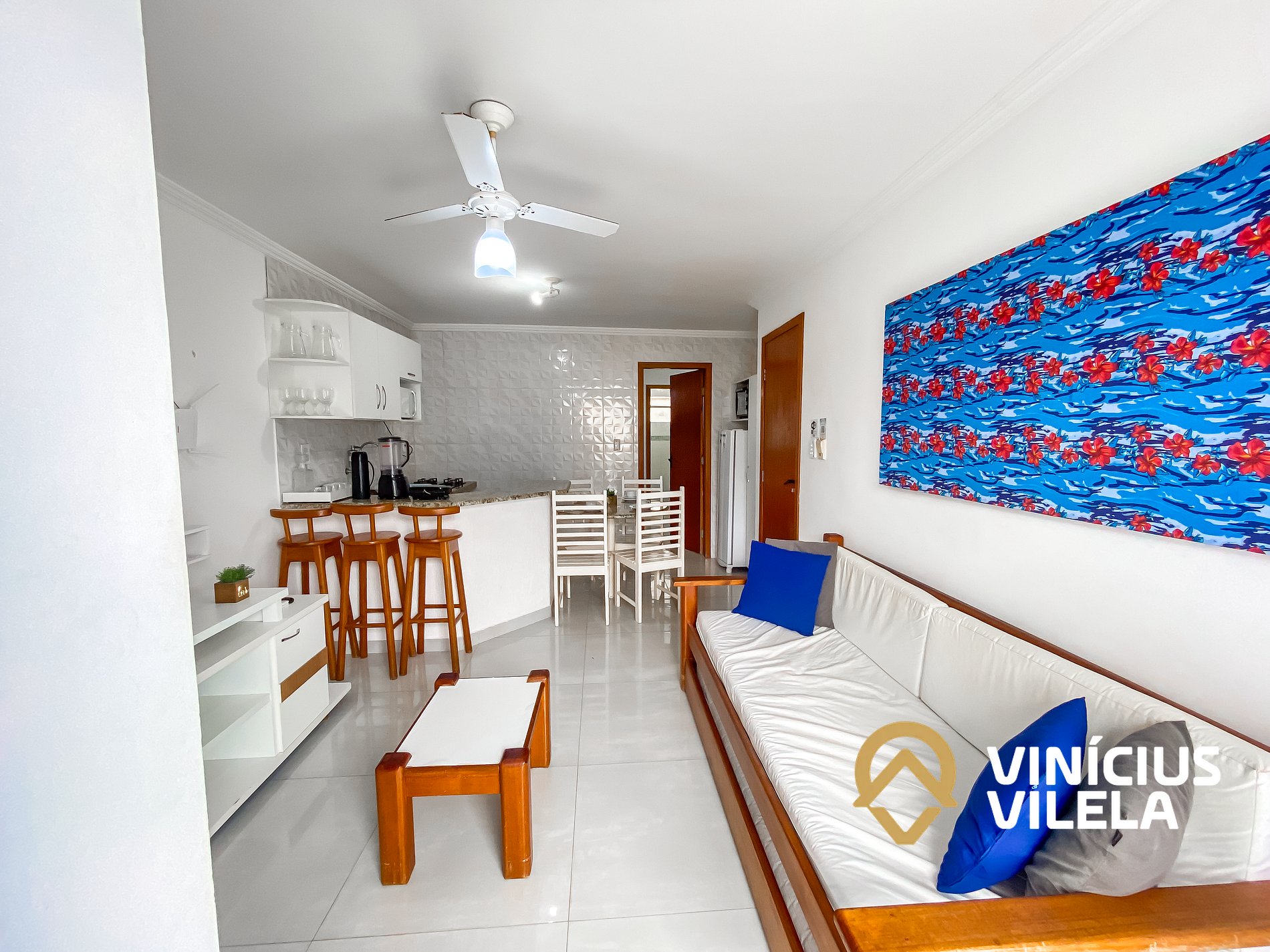 O Apto fica no pavimento superior no Residencial Monte Sião, condômino situado a poucos metros da praia de Taperapuã. Possui 1 vaga de estacionamento gratuito, dentro do condomínio.