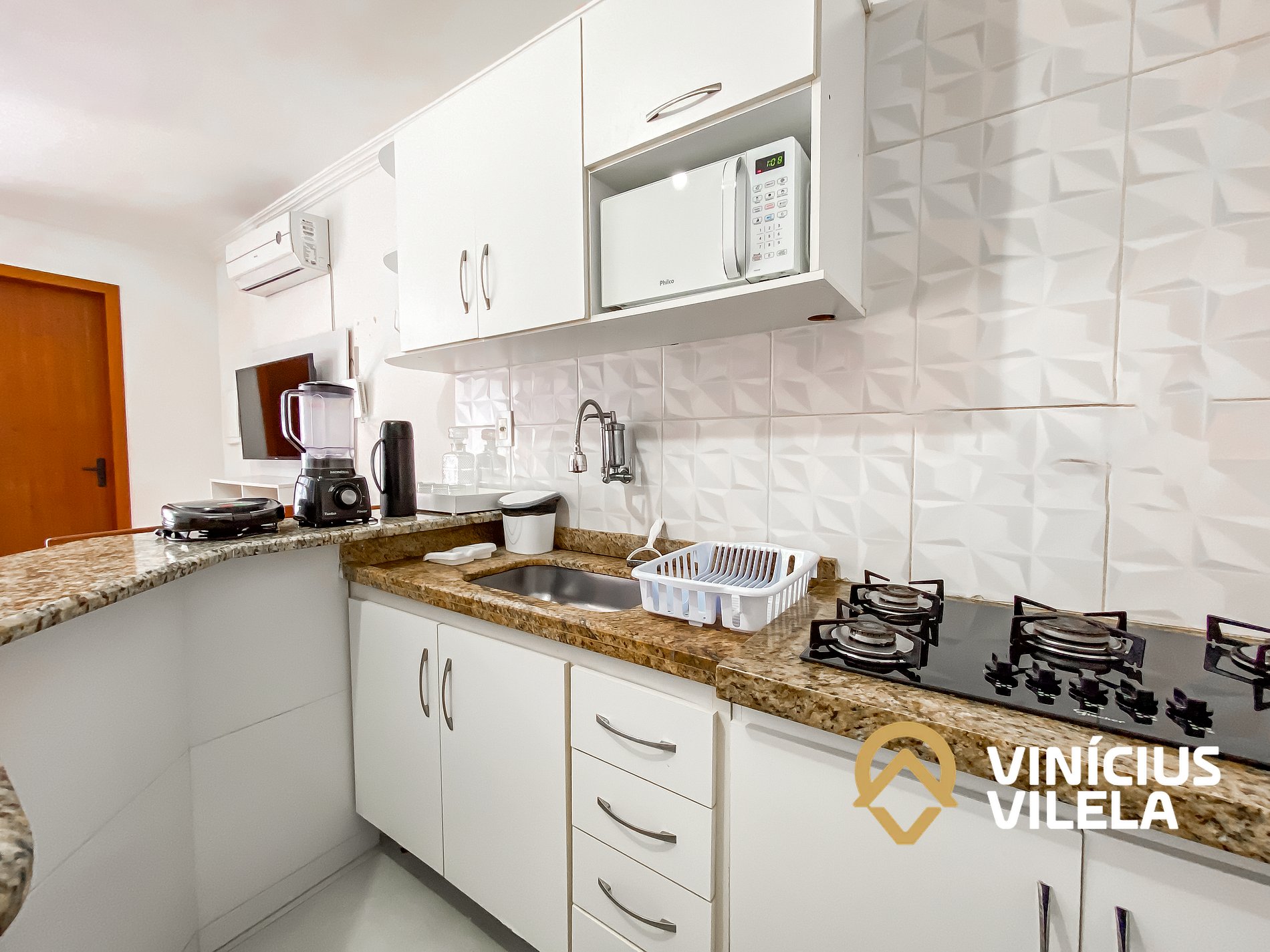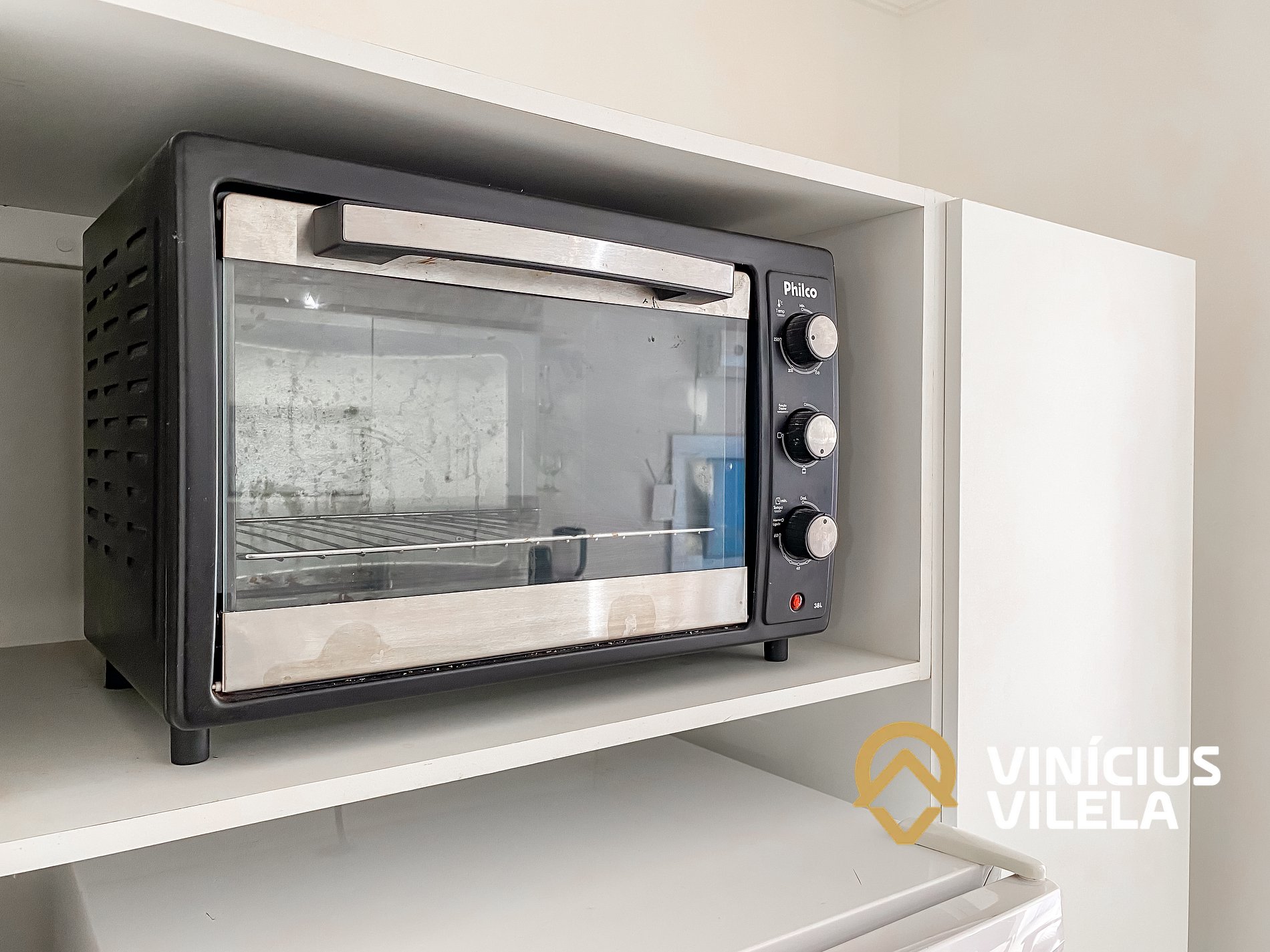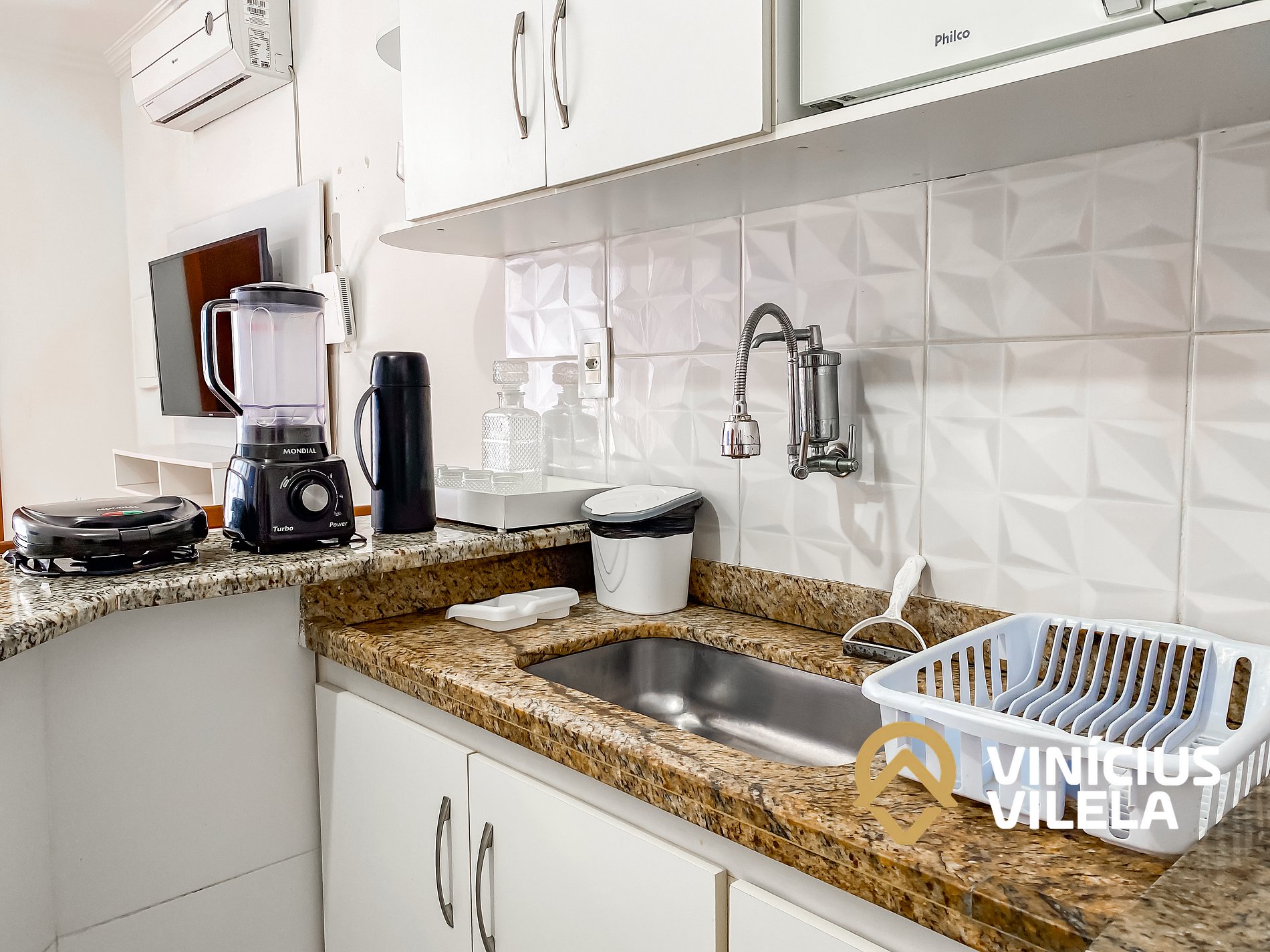 A cozinha é bem completa e oferece eletrodomésticos como liquidificador, micro-ondas, sanduicheira, voltou, airfryer, geladeira, forno, utensílios, panelas, talheres, pratos, xícaras, garrafa térmica de café ,copos de vidro, e nas gavetas sempre você vai encontrar pano de prato e outros utensílios essenciais em uma cozinha.