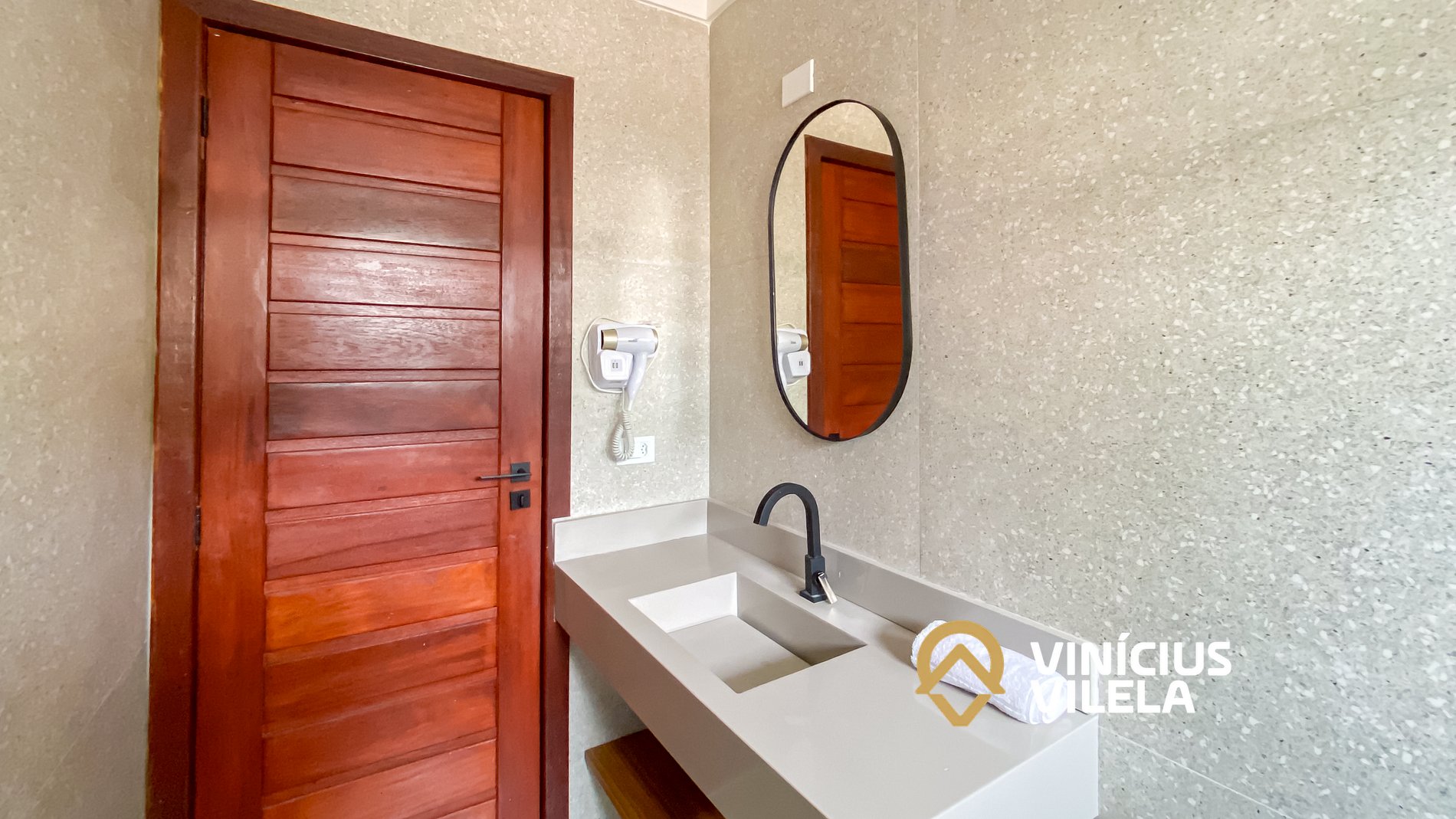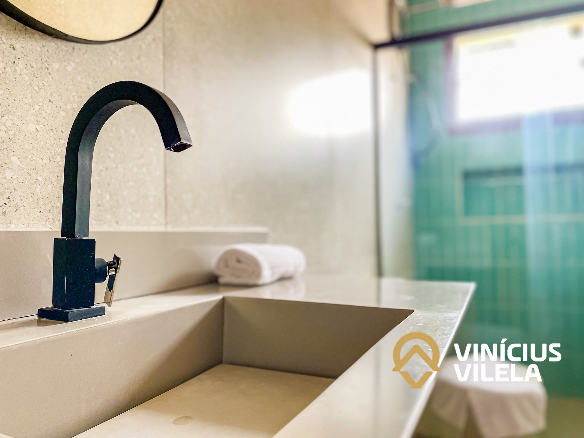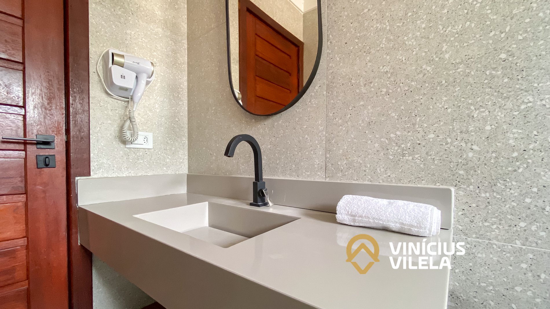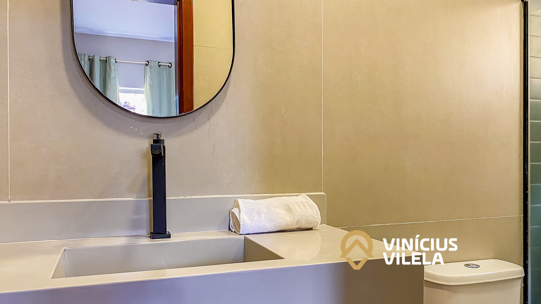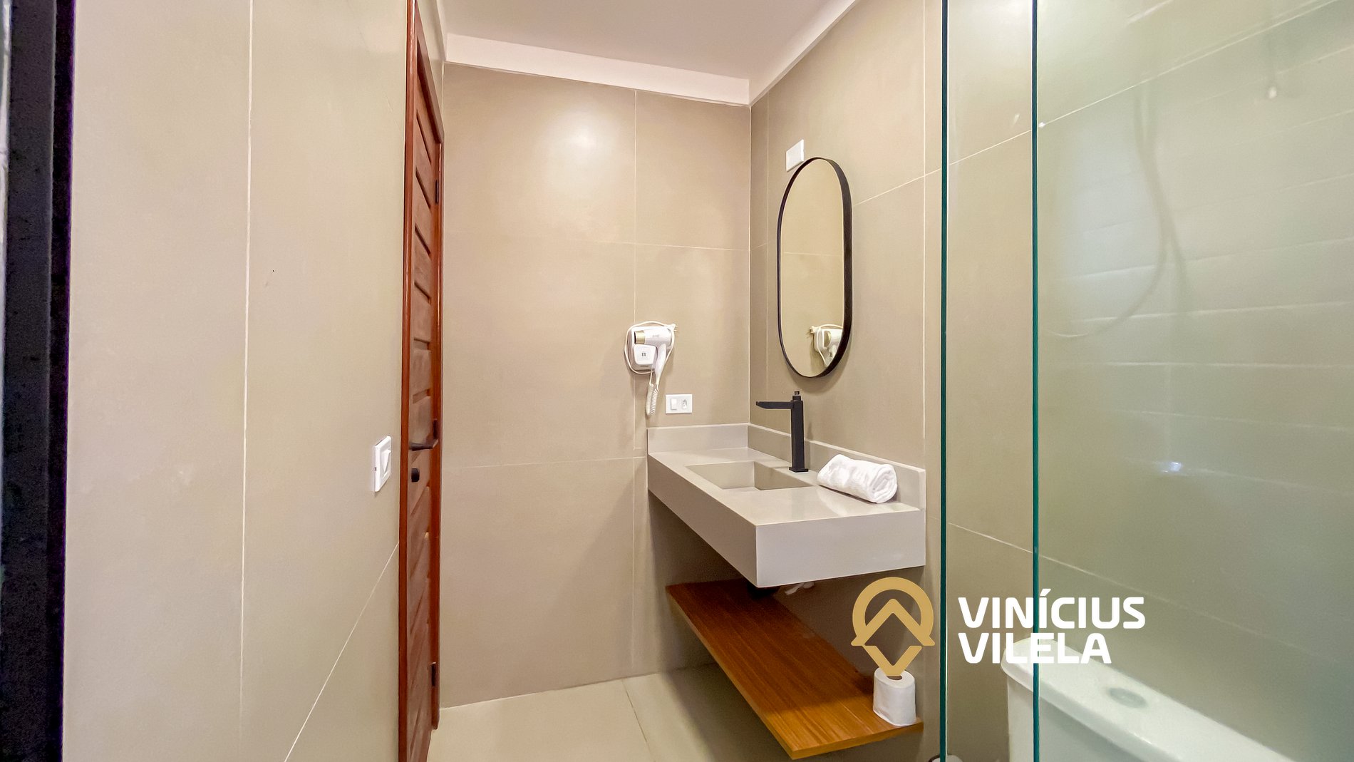 O apto dispõe de 2 banheiros com chuveiro elétrico.