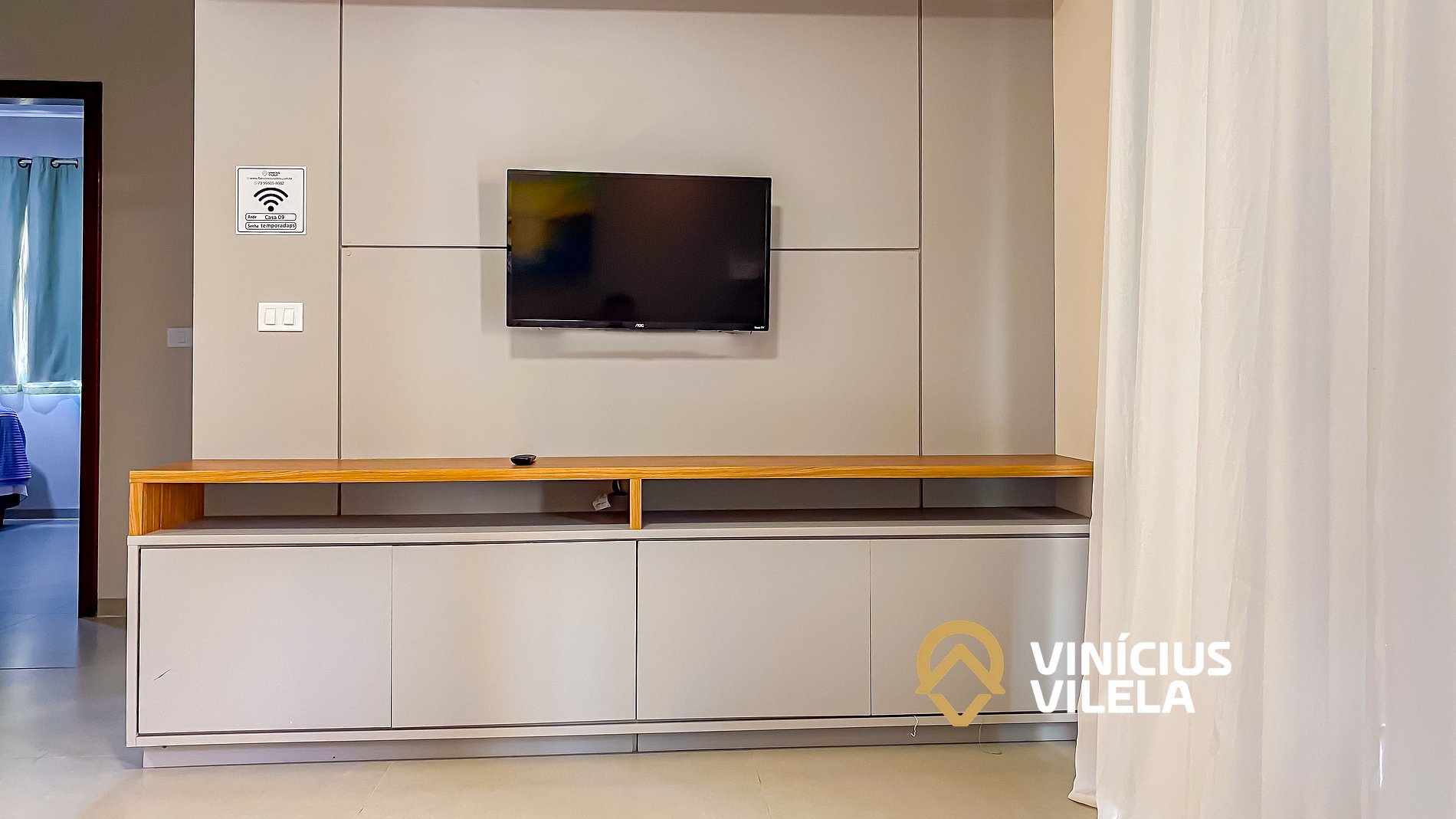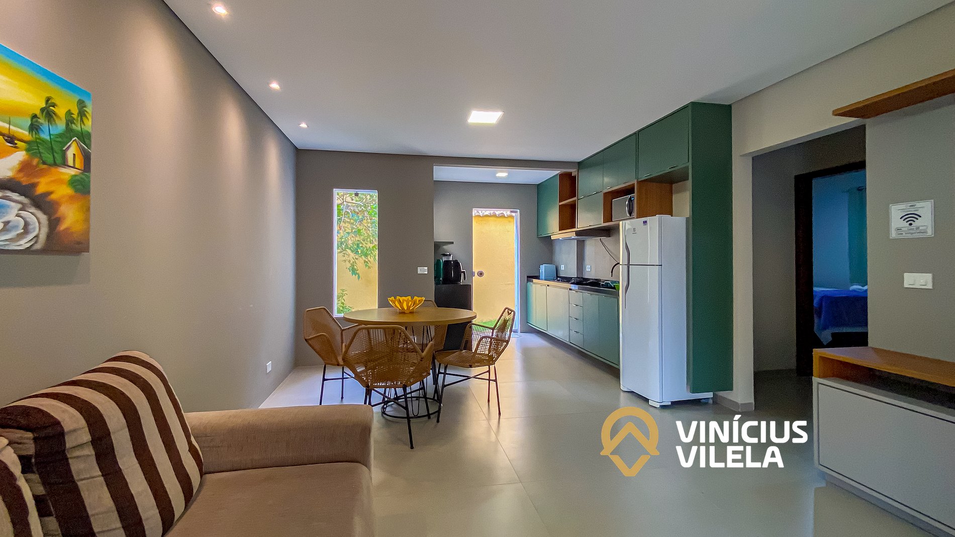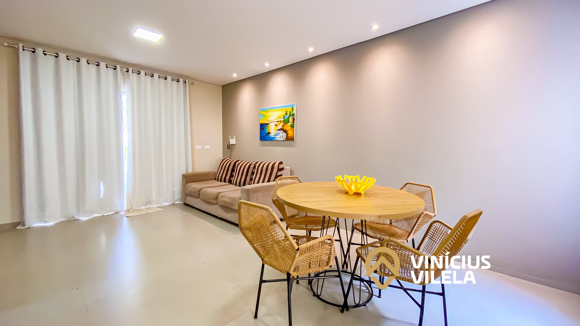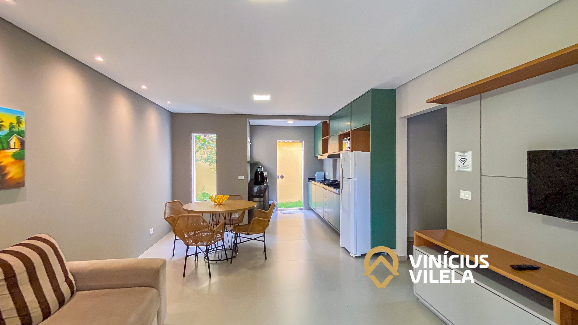 Logo na entrada possui uma sala conjugada com a copa com sofá , rack e TV tela plana. Mesa de vidro com 4 cadeiras.