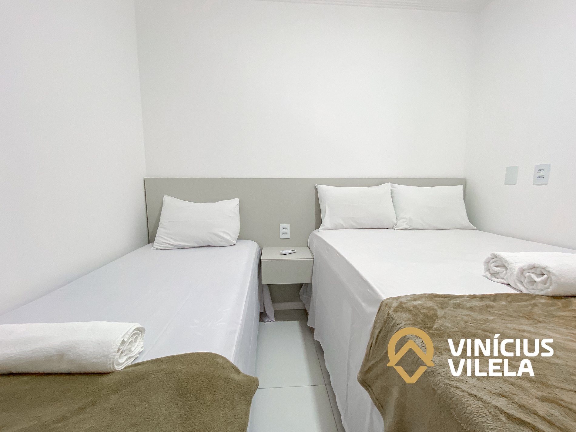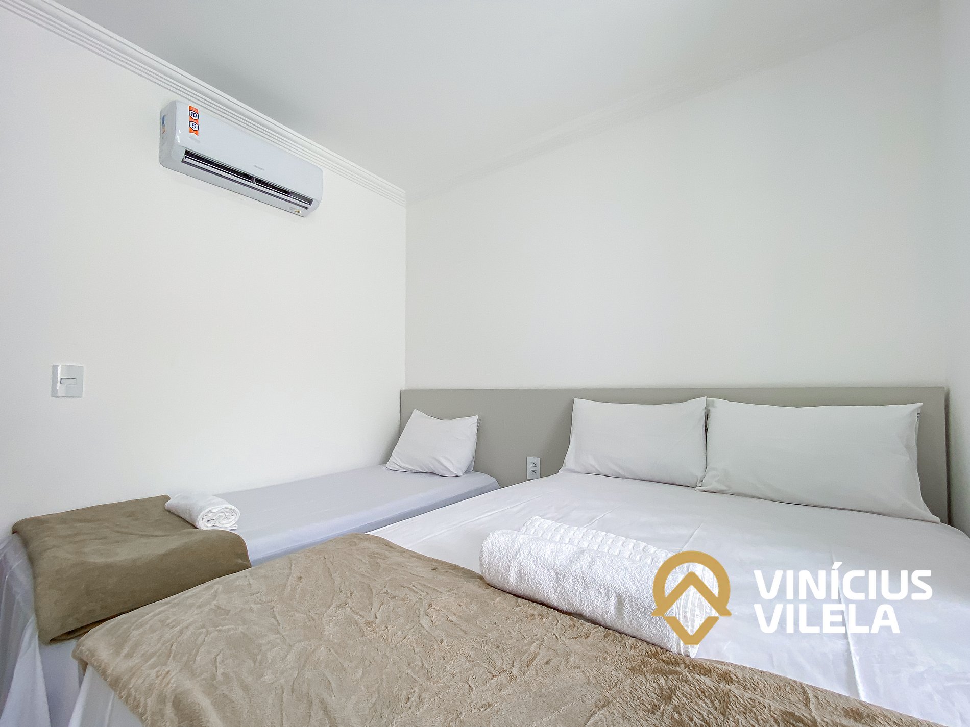 - 3 quartos sendo 2 suítes e 1 demi-suíte, ambos com ar condicionado