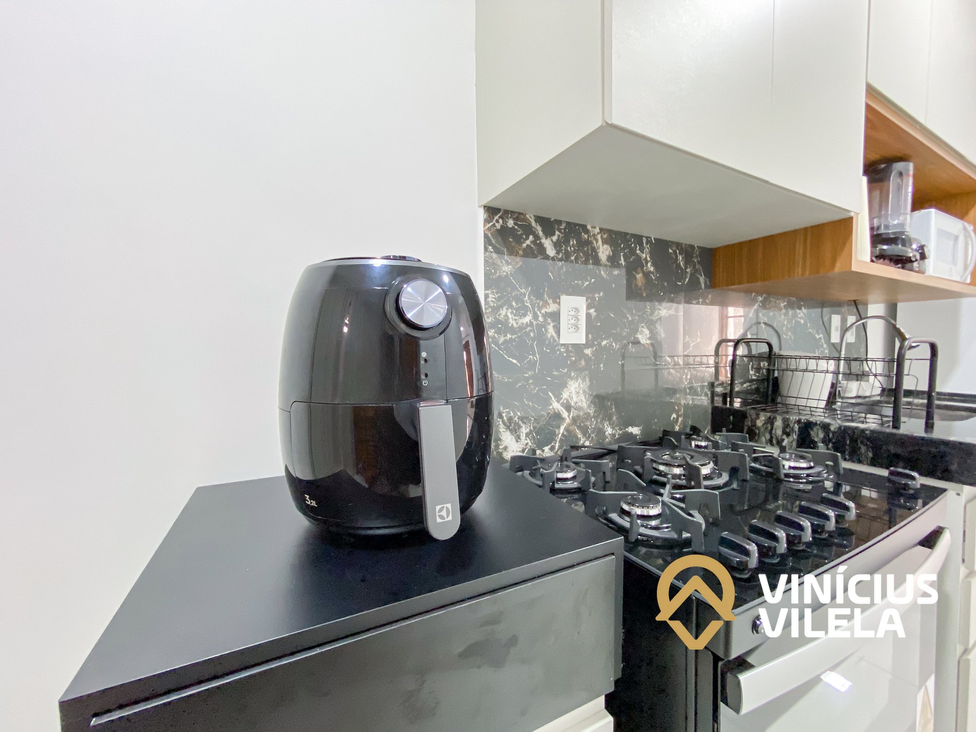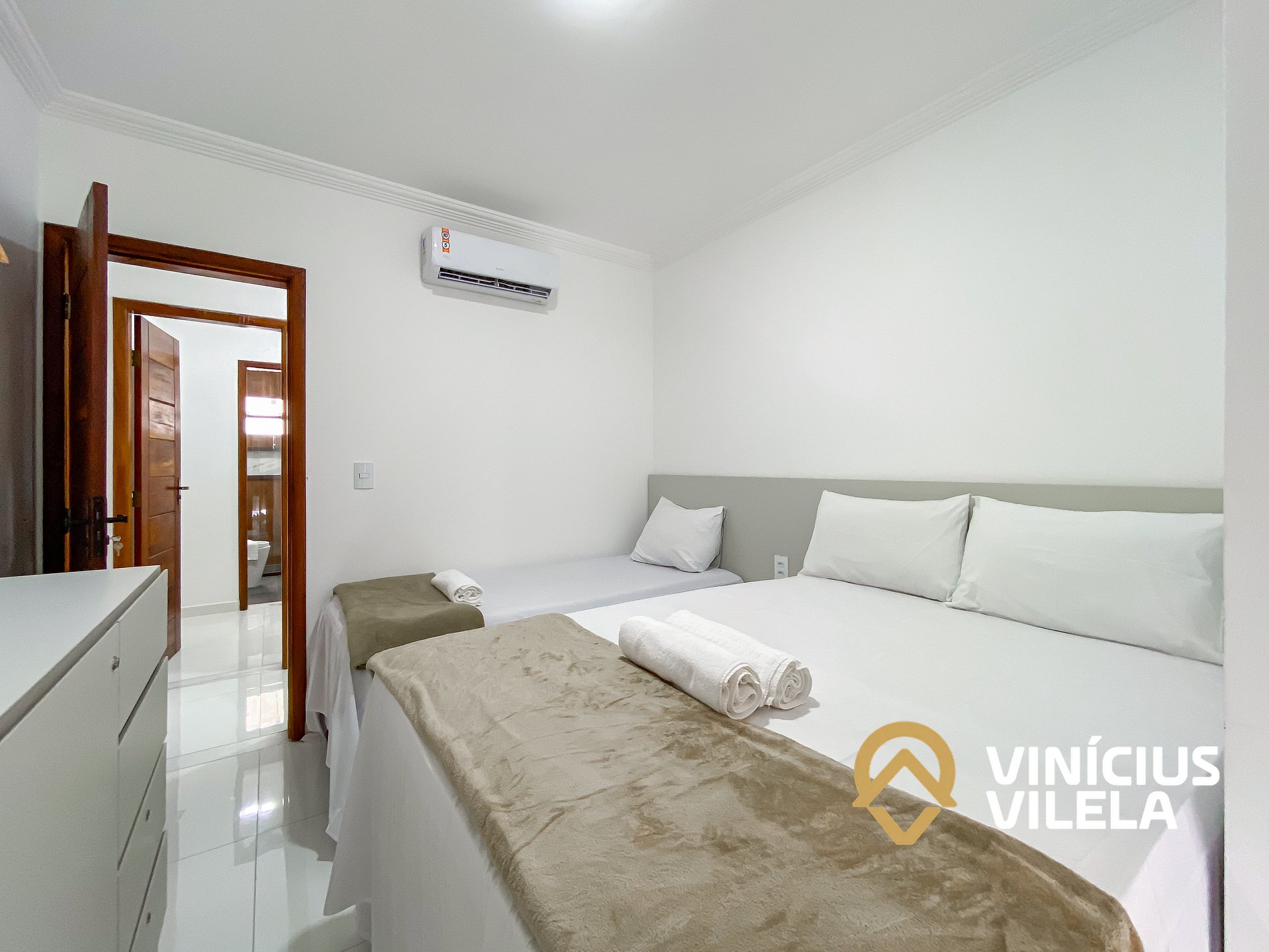 - 3 quartos sendo 2 suítes e 1 demi-suíte, ambos com ar condicionado