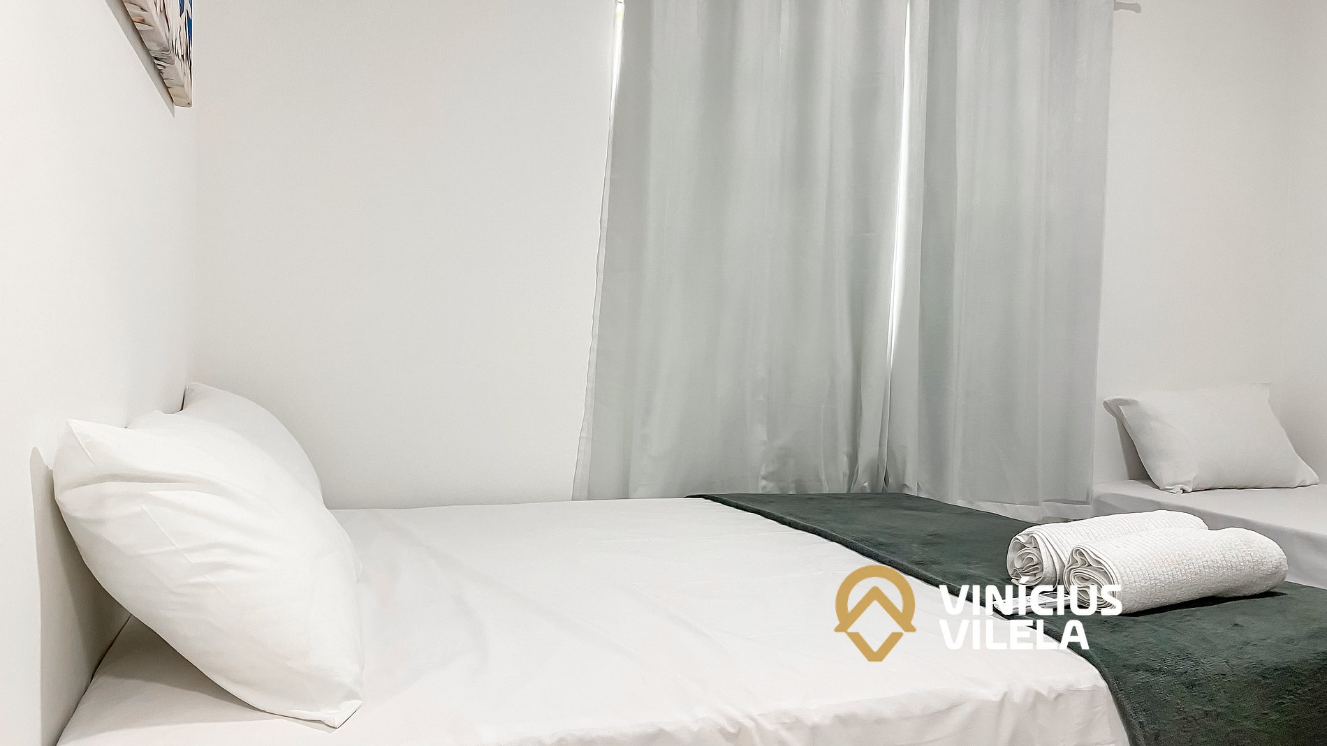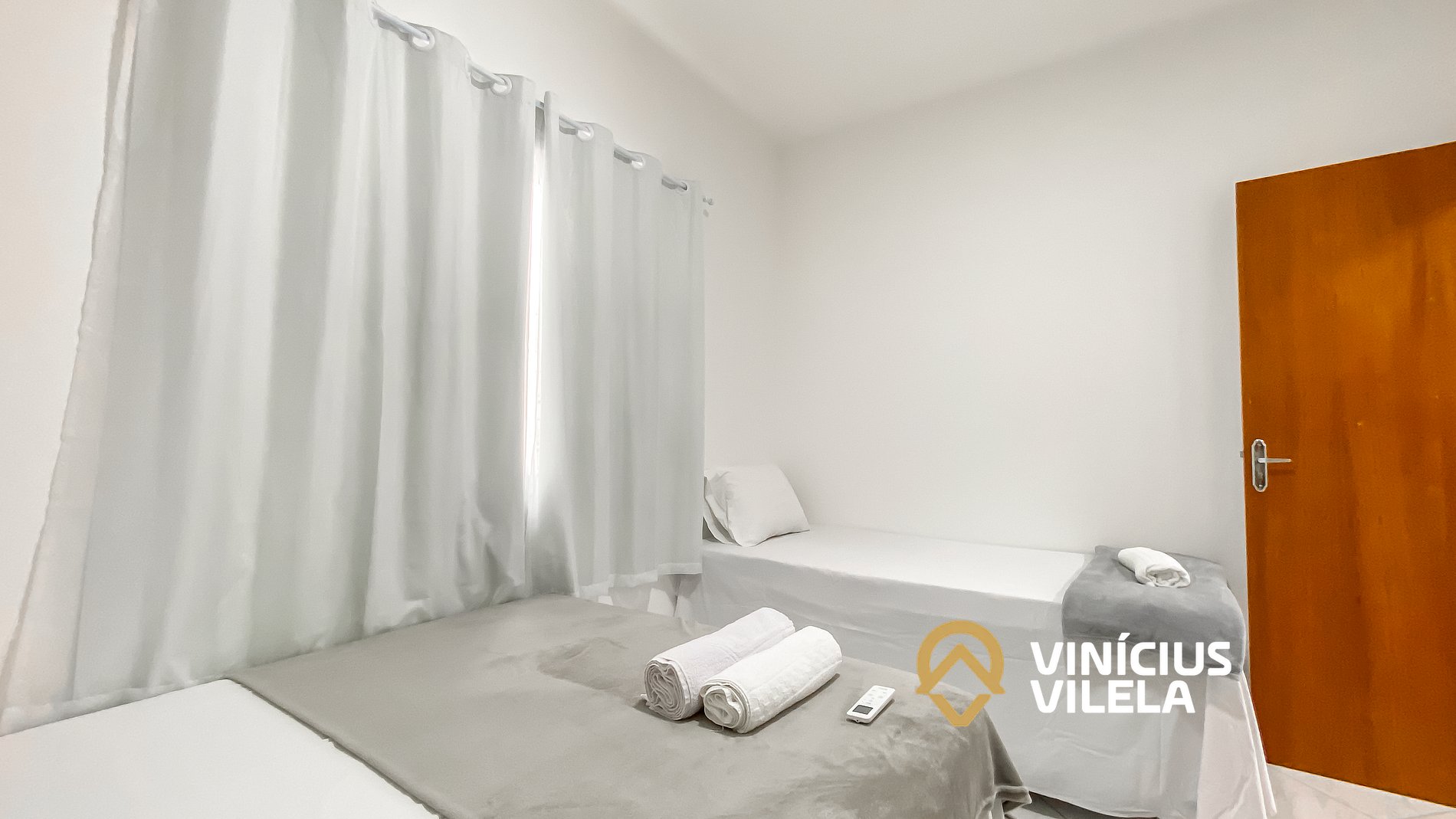 O quarto possui ar condicionado, 01 cama de casal e 1 camas de solteiro , travesseiros ,enxoval de cama e banho(1 unidade para cada hospede conforme a contratação).