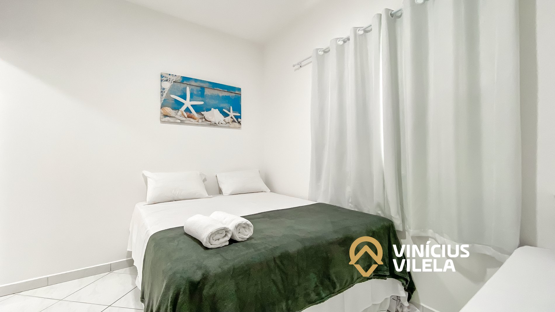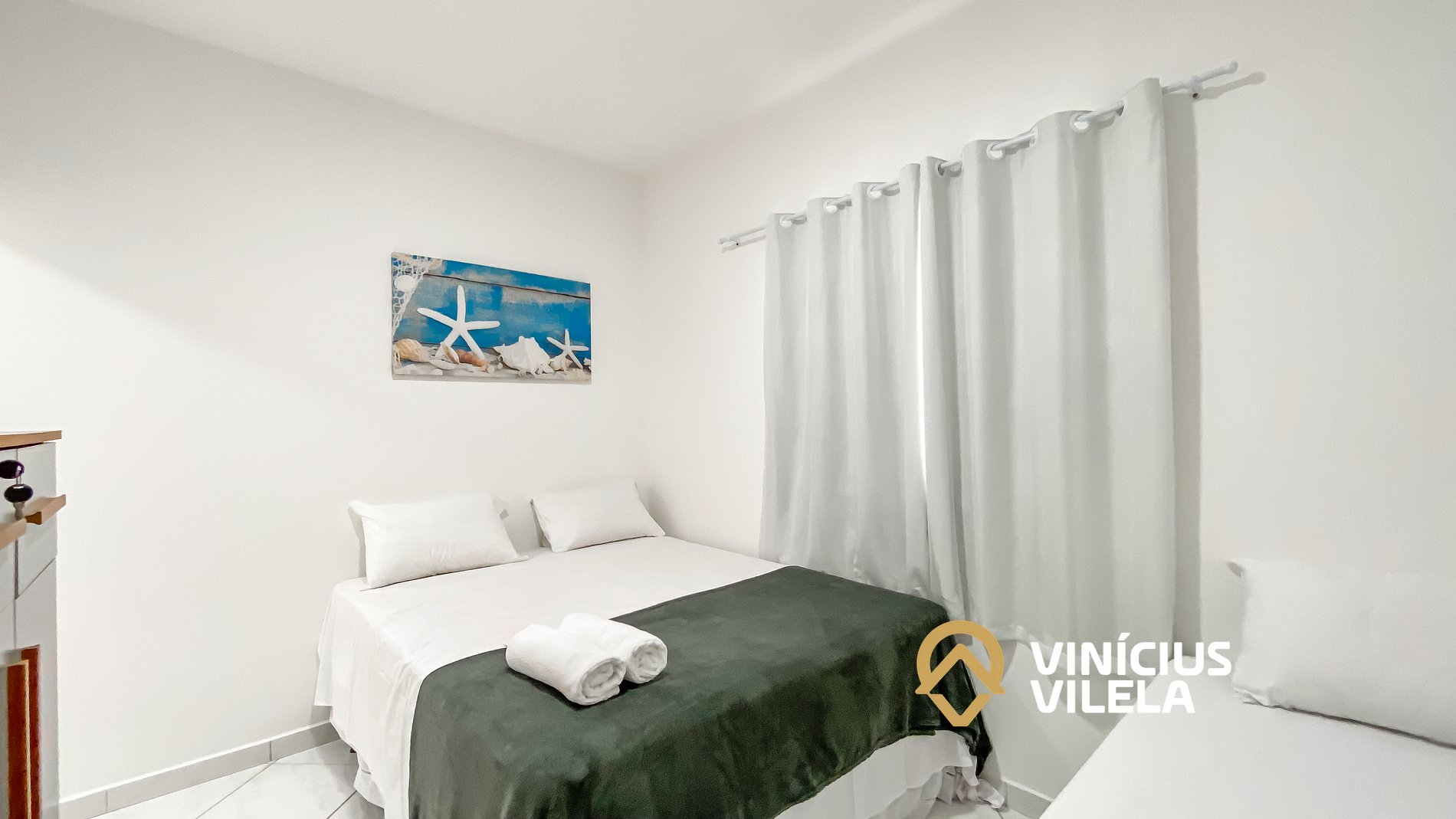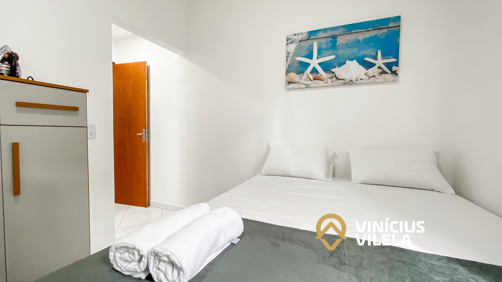 O Apto térreo no Residencial Vila Tropical, condomínio situado a poucos metros da praia de Taperapuã. Possui 1 vaga de estacionamento gratuito, dentro do condomínio. (não temos vagas adicionais)