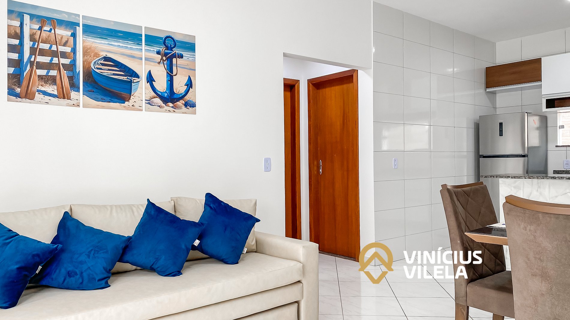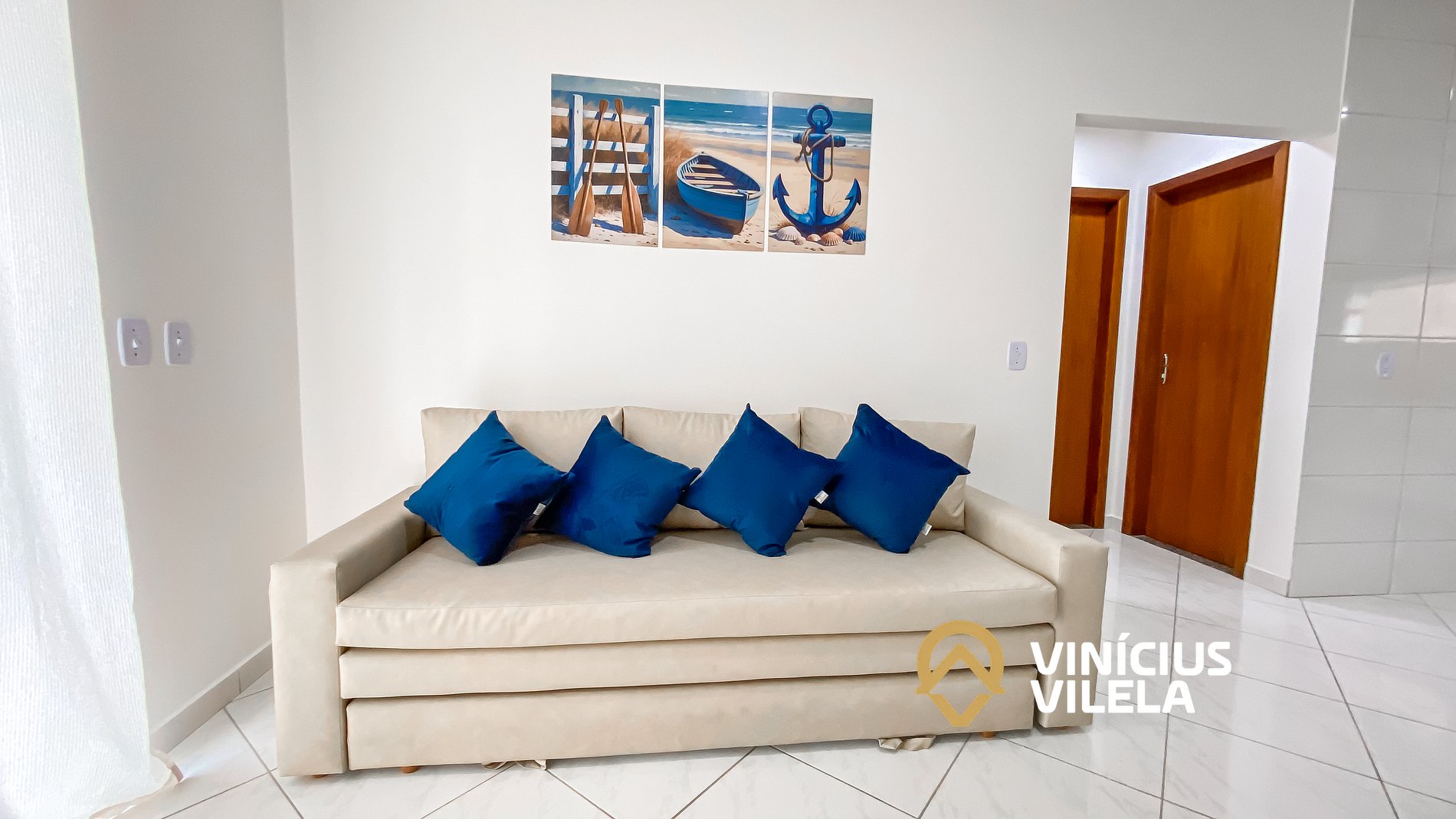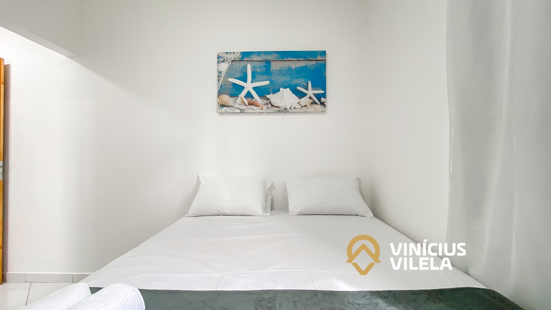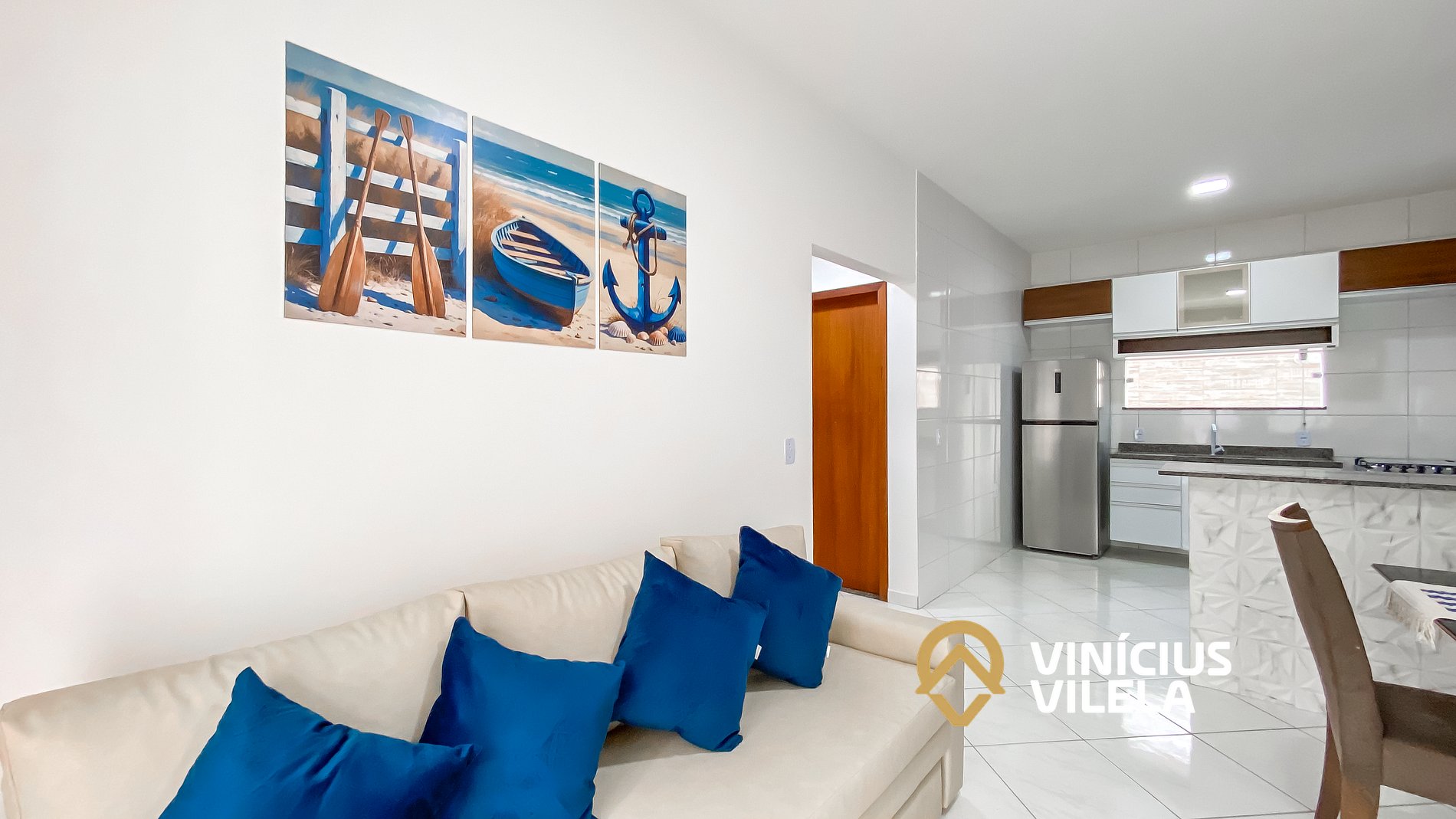 O Apto térreo no Residencial Vila Tropical, condomínio situado a poucos metros da praia de Taperapuã. Possui 1 vaga de estacionamento gratuito, dentro do condomínio. (não temos vagas adicionais)