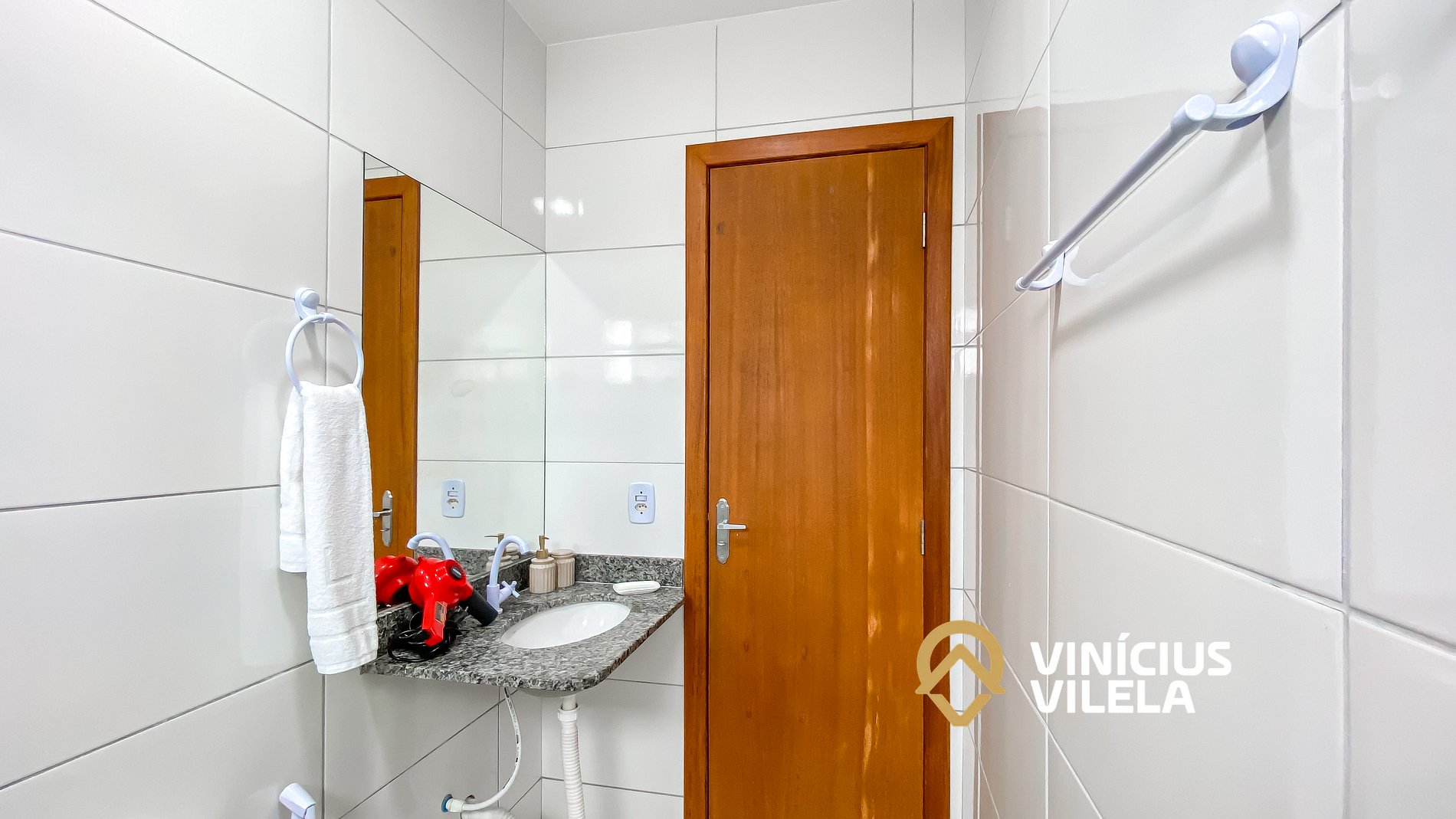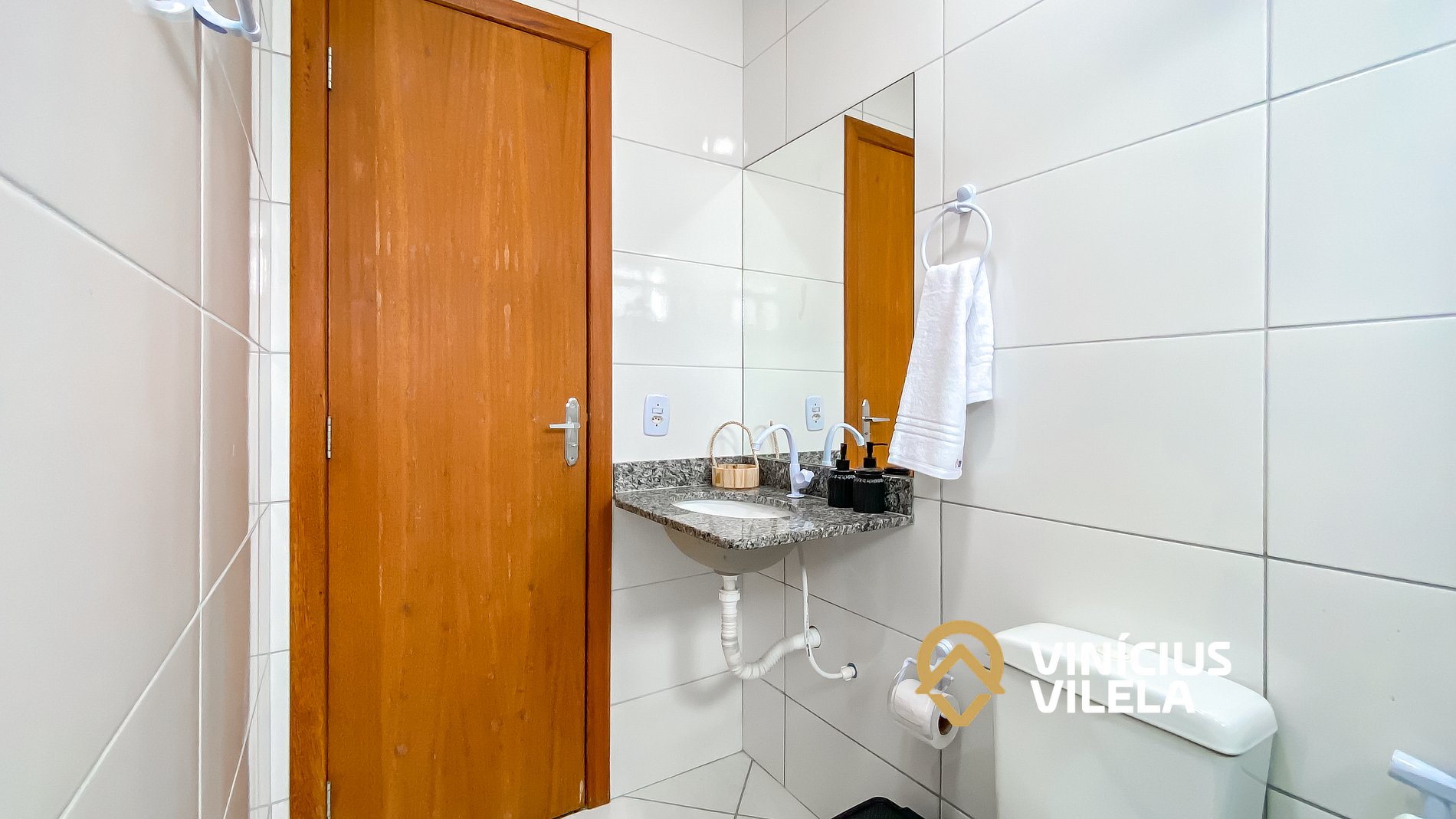 O apto dispõe de 2 banheiros com chuveiro elétrico.