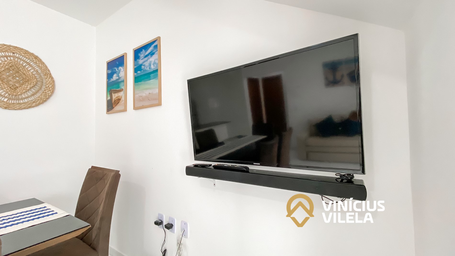 Logo na entrada possui uma sala conjugada com a copa com sofá , rack e TV tela plana. Mesa com 4 cadeiras.