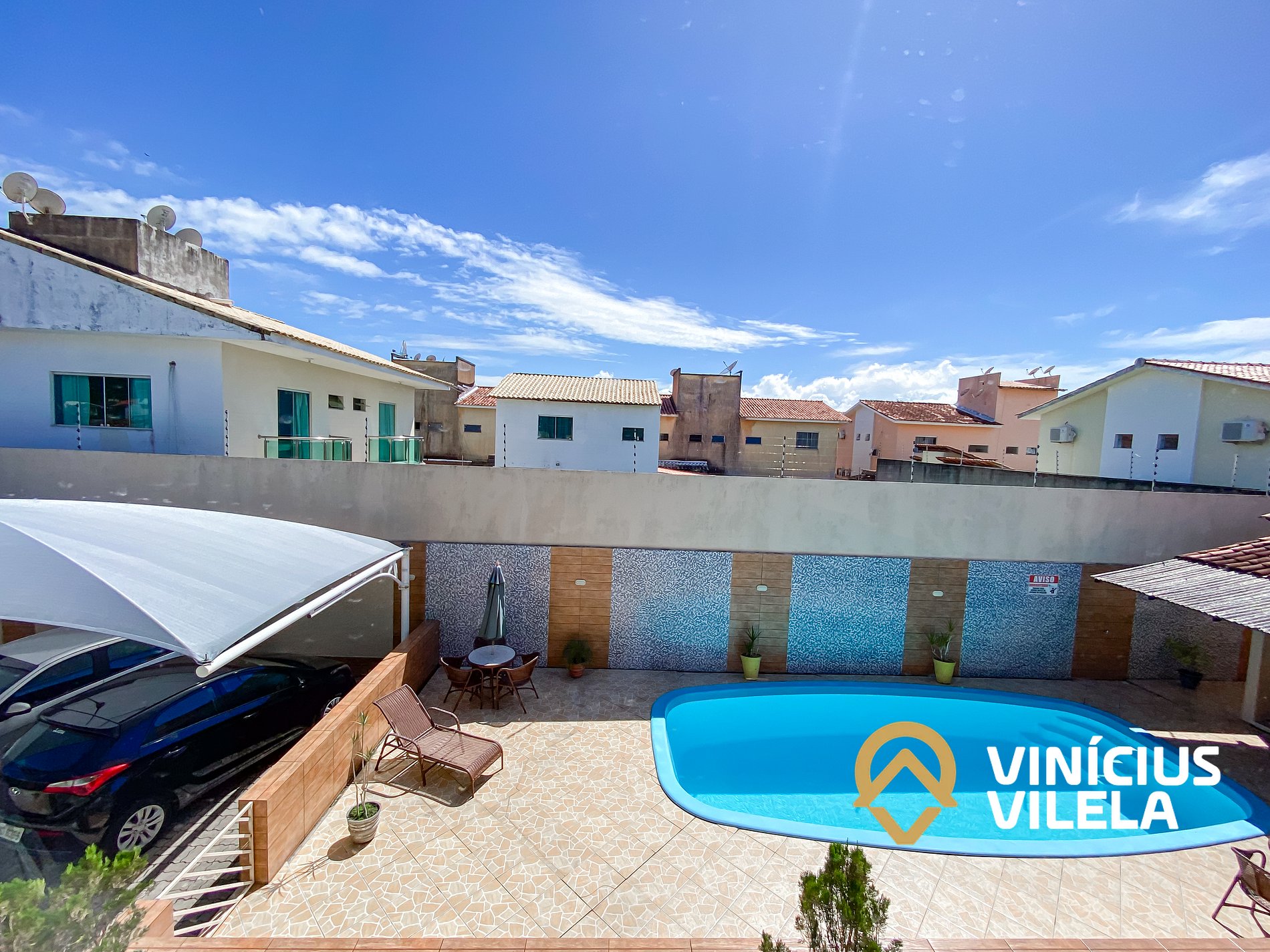 O condomínio oferece piscina, área gourmet para momentos de lazer e confraternização, além de garagem coberta, proporcionando mais conforto e segurança aos hóspedes.