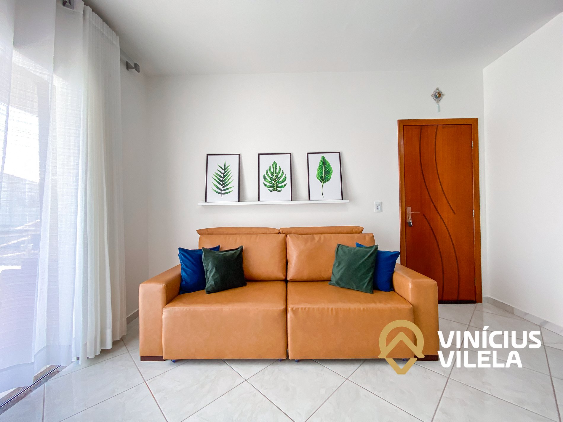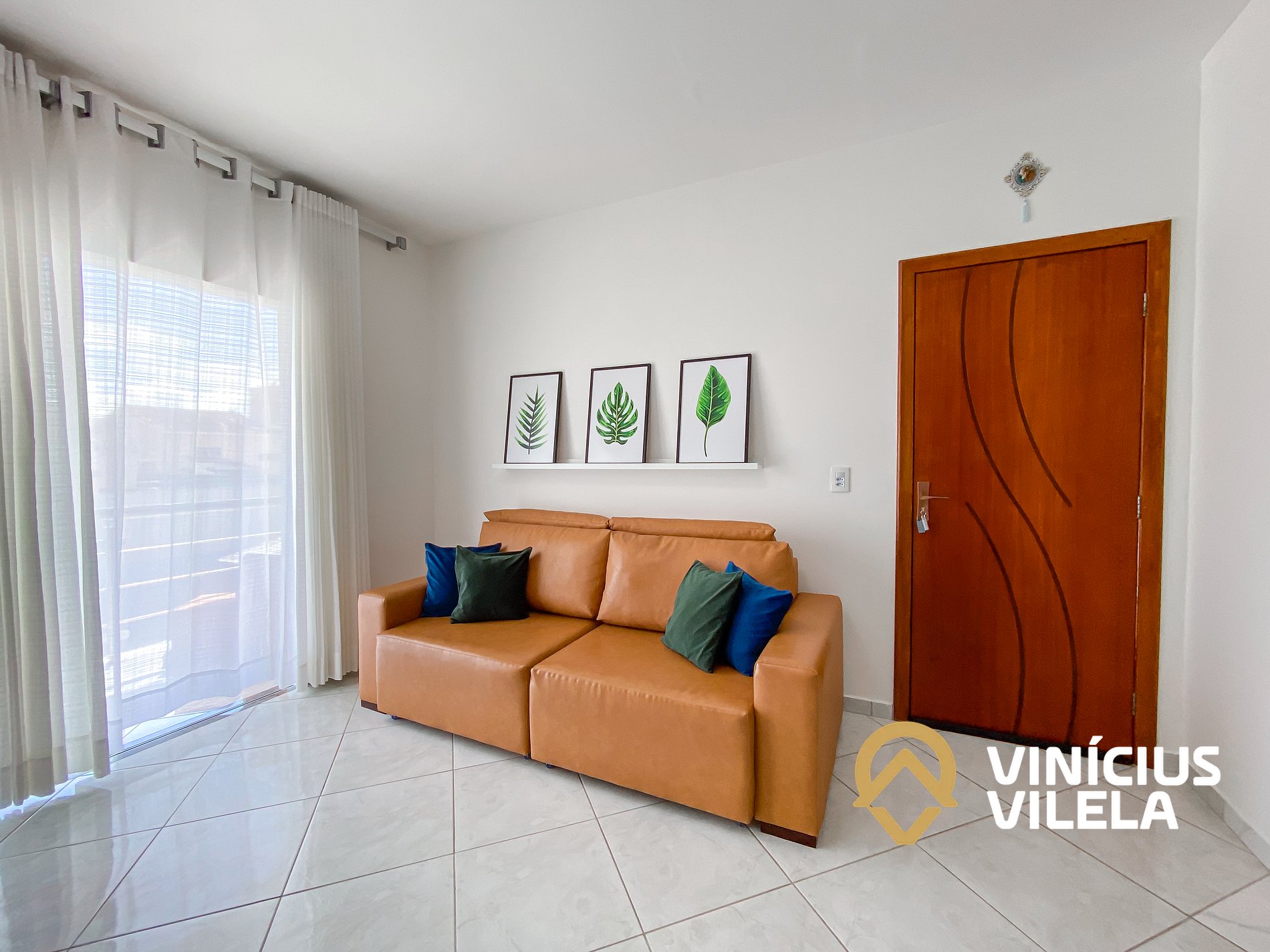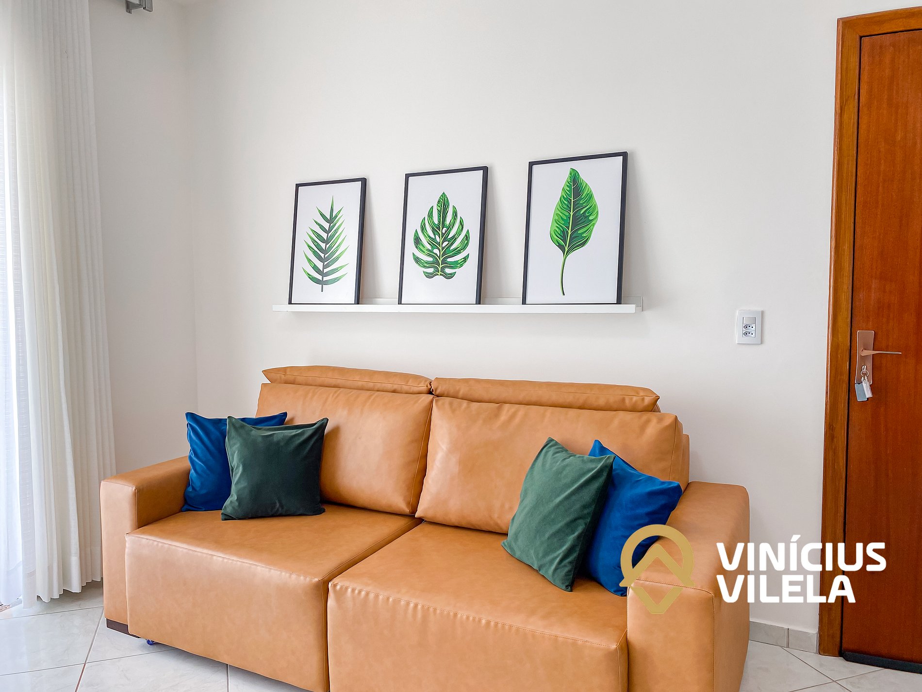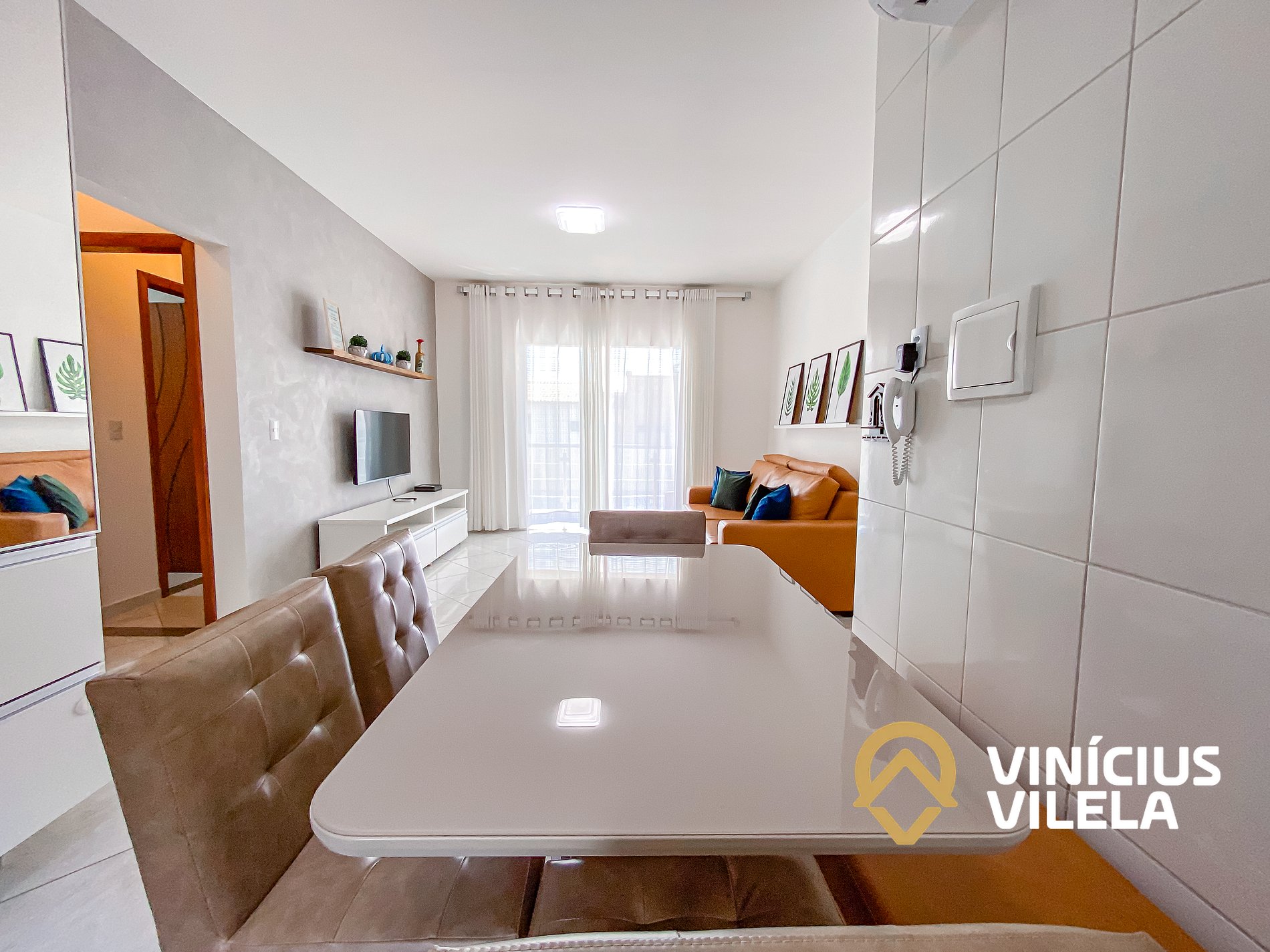 Logo na entrada, o apartamento conta com uma sala integrada à copa, equipada com: