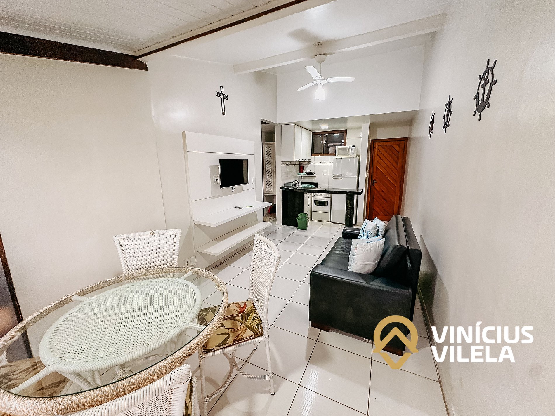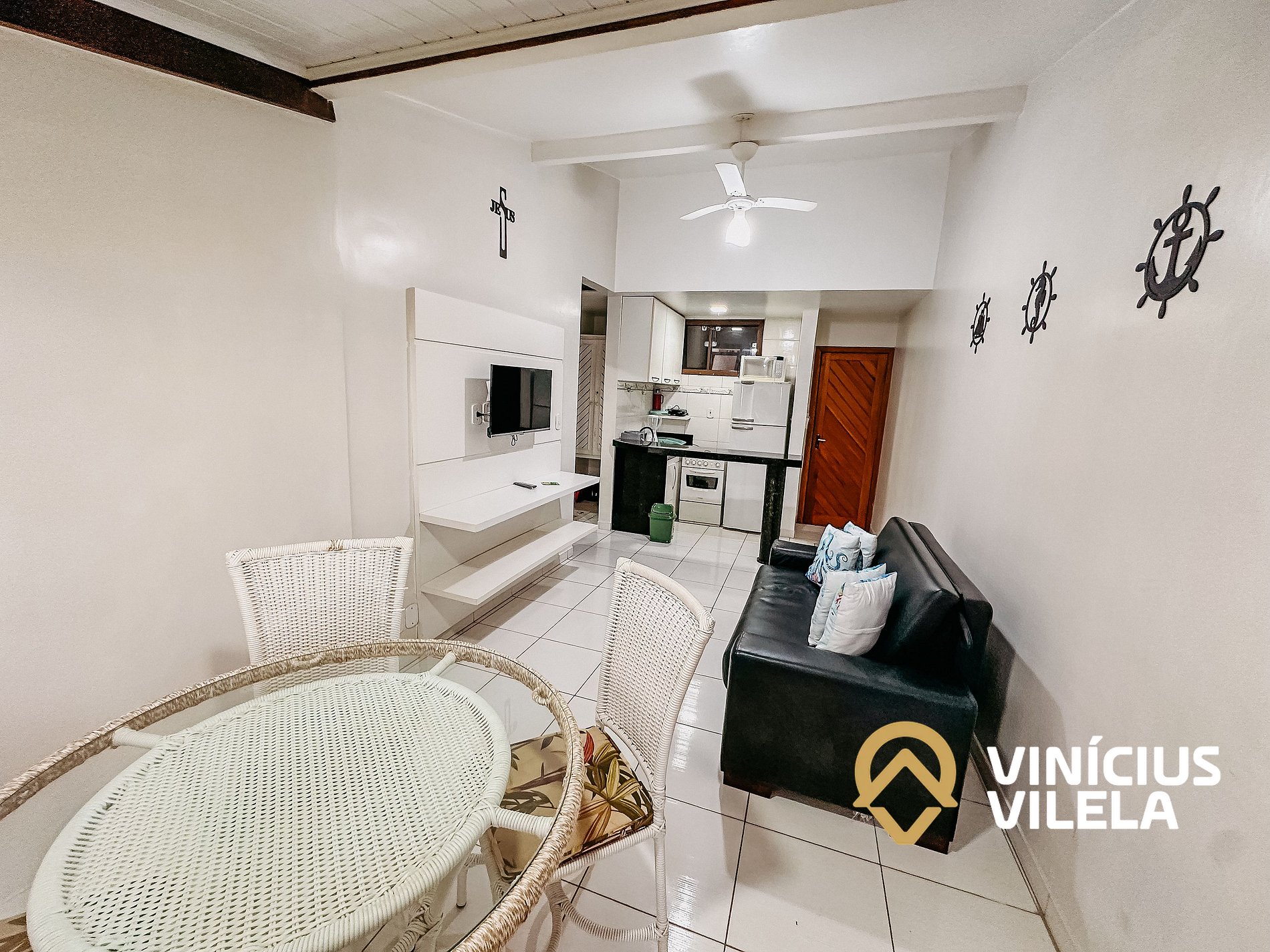 Apartamento no pavimento superior, localizado no Condomínio Portal do Atlântico a poucos metros da barraca do gaúcho. A acomodação possiu um quarto com ar condicionado split, com uma cama de casal e uma de solteiro alem de um roupeiro. Na sala possiu um sofá cama, rack, TV, Ventilador de teto mesa com 4 cadeiras. A cozinha é bem completa com fogão, geladeira, microondas, airfryer, liquidificador, sanduicheira, alem de panelas, pratos e talheres. o flat conta tambem com um banheiro social. O condomínio possiu portaria 24hrs, piscina e uma vaga de garagem, tudo isso rodeado de comercios diversos acessiveis a pé, além de facil acesso a praia.