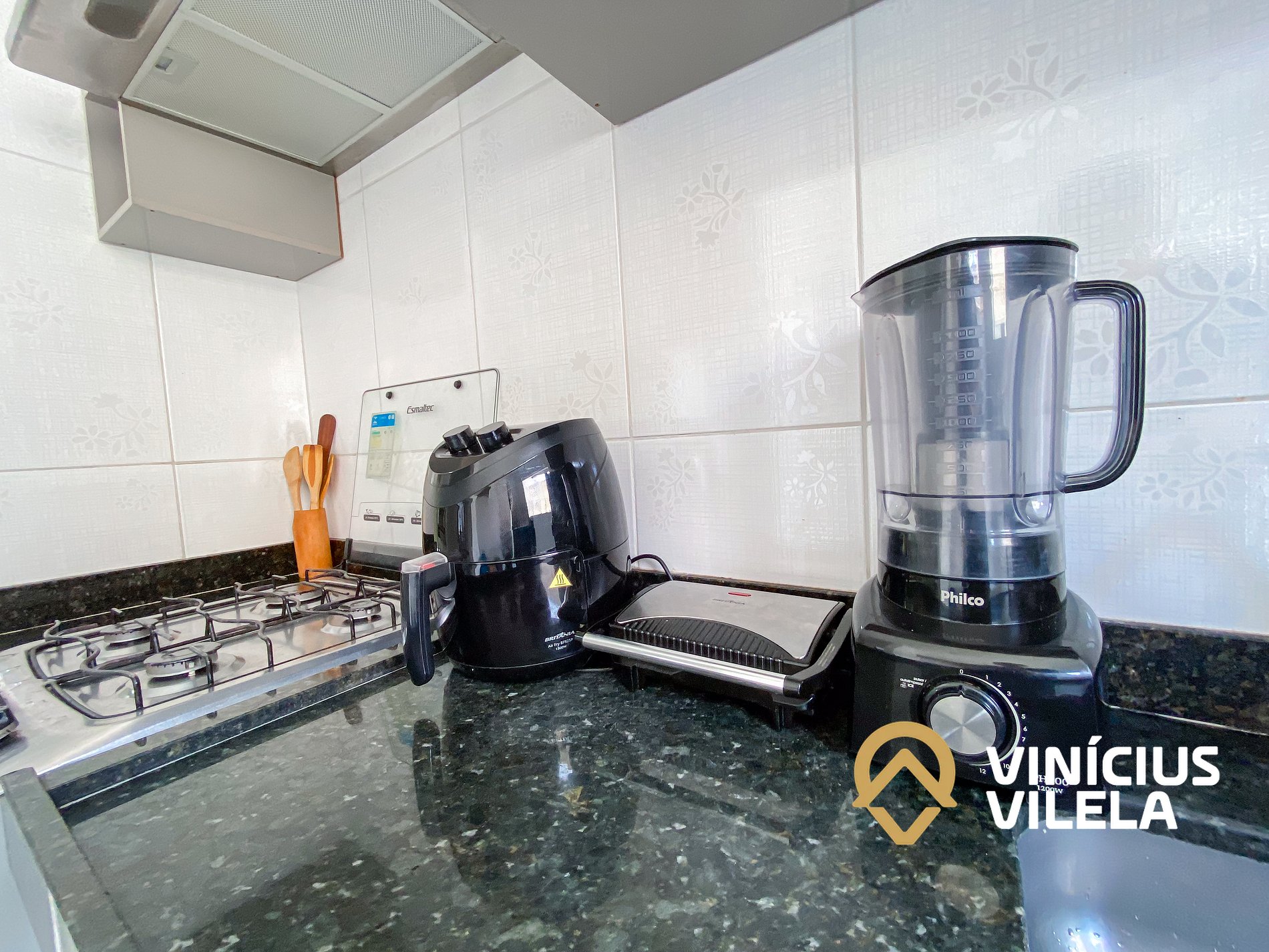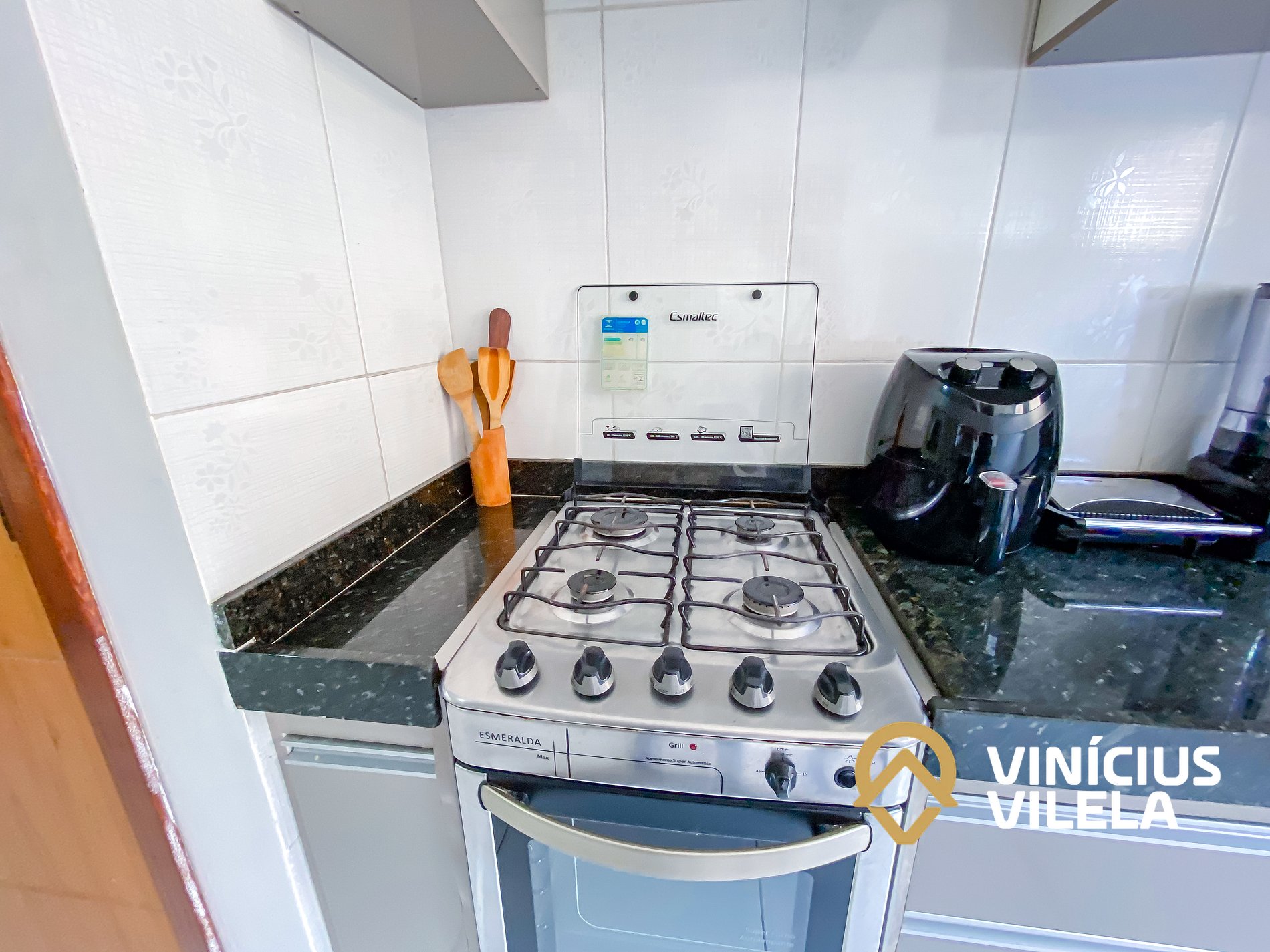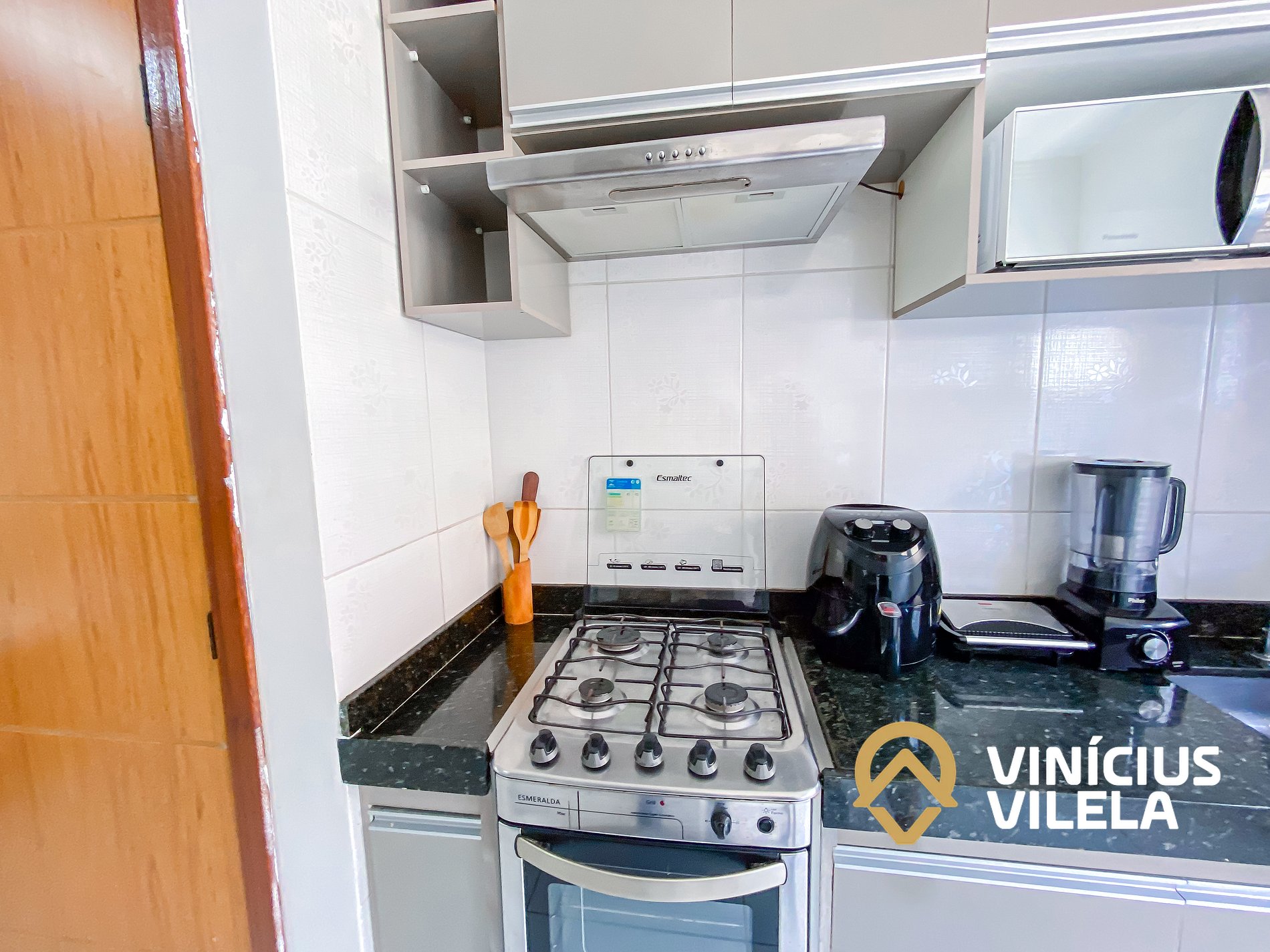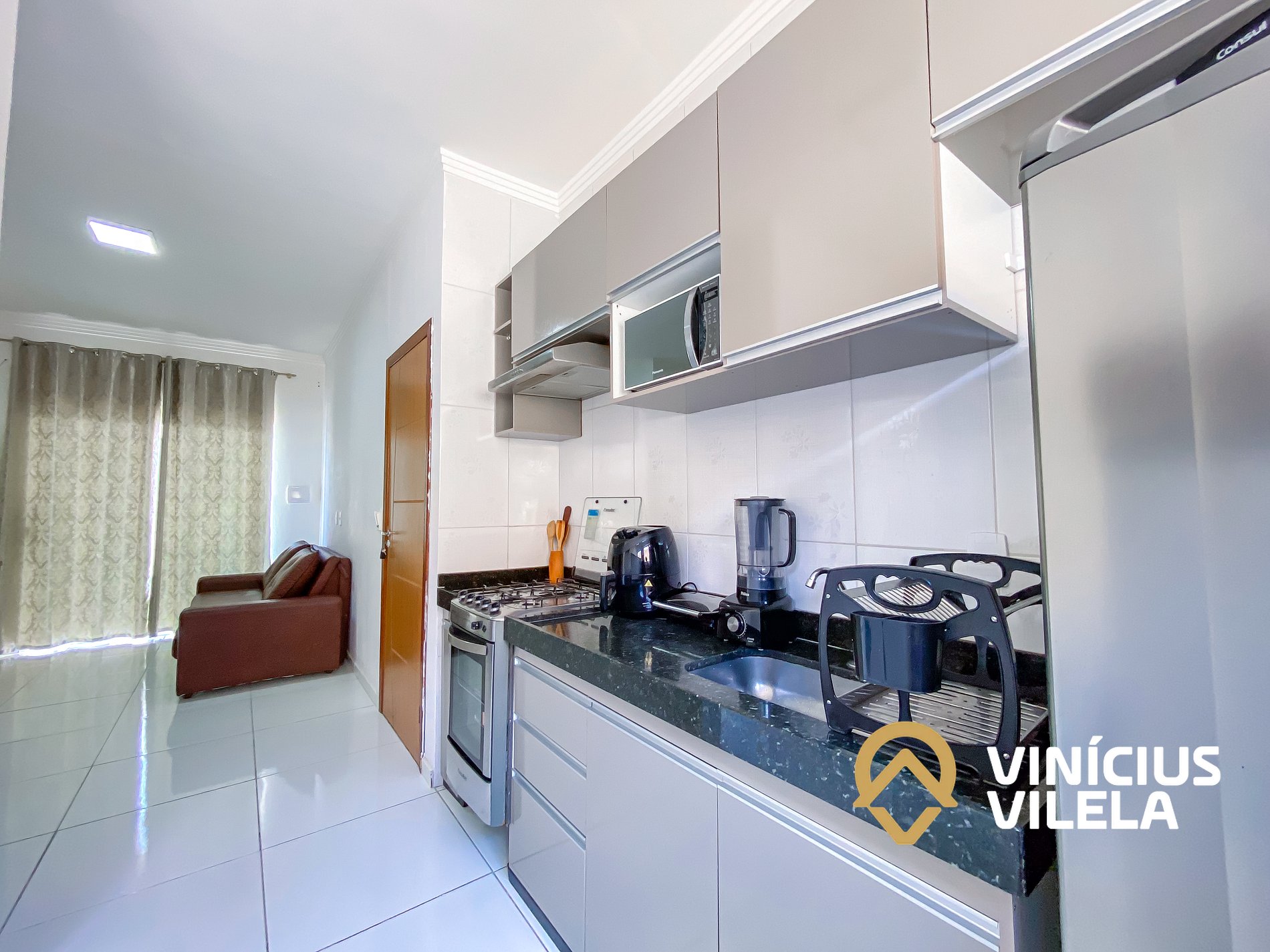 A cozinha é bem completa e oferece eletrodomésticos como liquidificador, micro-ondas, sanduicheira, airfryer, fogão, geladeira, utensílios, panelas, talheres, pratos, xícaras, garrafa térmica de café ,copos de vidro, e nas gavetas sempre você vai encontrar utensílios essenciais em uma cozinha.