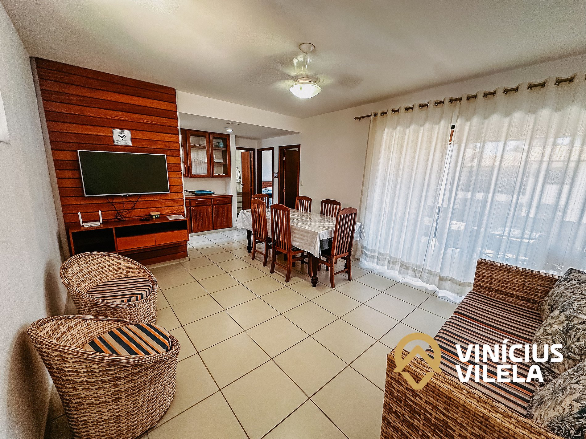 O Apto em condomínio situado a frente a praia de Taperapuã. Possui 1 vaga de estacionamento gratuito (não temos vagas extras), dentro do condomínio.