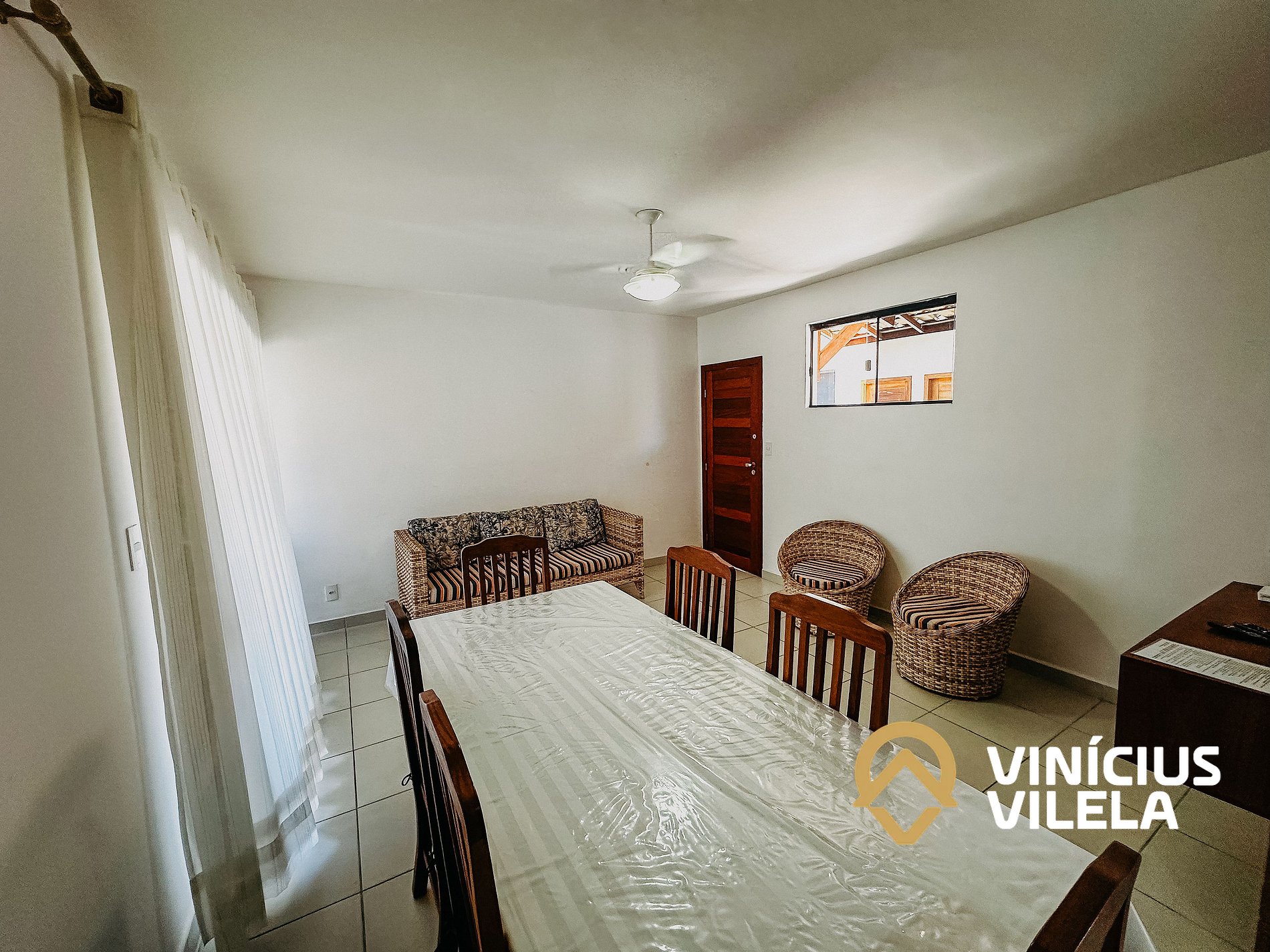 Logo na entrada possui uma sala conjugada com a copa, no qual são compostas com sofá, rack e TV tela plana. Mesa com 6 cadeiras, varanda com mesa redonda com 4 cadeiras.
