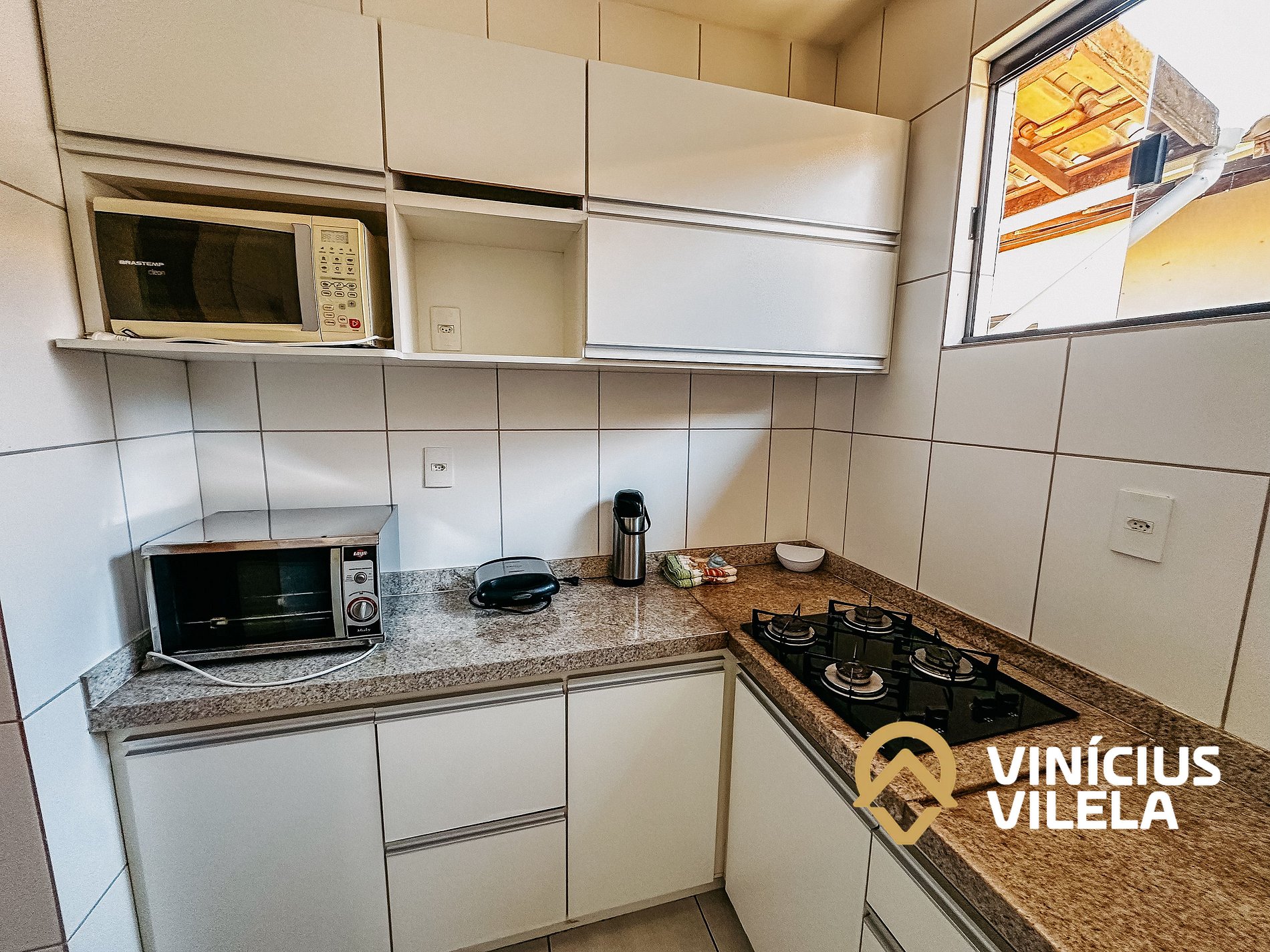 A cozinha é bem completa e oferece eletrodomésticos como liquidificador, micro-ondas,