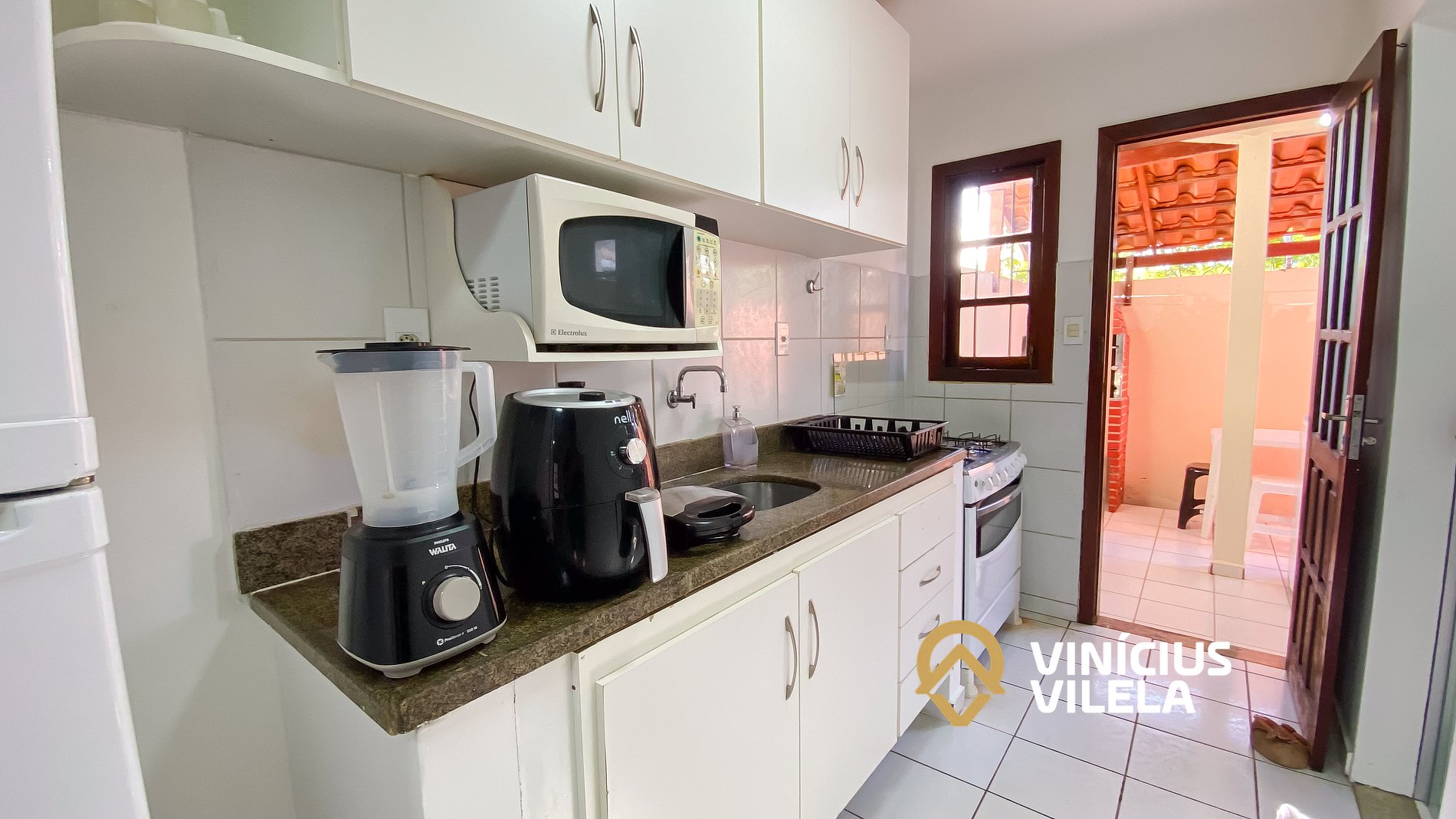 A cozinha é bem completa e oferece eletrodomésticos como liquidificador, micro-ondas, freezer, airfryer, sanduicheira fogão, geladeira duplex, utensílios, panelas, talheres, pratos, xícaras, garrafa térmica de café ,copos de vidro, e nas gavetas sempre você vai encontrar pano de prato e outros utensílios essenciais em uma cozinha.
