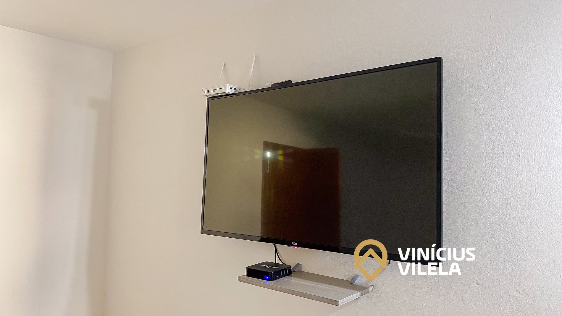 - Sala com sofá Cama, rack , TV e mesa com 6 cadeiras