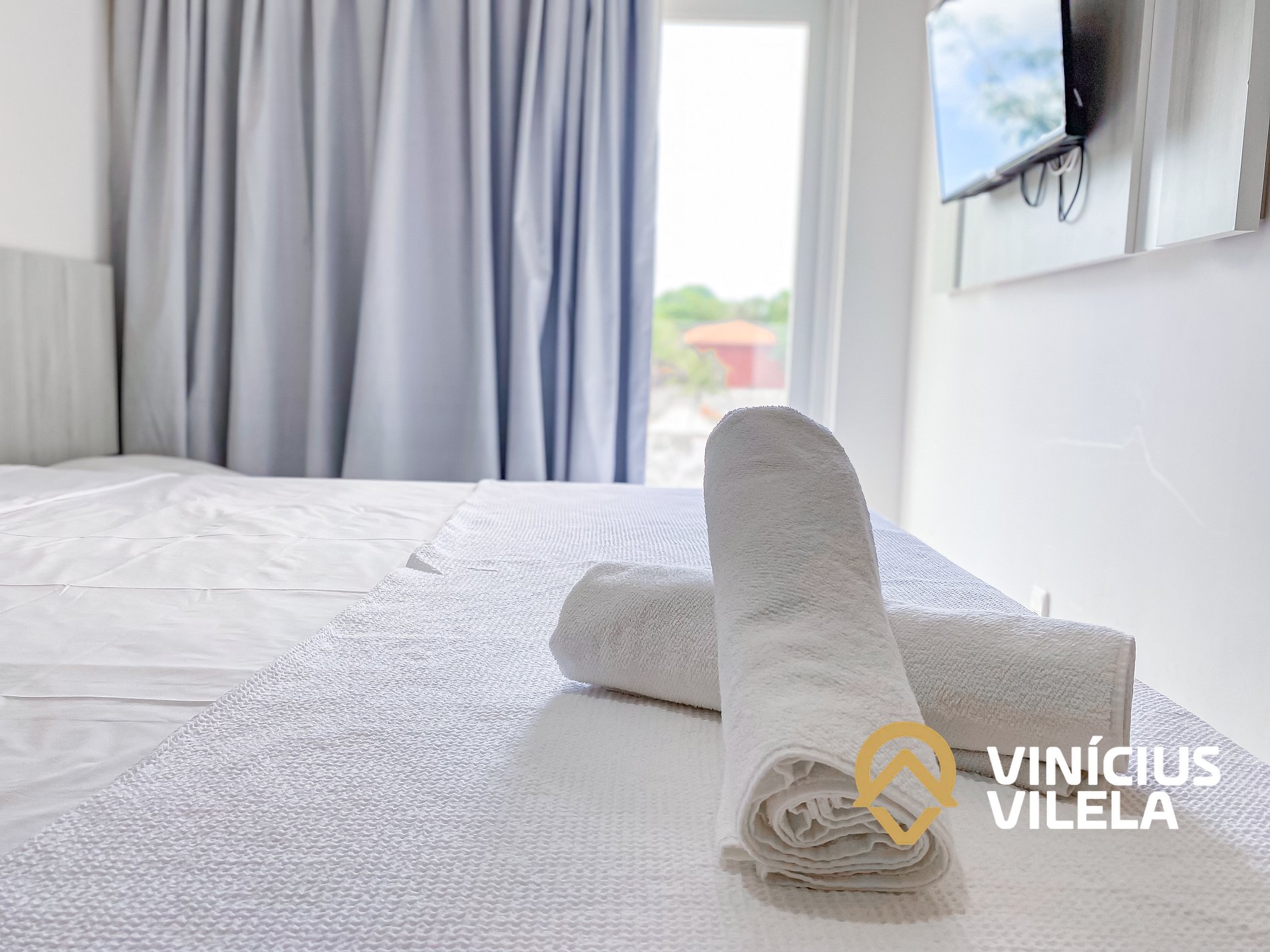 Belo residencial localizado no alto dos Corais em Arraial D'Ajuda - BA, rodeado de muito luxo e área verde o condomínio conta com uma piscina extensa, cujo todas as unidades tem sacada com vista para a mesma. oferecemos também sauna, portaria 24hrs
