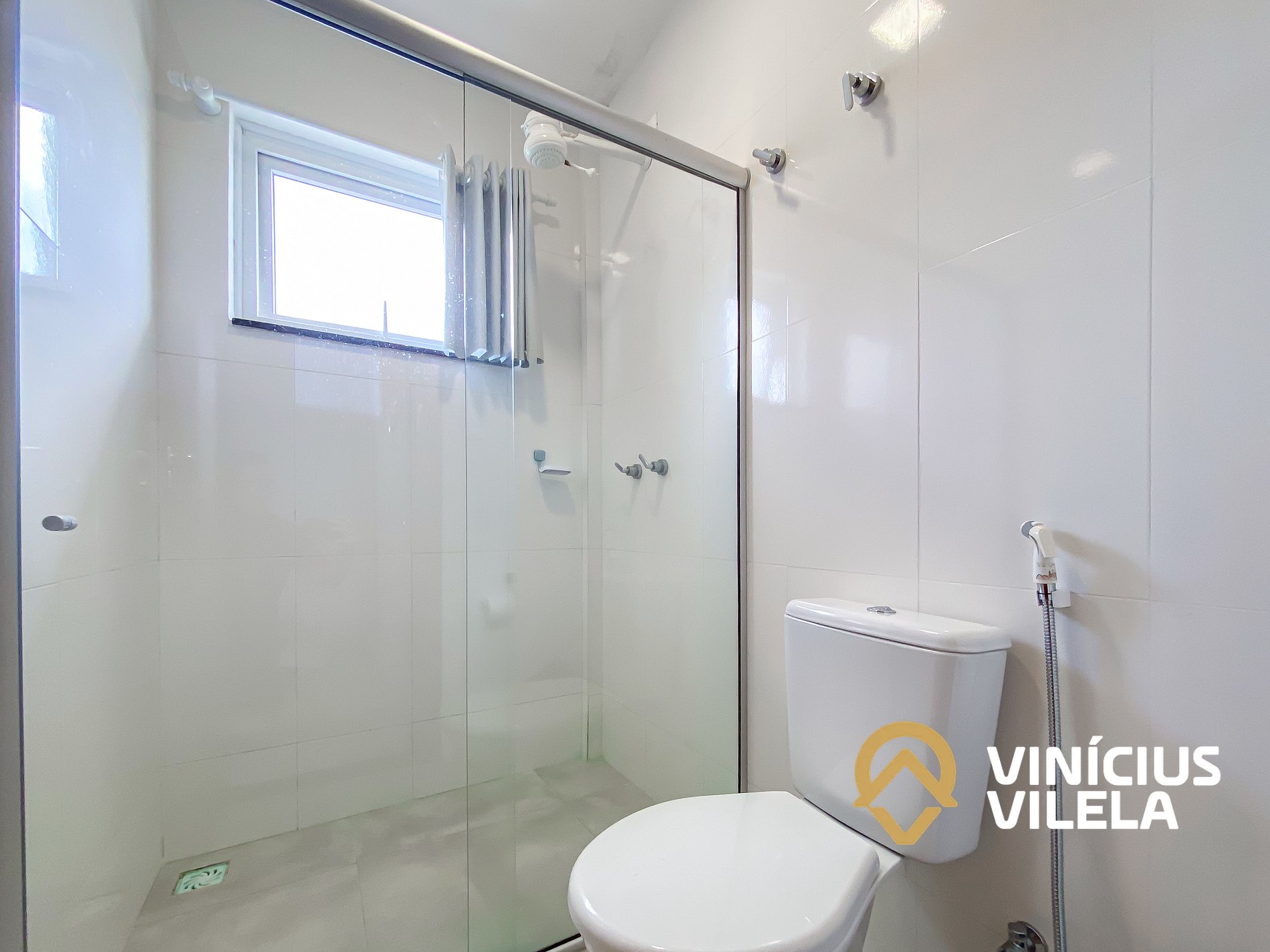 A casa dispõe de 3 banheiros, sendo 1 em cada suítes com chuveiros de aquecimento solar, e 1 banheiro social com chuveiro elétrico.