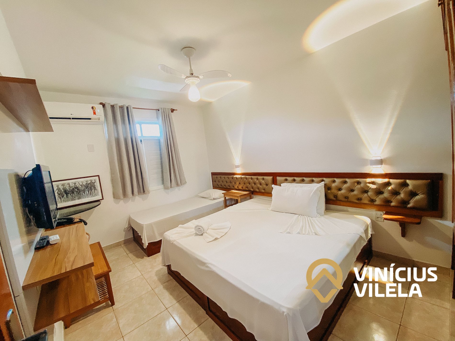 - 01 quarto com ar condicionado, 01 cama de casal e 01 de solteiro .