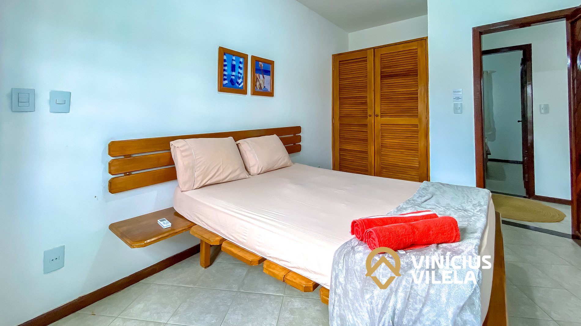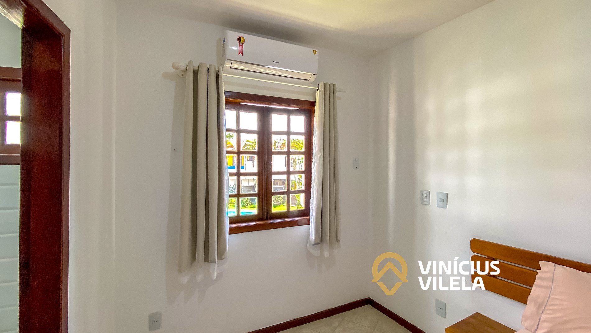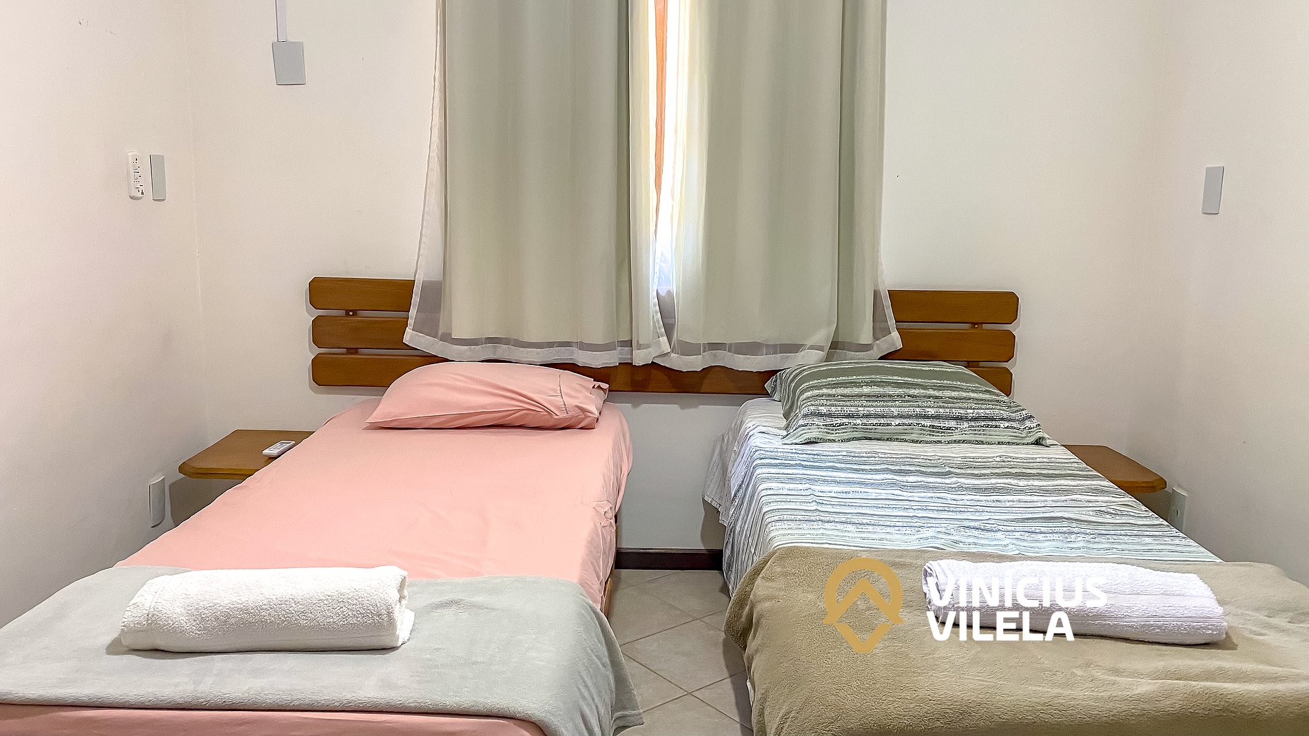 - 3 quartos sendo 1 suíte, 2 com uma cama de casal e um com 2 camas de solteiro ambas com ar condicionado