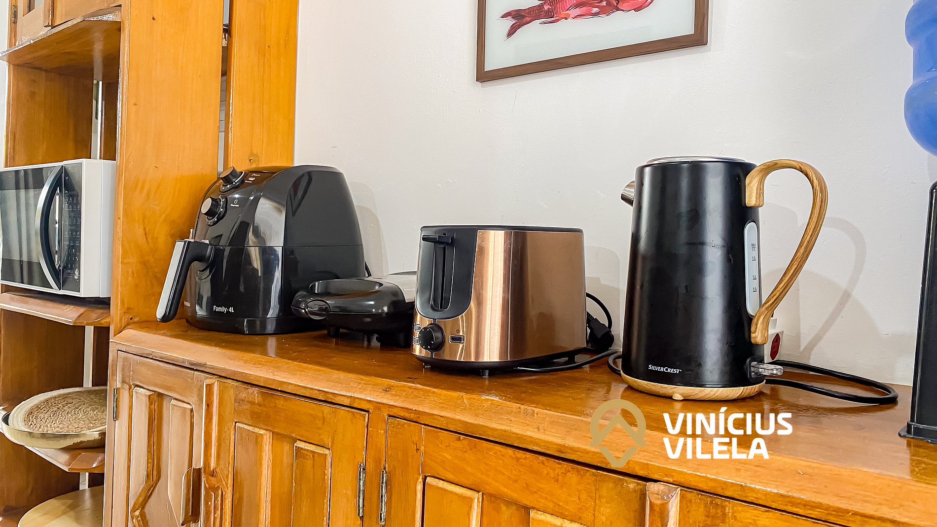 O apartamento conta com 3 quartos, sendo 1 suíte todos com ar condicionado Split, roupas de cama e banho, na sala temos sofá e TV , internet Wi-fi 300MBPS exclusiva do apartamento, Sala de jantar com mesa 6 cadeiras, cozinha completa com armários , fogão, airfryer e utensílios.