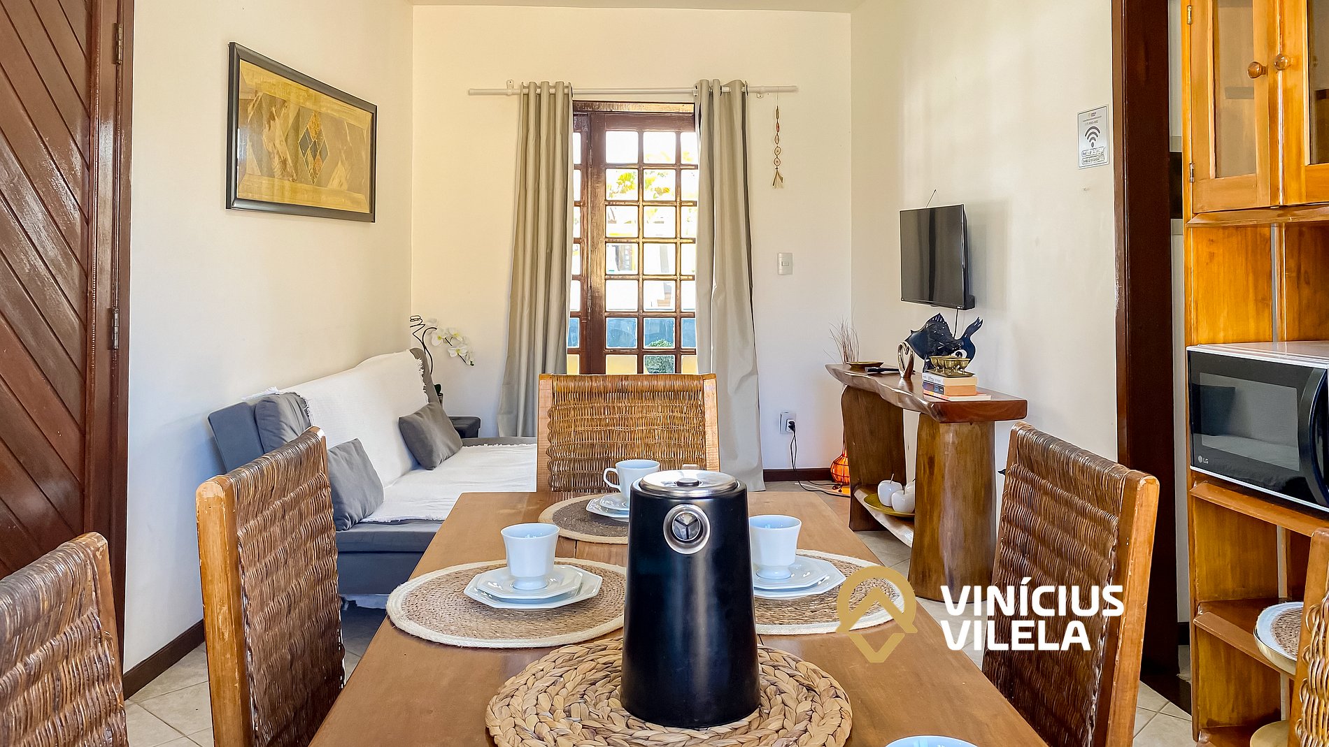 Apartamento localizado no pavimento superior, próximo a praia de Taperapuã próximo a arena Axé Mói. Localizado no Residencial Lacorte um pequeno condomínio com piscina, área de churrasco, academia lavanderia comunitária (paga a parte a utilização), academina e banheiro além de 1 vaga de garagem.