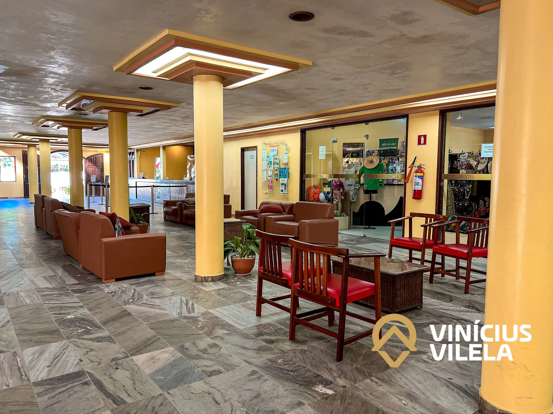 O hotel possiu restaurante que serve diariamente café da manhã (que pode ser contratado a parte diretamente no hotel), lojas, parque aquatico (gratuito), espaço kids (gratiuto), academia, quadras e uma ampla estrutura de lazer.