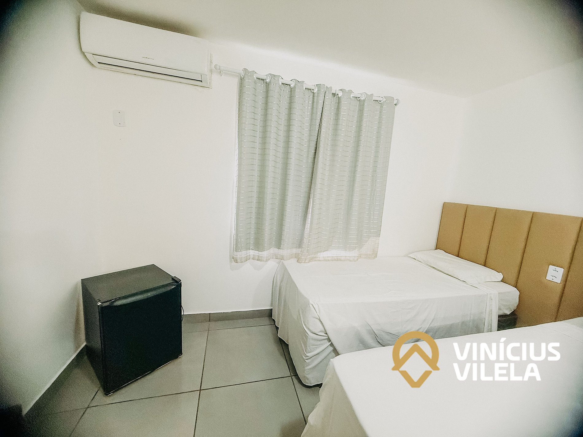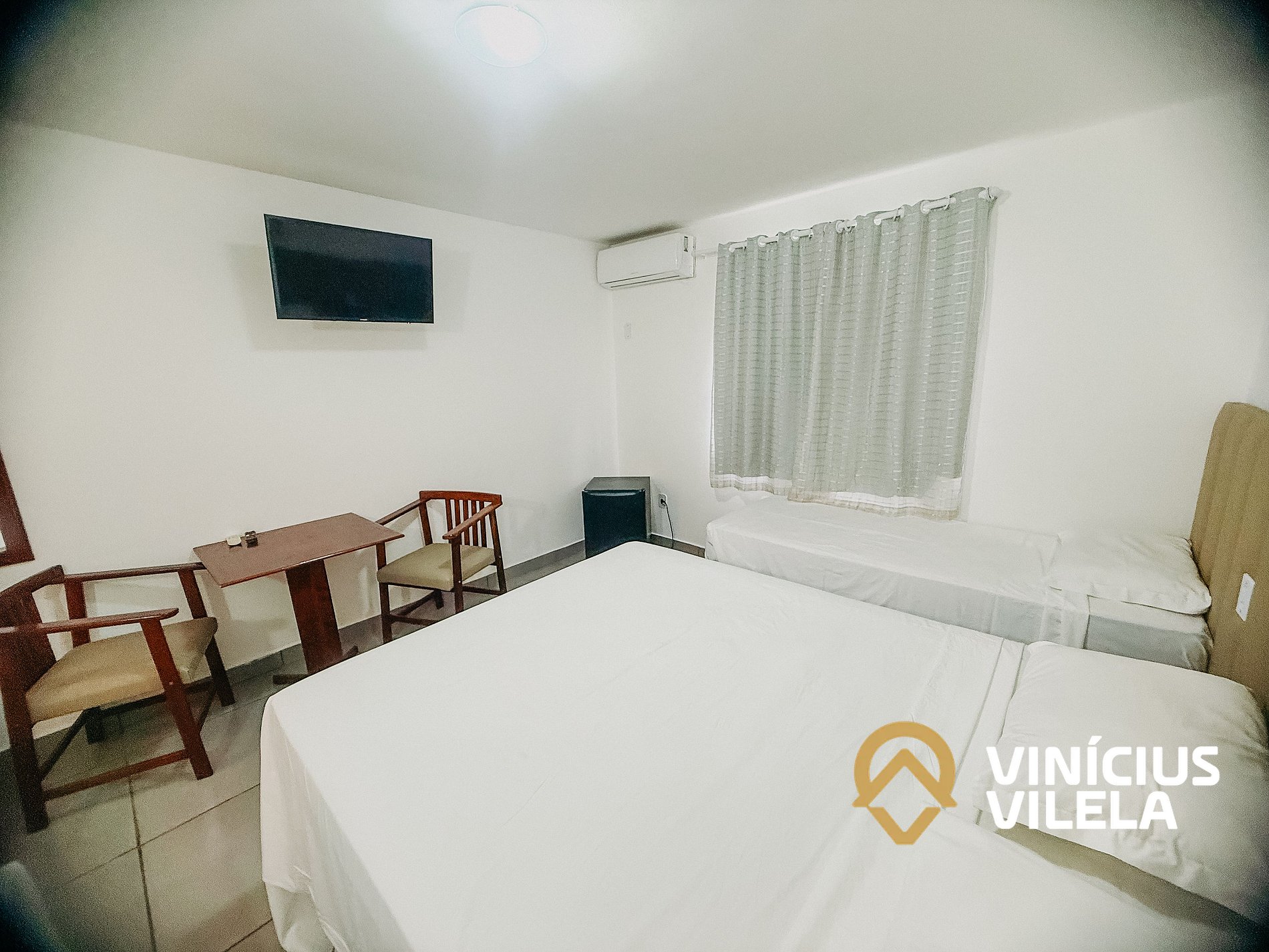 - SUÍTE com AR CONDICIONADO, TV, FRIGOBAR E MESA DE TRABALHO; E COFRE.