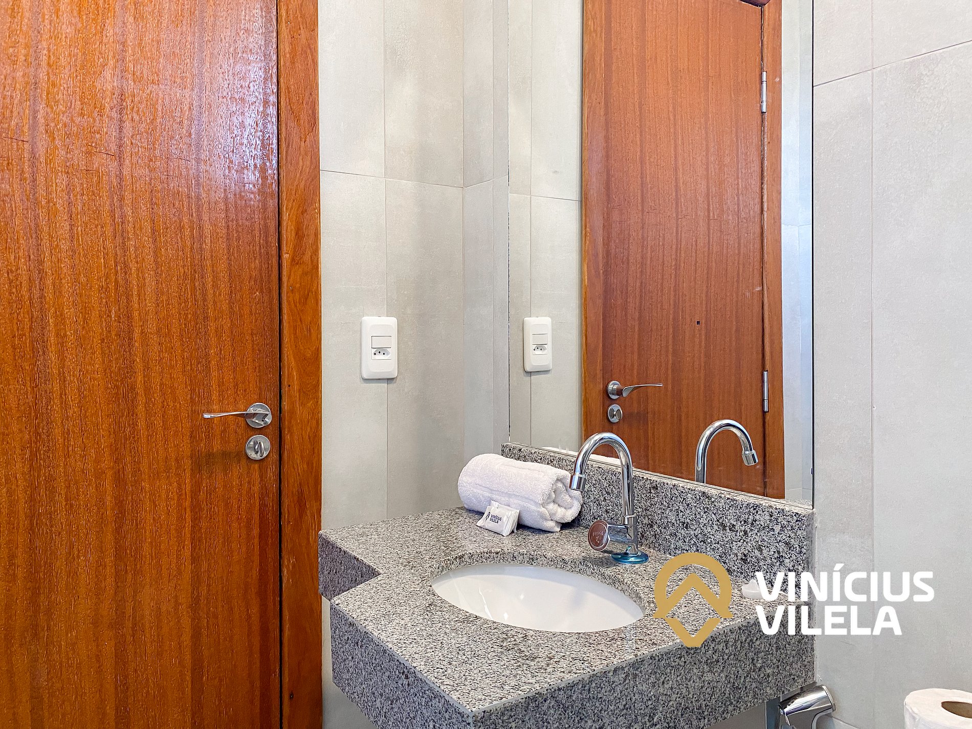 O apto dispõe de 2 banheiros com chuveiro elétrico.