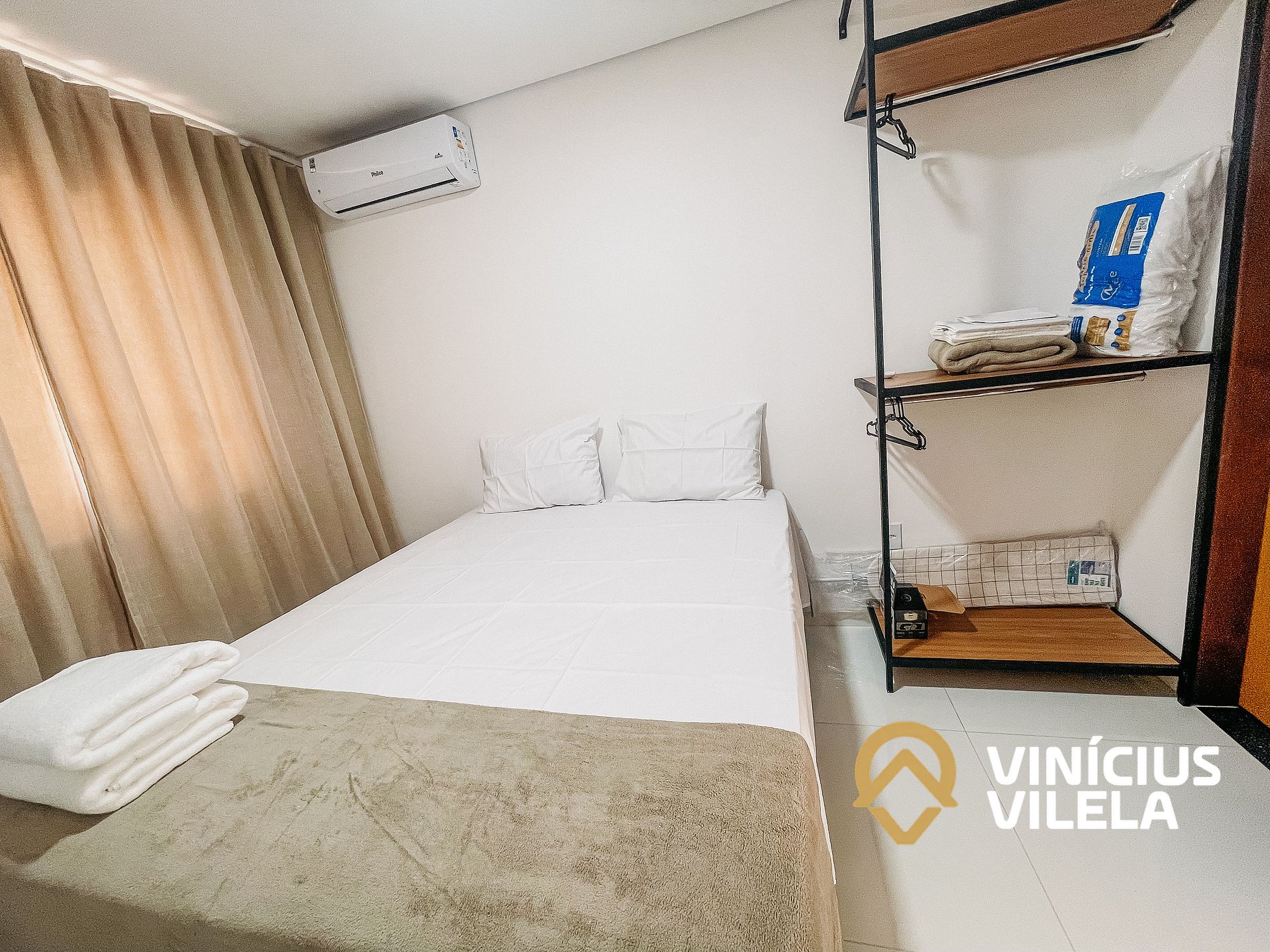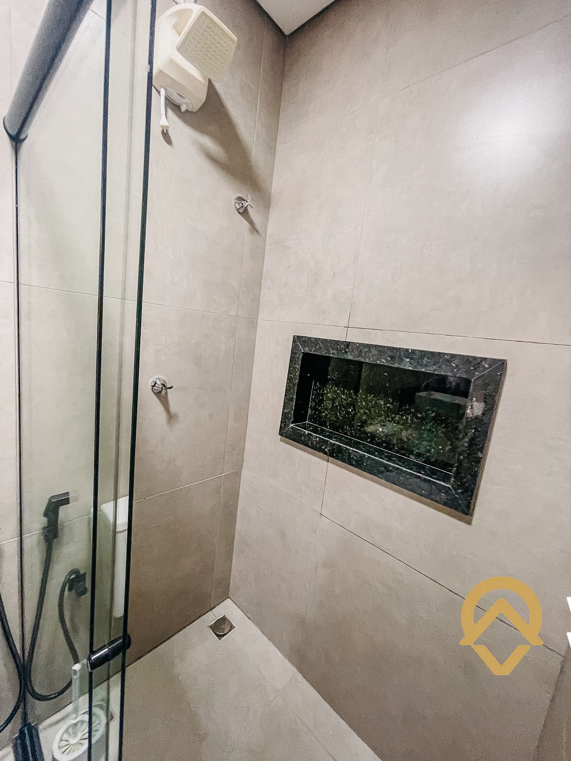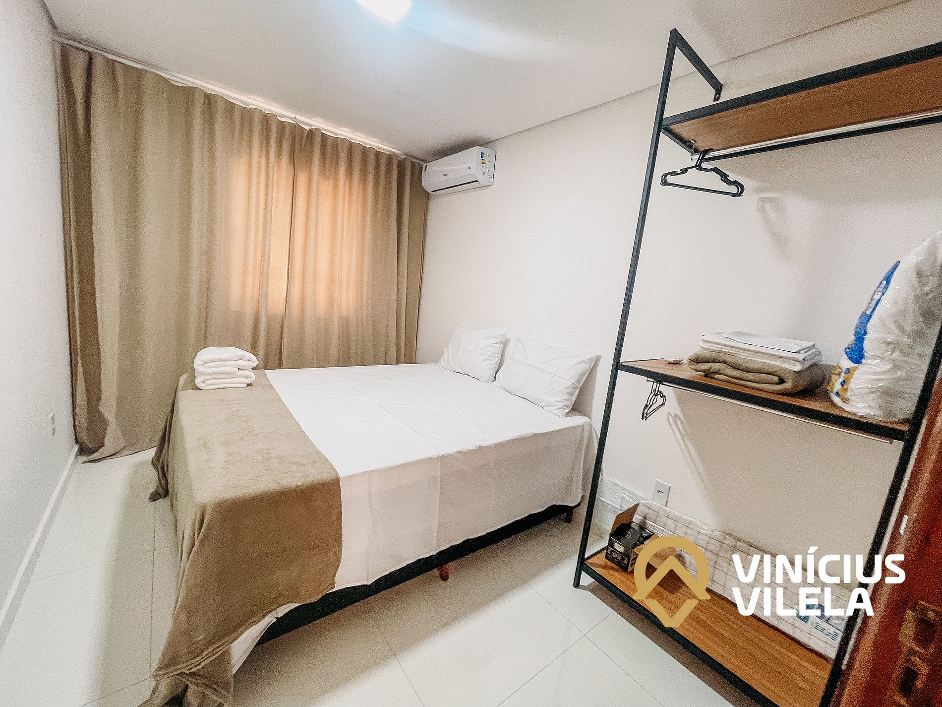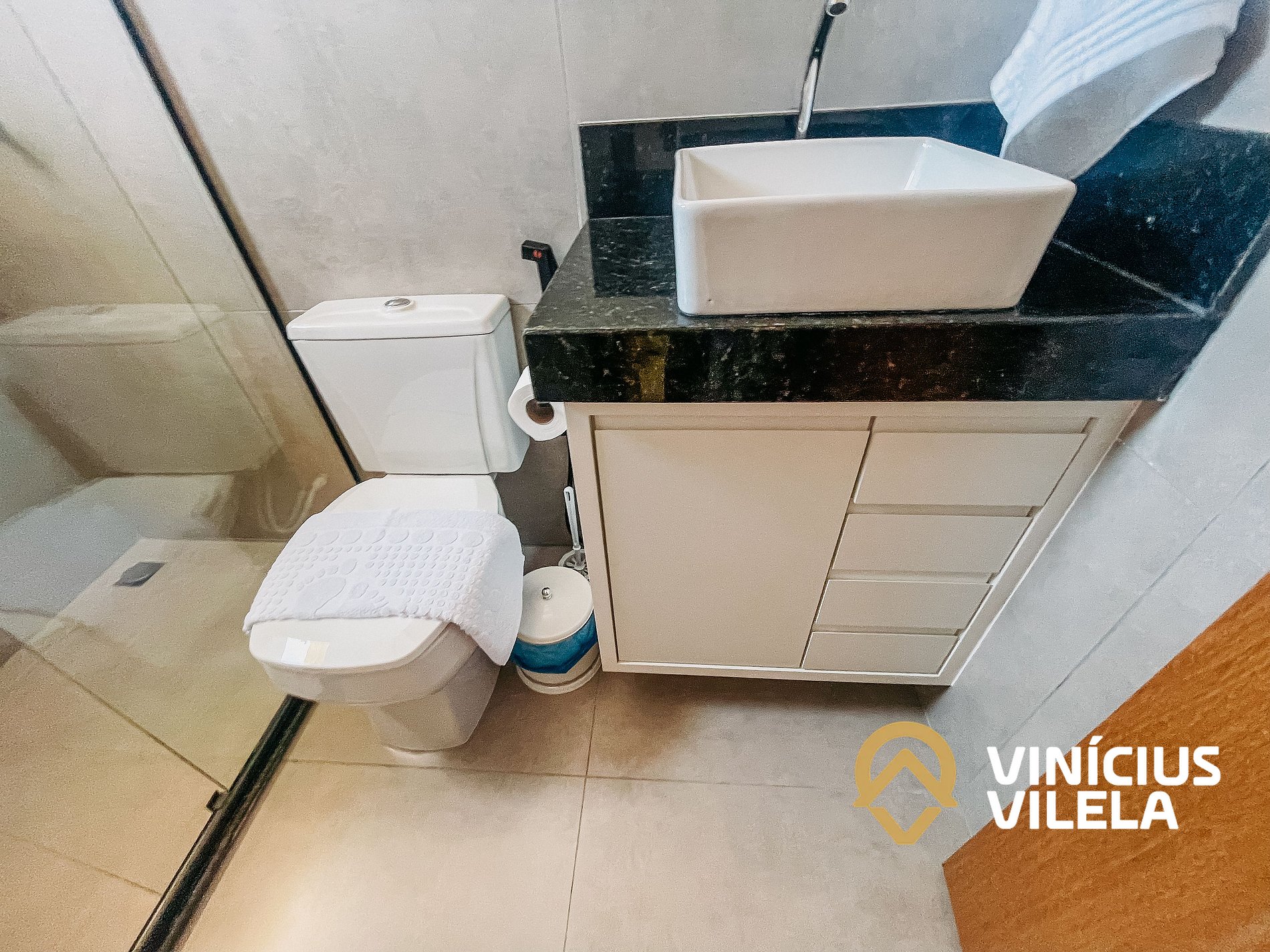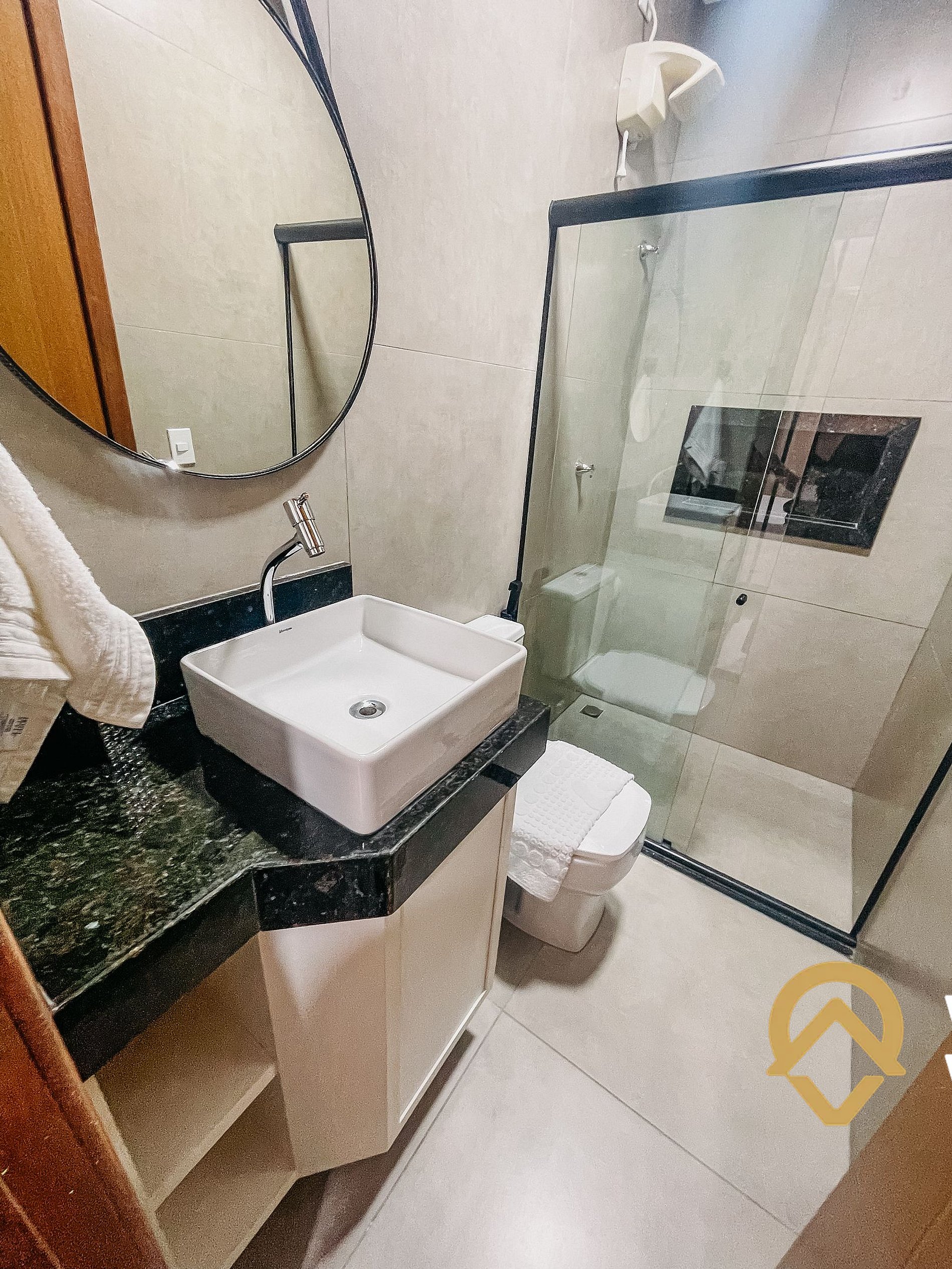 - 3 quartos sendo 2 suítes e 1 demi-suíte, ambos com ar condicionado