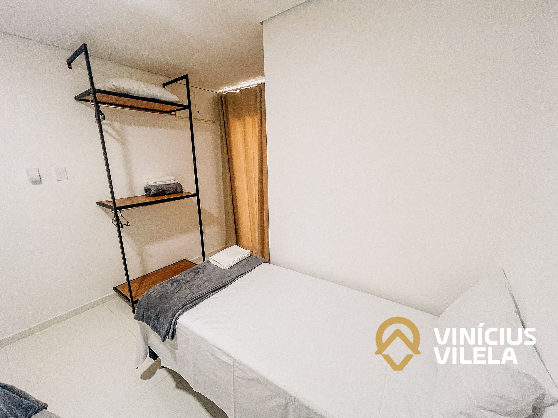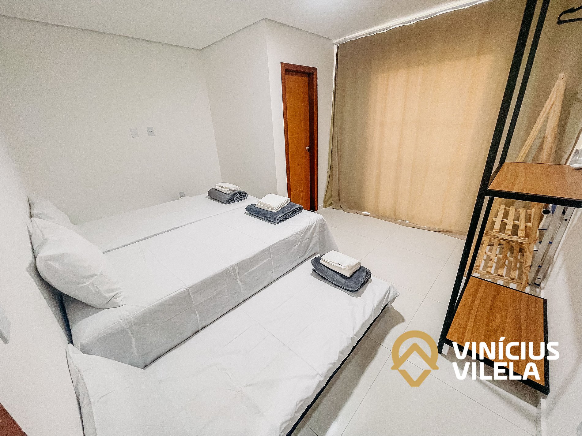 O apartamento conta com 3 suítes, sendo 2 suítes no pavimento superior (com uma cama de casal e 2 de solteiro cada) e uma demi-suite no térreo (com 1 cama de casal e 1 de solteiro), todos com ar condicionado Split, fornecemos roupas de cama e banho (disponibilizado de acordo com a quantidade de hóespedes contratada), na sala com rack, sofá-cama e TV , internet Wi-fi 300MBPS exclusiva do apartamento, varanda com uma mesa e cadeiras. Sala de jantar com mesa e 6 cadeiras, cozinha completa com armários , fogão, micro ondas, airfryer e utensílios, além de área de serviço com maquina de lavar, ducha e churrasqueira privativa.