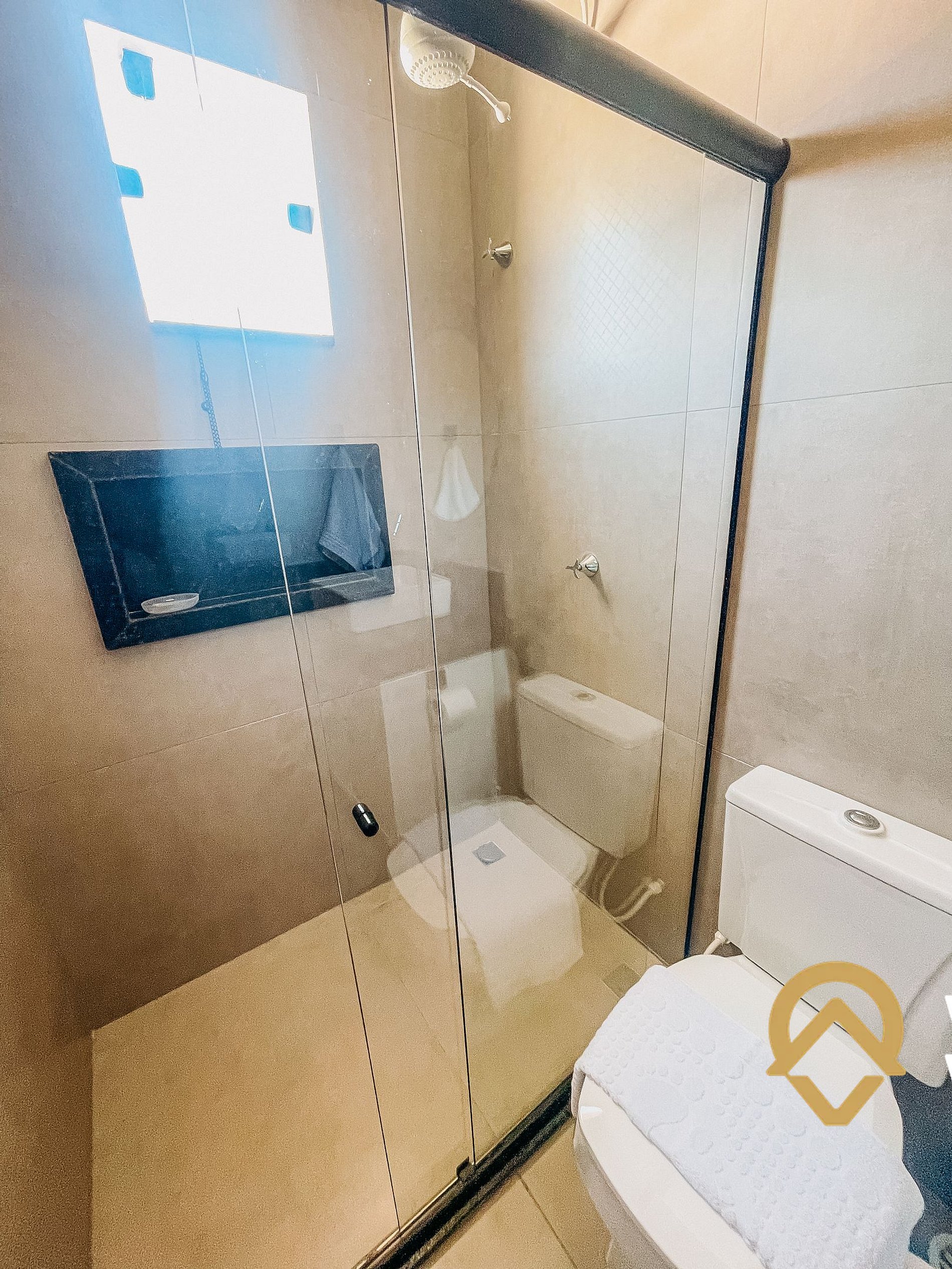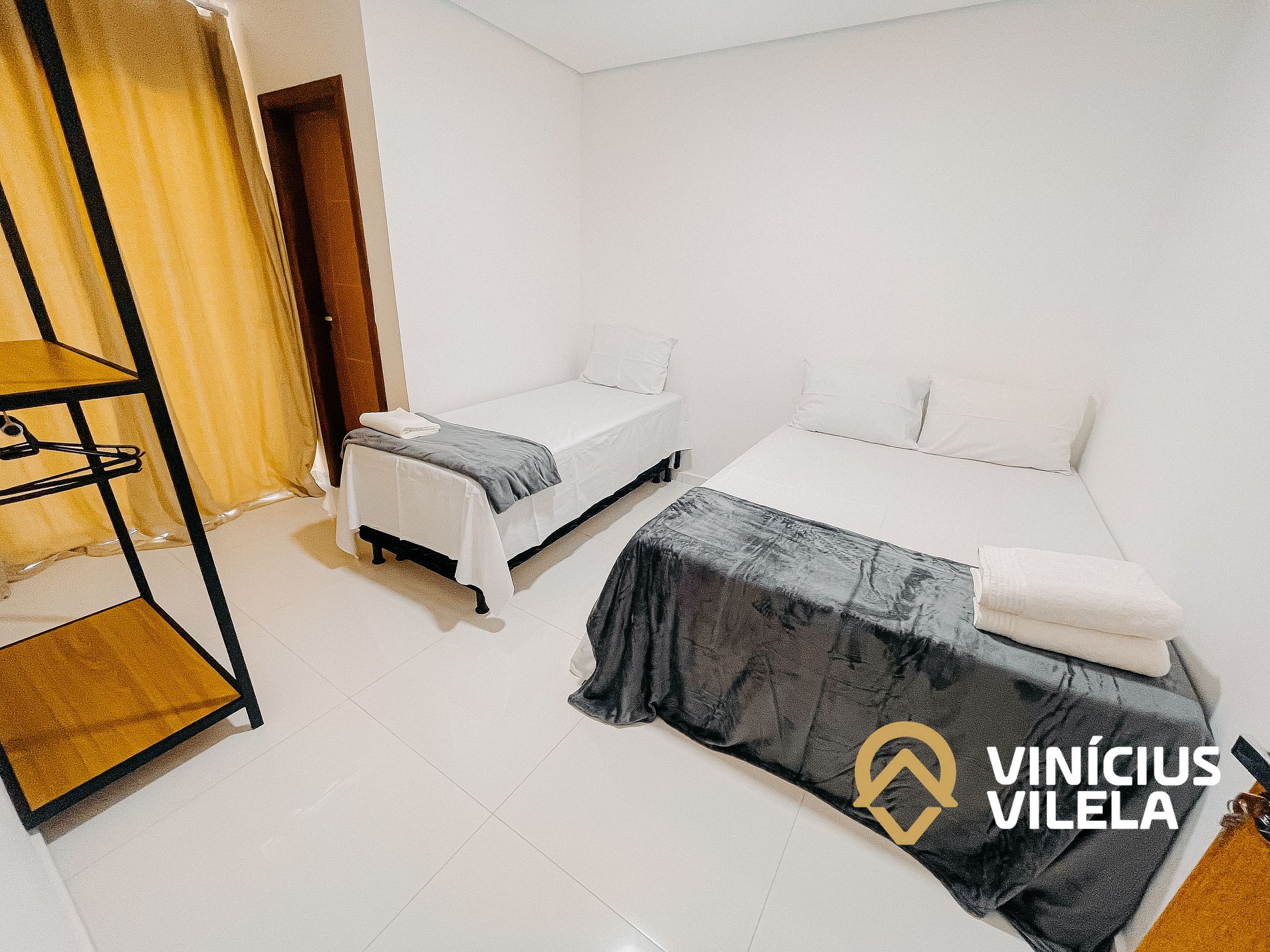 - 3 quartos sendo 2 suítes e 1 demi-suíte, ambos com ar condicionado (casas com acomodações para de 08 a 12 hóspedes)