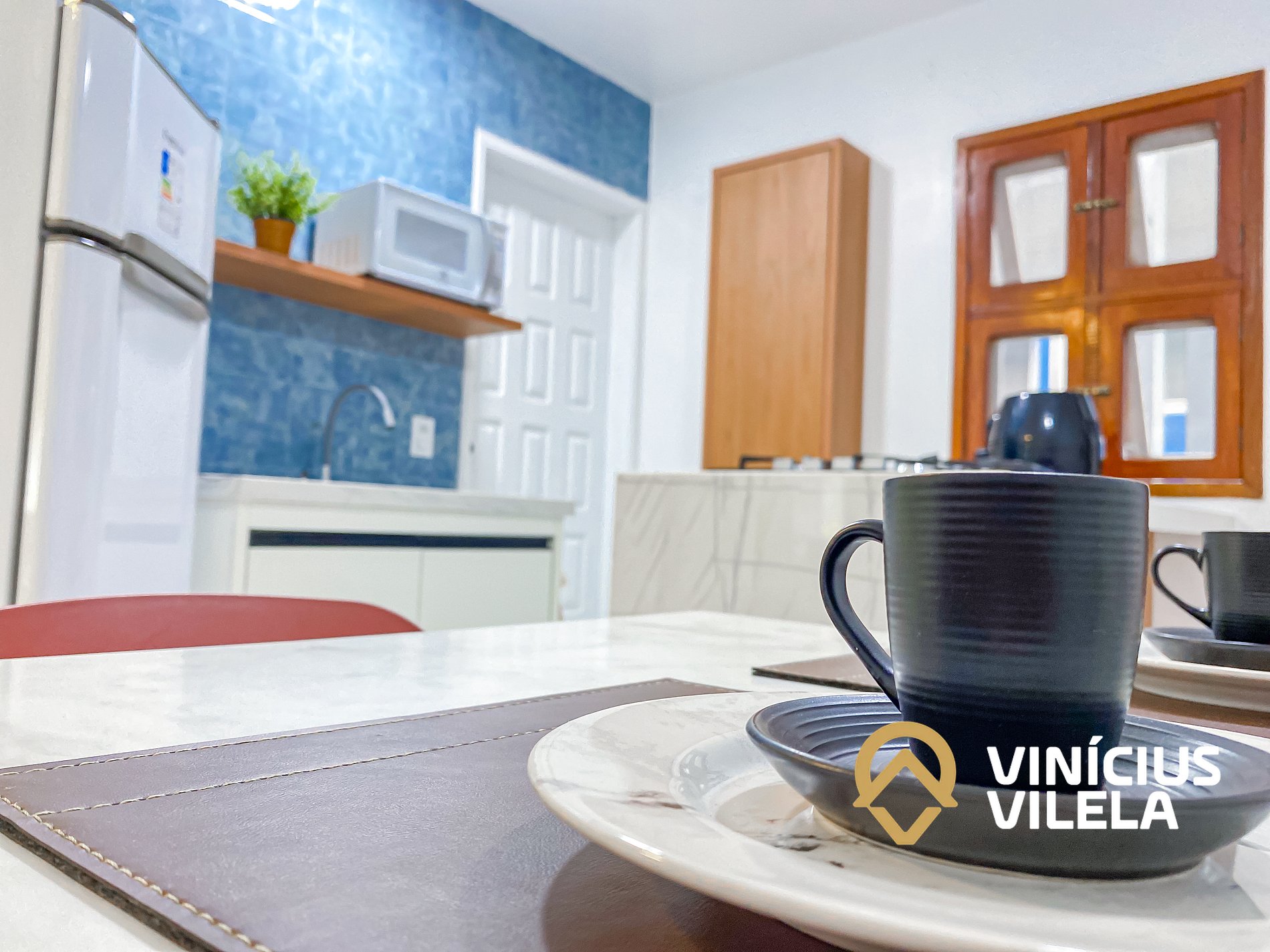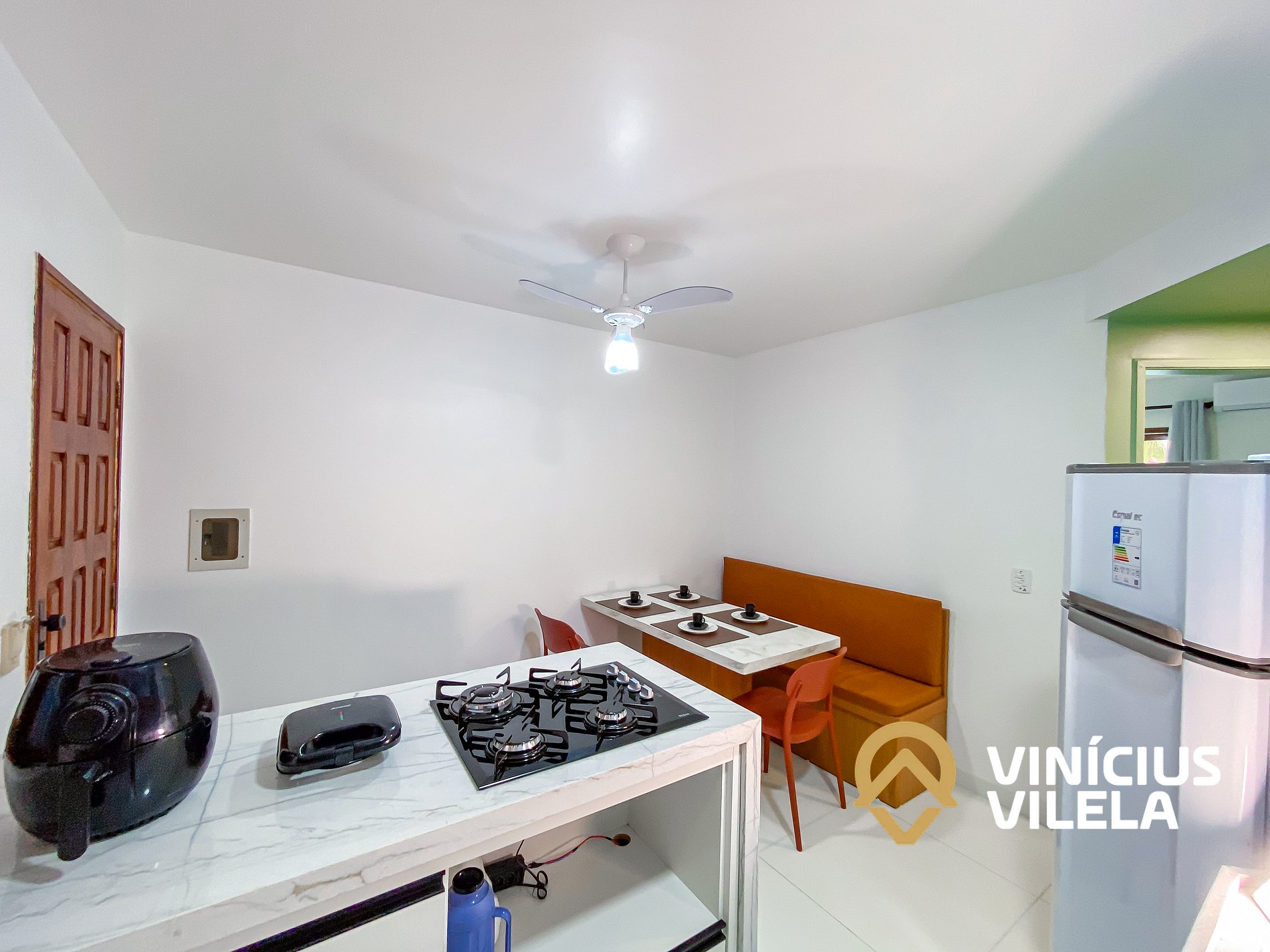 - Sala climatizada conjugada com cozinha completa.