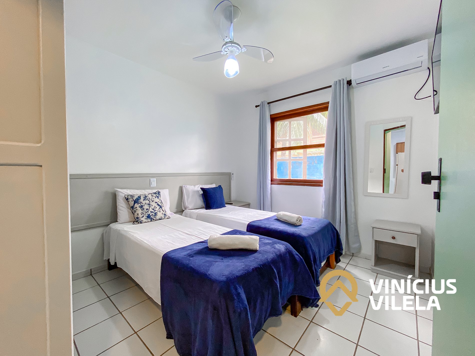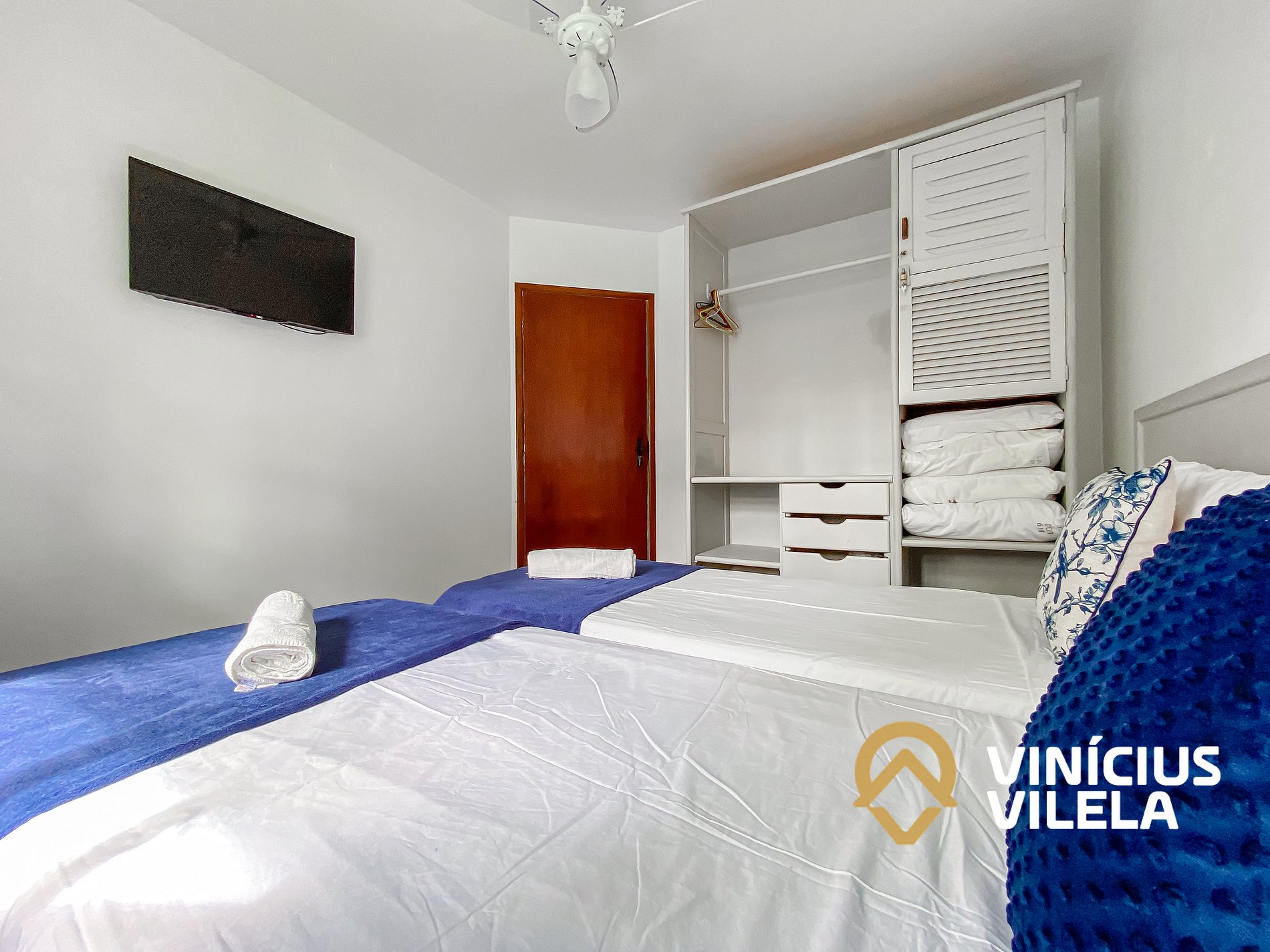 - Apto com 2 quartos sendo 1 suíte ambas com ar condicionado e TV