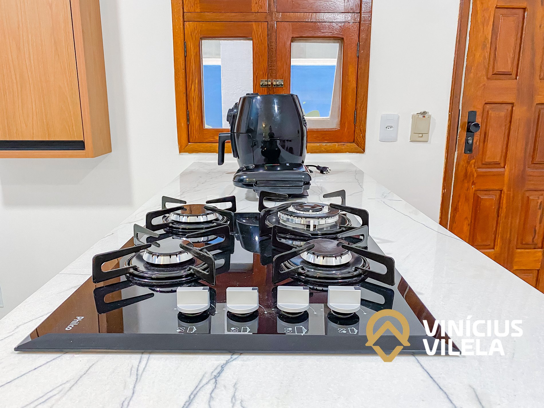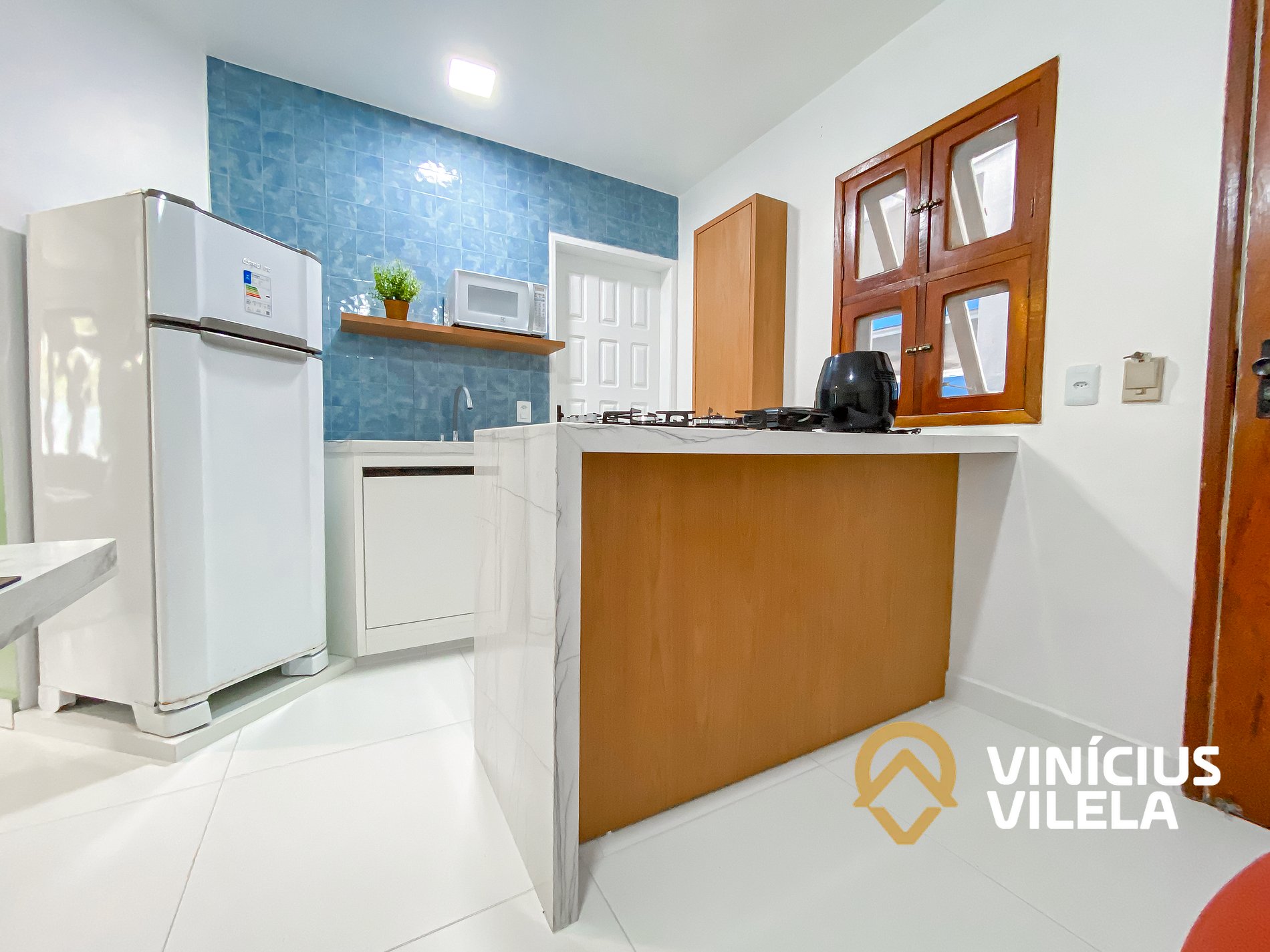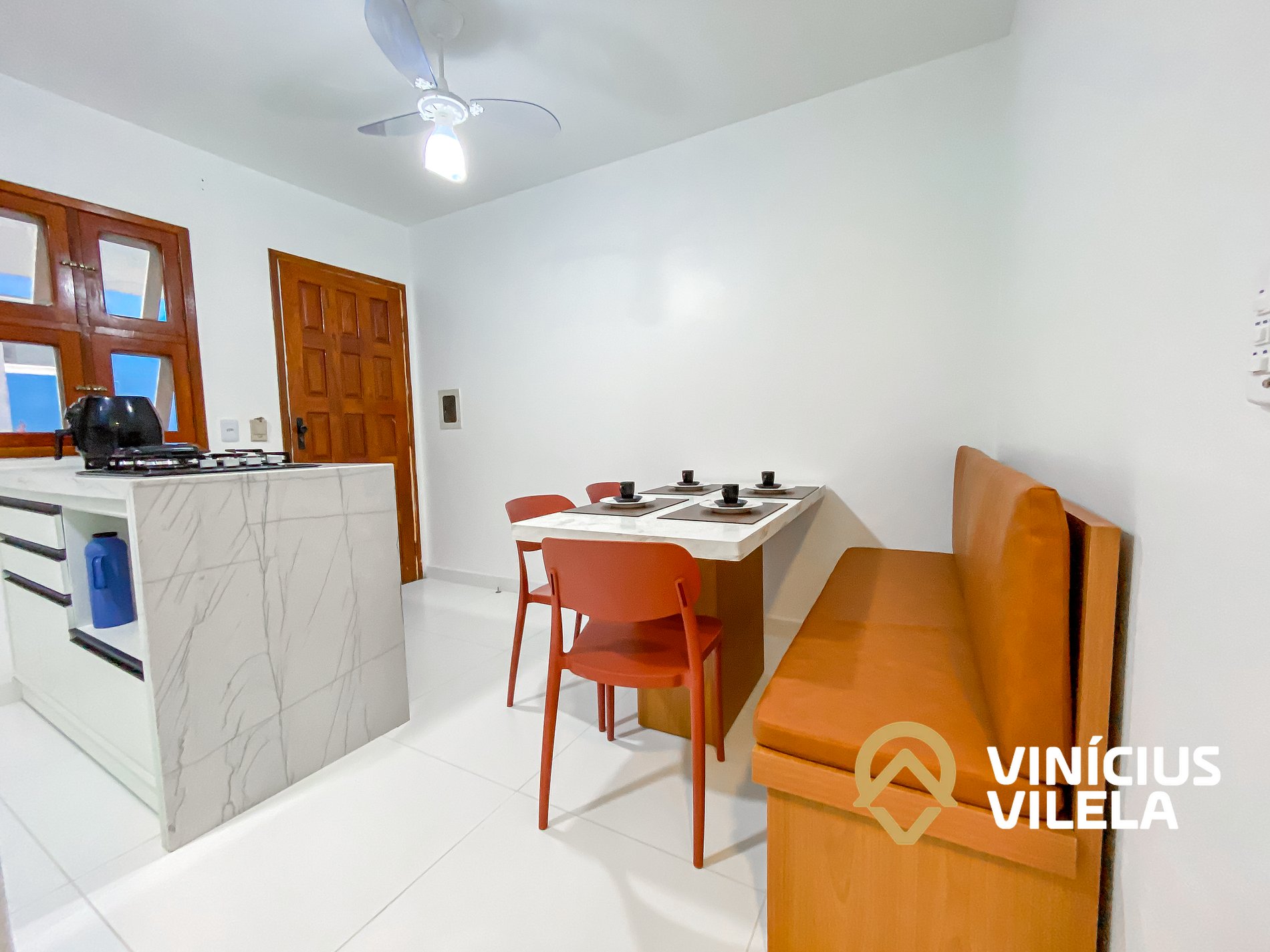 - Sala climatizada conjugada com cozinha completa.