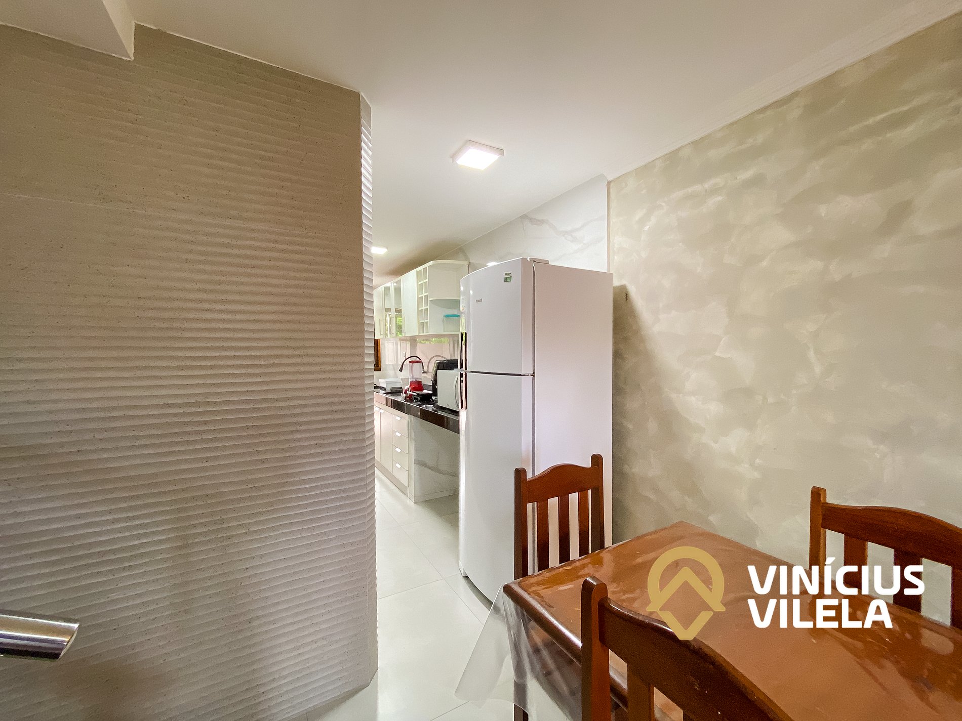 A cozinha é bem completa e oferece eletrodomésticos como liquidificador, micro-ondas, Airfryer, sanduicheira fogão, geladeira duplex, utensílios, panelas, talheres, pratos, xícaras, garrafa térmica de café ,copos de vidro, e nas gavetas sempre você vai encontrar pano de prato e outros utensílios essenciais em uma cozinha. A casa conta com uma área gourmet privativa