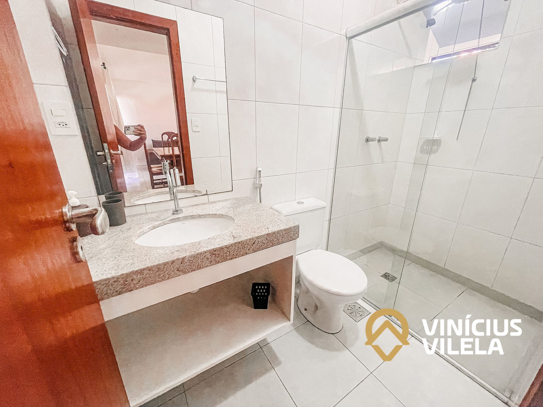 O apto dispõe de 2 banheiros com chuveiro elétrico.