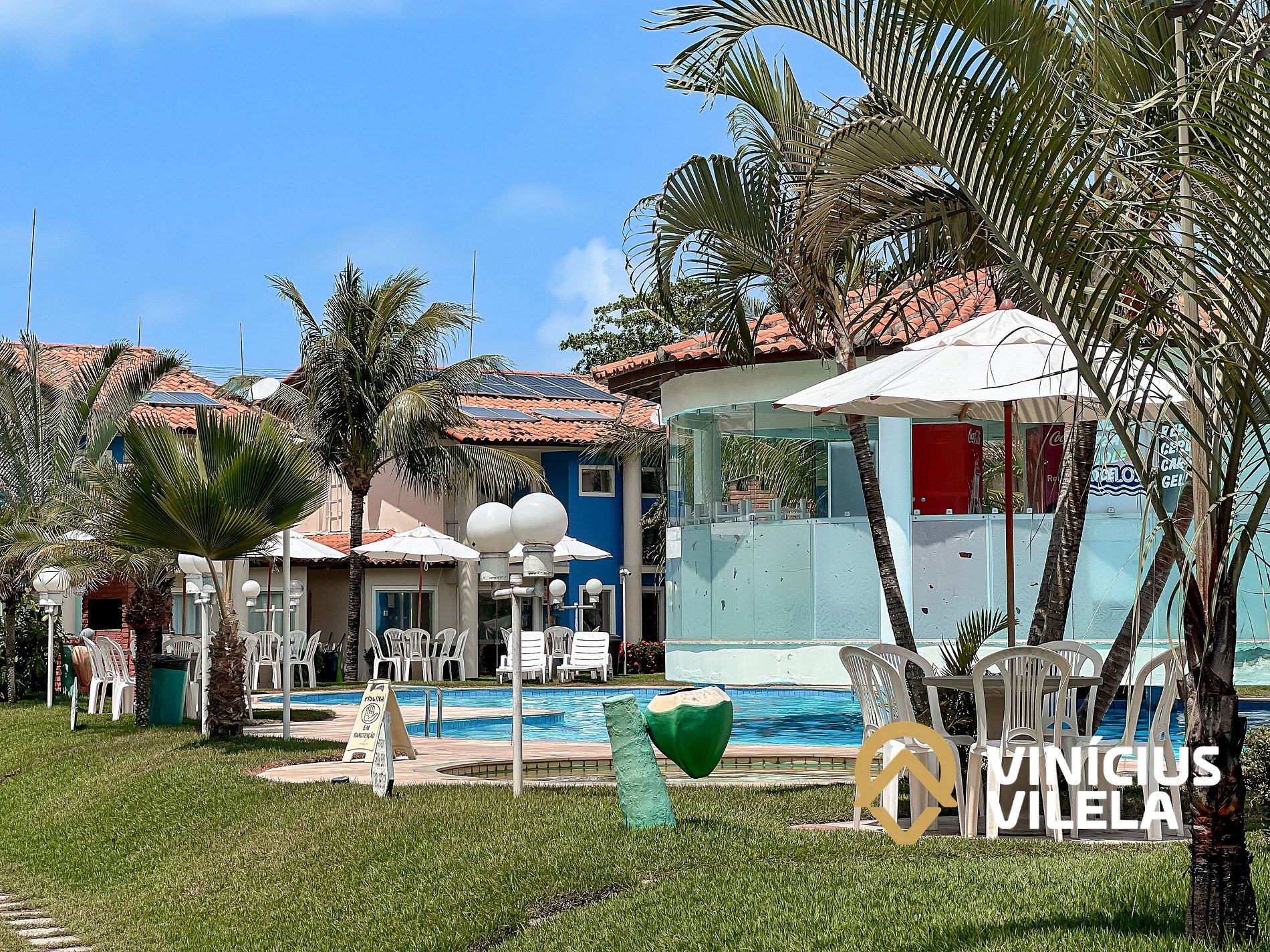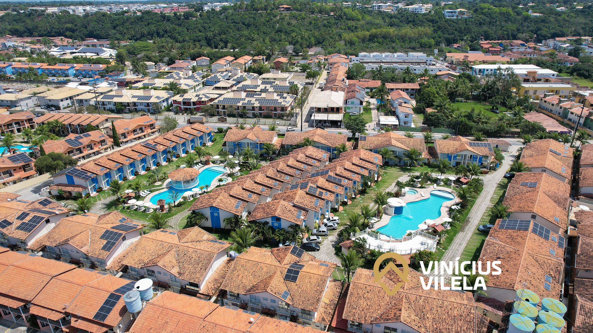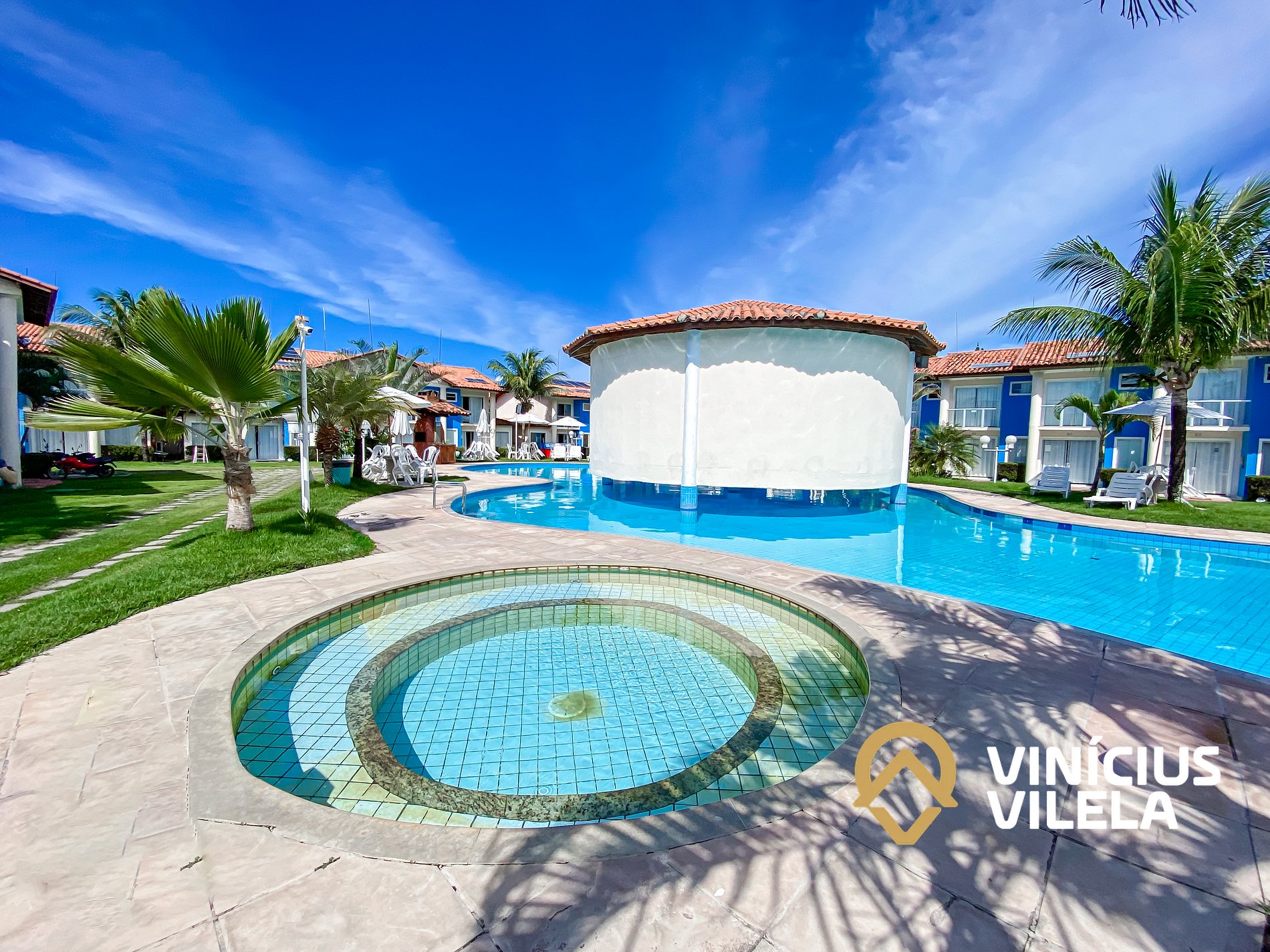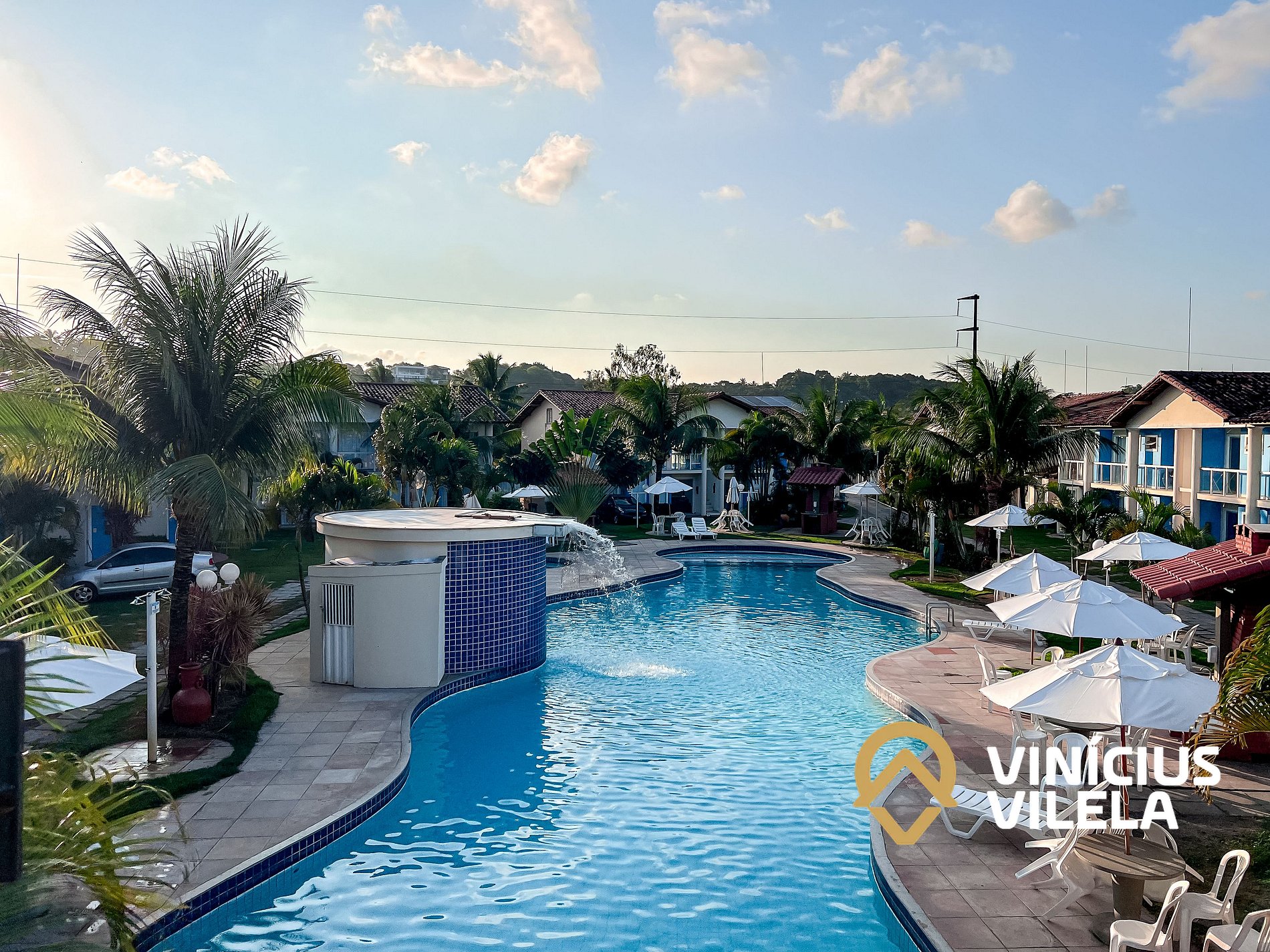 Condomínio com piscinas, adulto e infantil, sauna. Churrasqueiras , portaria 24hrs, casas com 1, 2 ou 3 suítes com mobiliário completo, suítes com ar condicionado, tv. Localizado a poucos metros da praia de Taperapuã e das melhores cabanas de praia da região