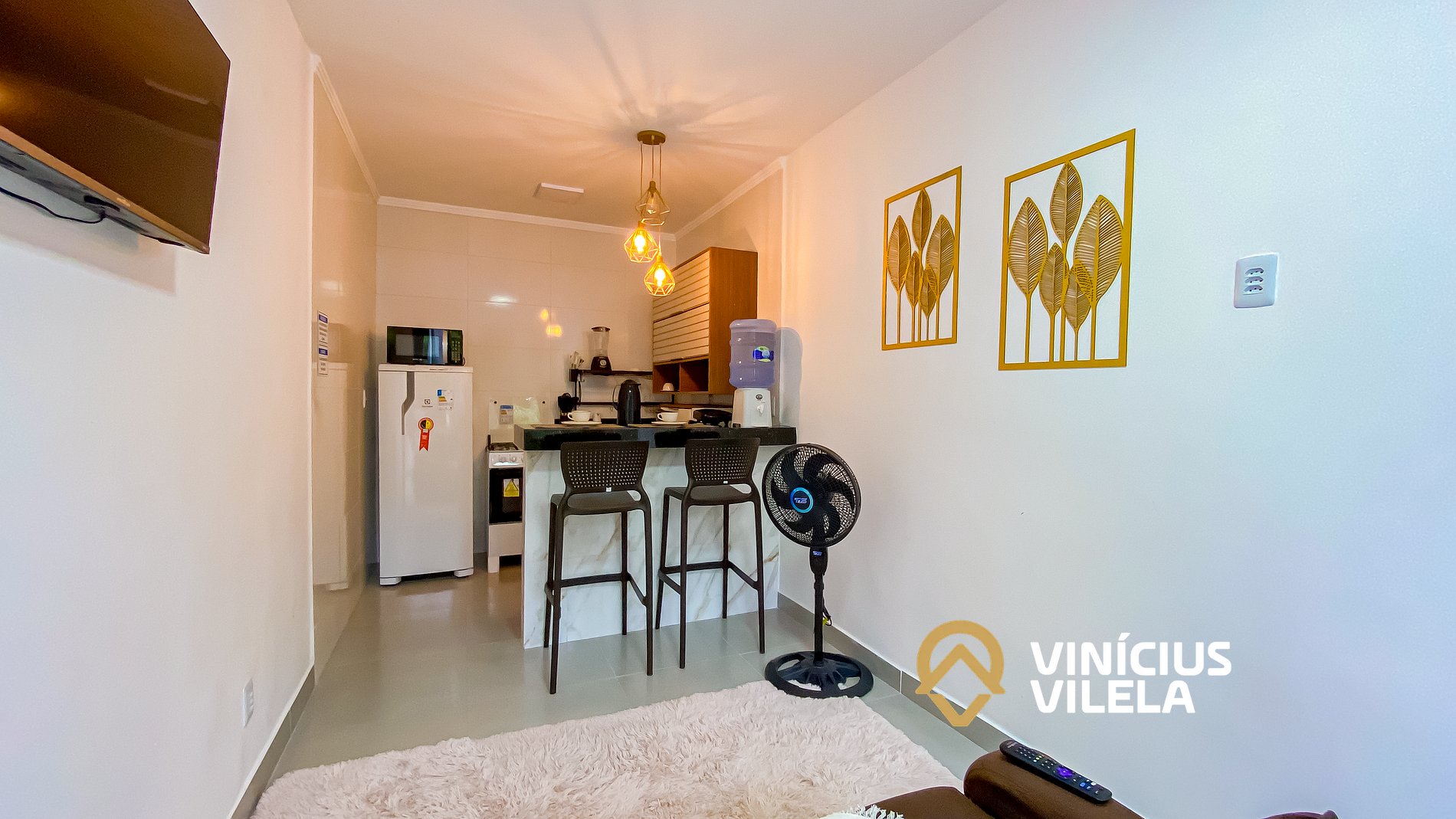 Seja bem-vindo(a)! Esta acomodação é administrada pela Flat`s Vinicius Vilela, especialista em locação por temporada em Porto Seguro. Kitnet aconchegante localizada a poucos passos da Praia de Taperapuã, oferecendo conforto e praticidade. Possui sala com sofá-cama e TV, cozinha completa, suíte com ar-condicionado, cama de casal e duas de solteiro. Roupa de cama e banho inclusas. Não há estacionamento no local