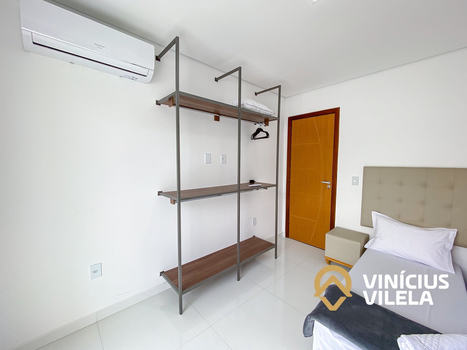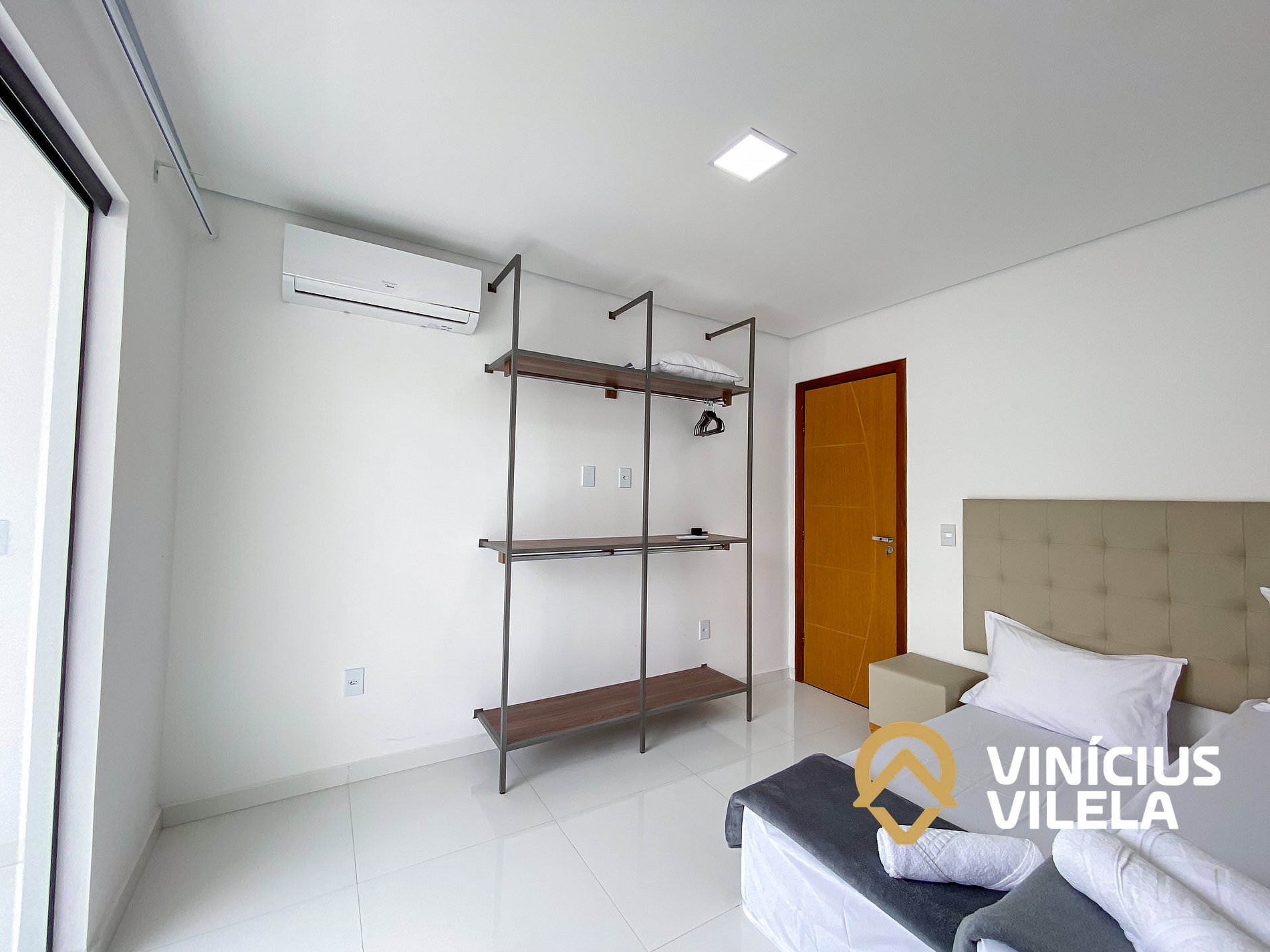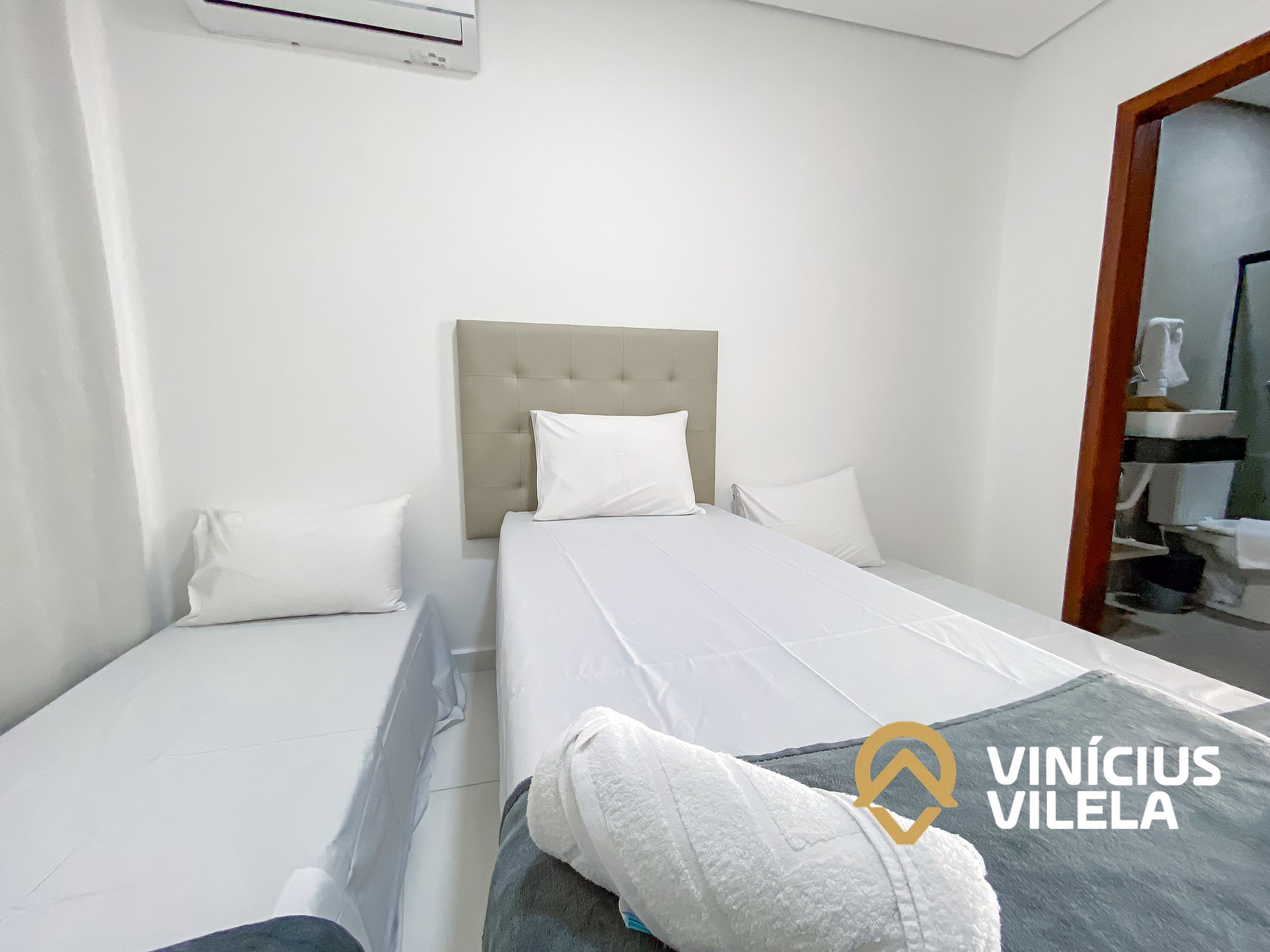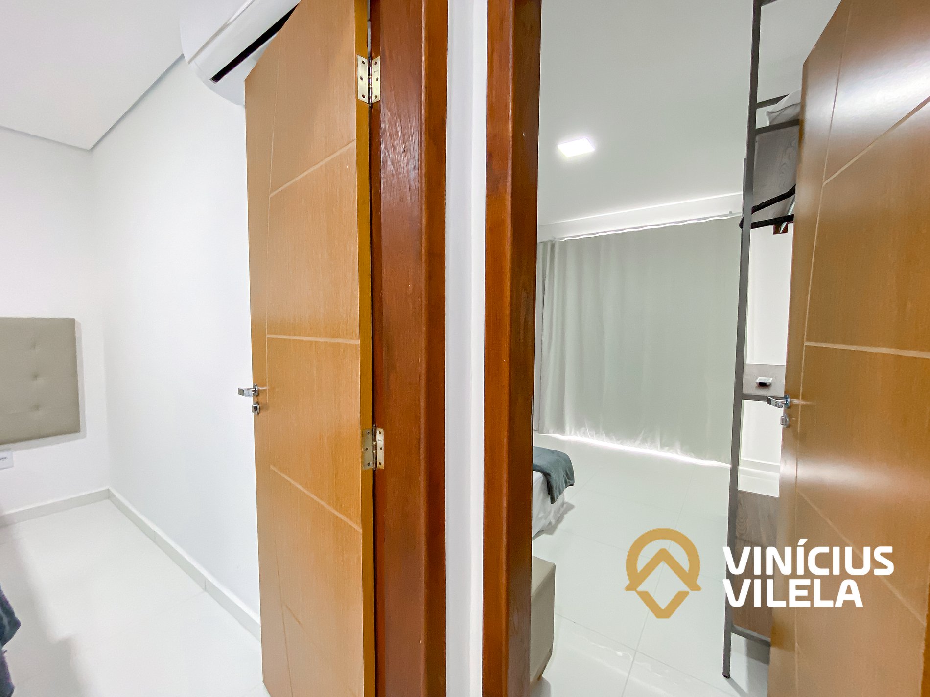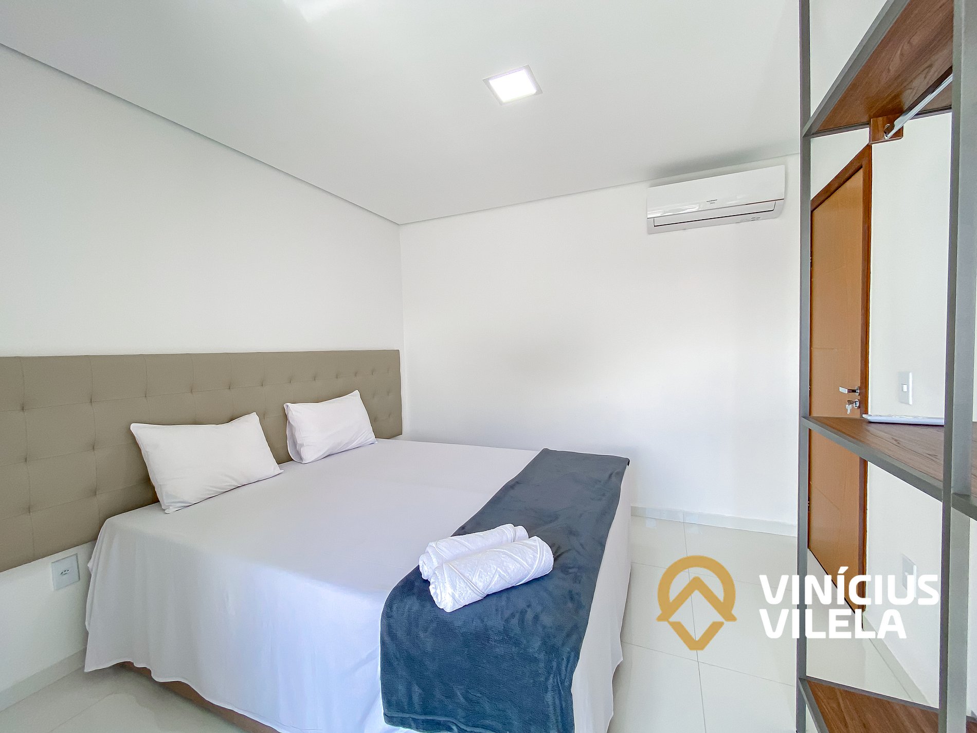 - 3 quartos sendo 2 suítes e 1 demi-suíte, ambos com ar condicionado