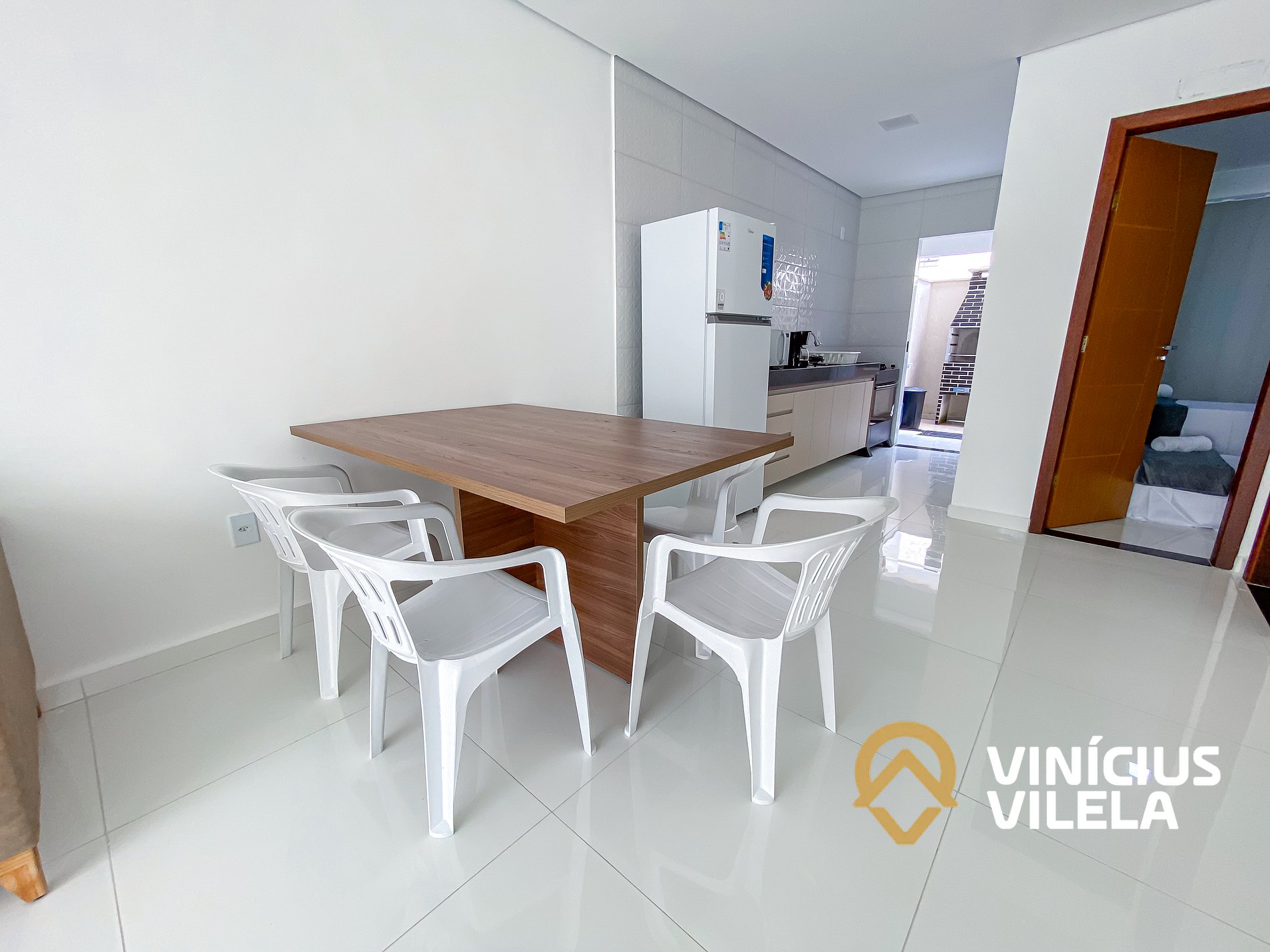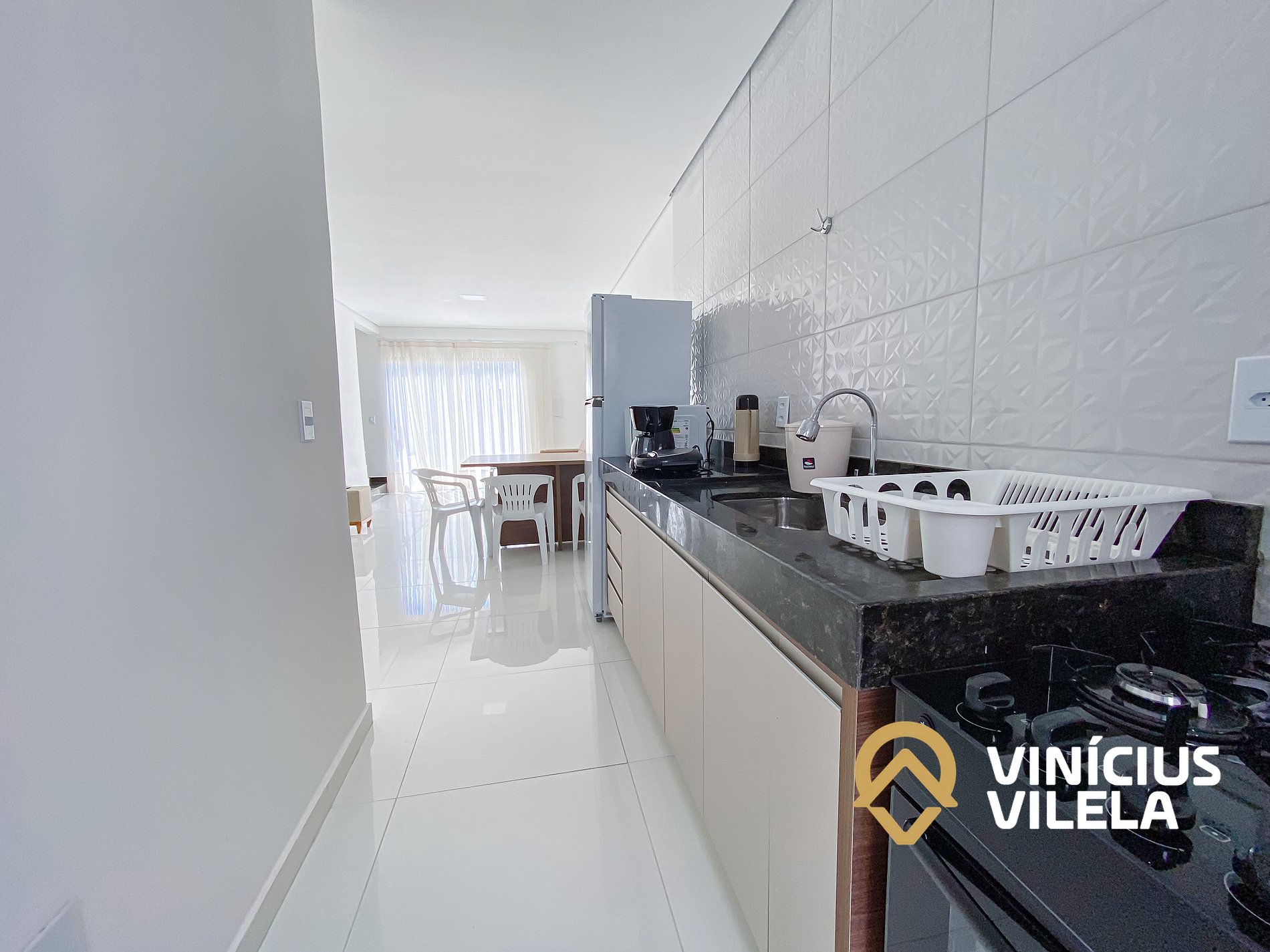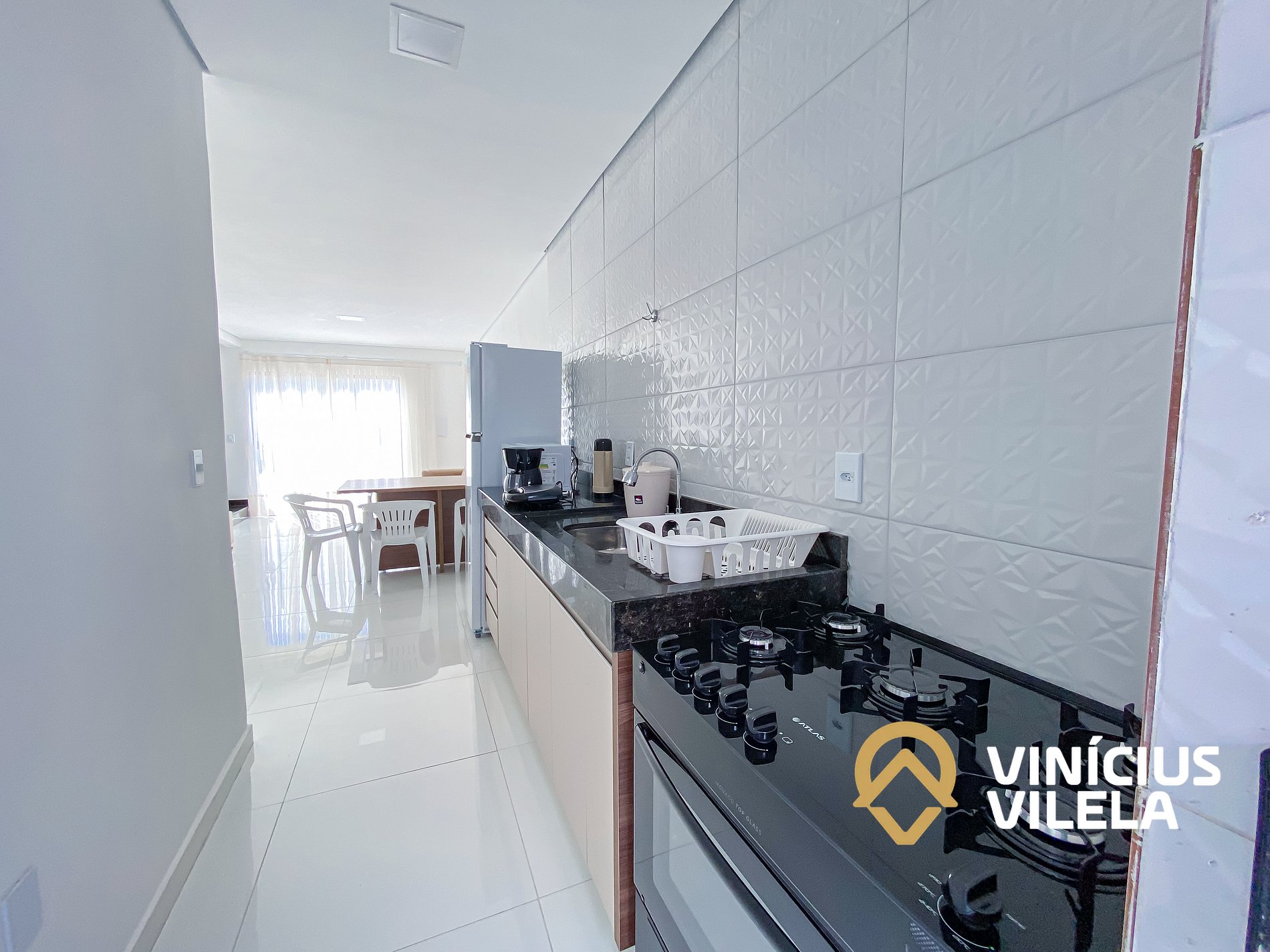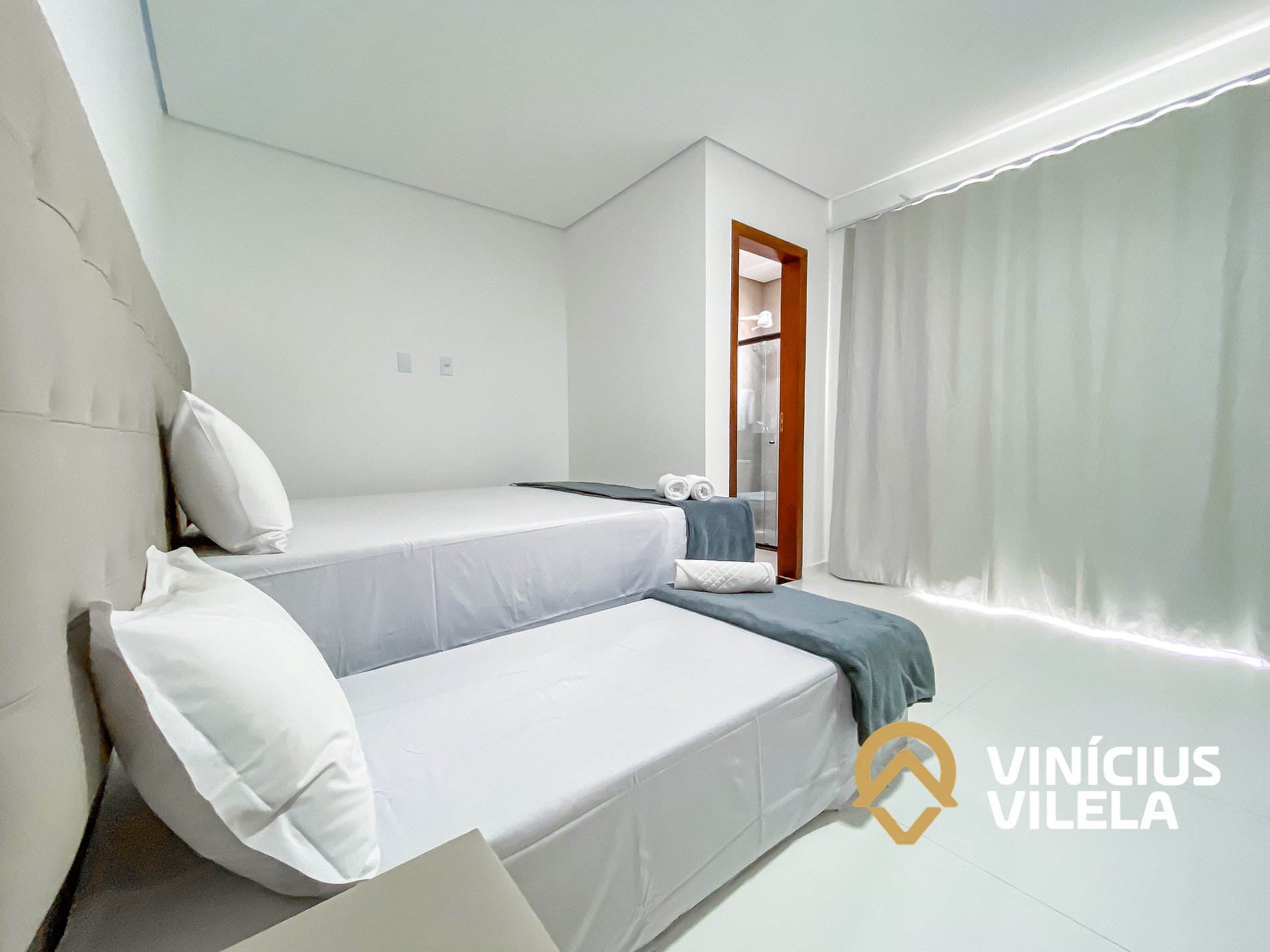 O apartamento conta com 3 quartos, sendo 2 suítes no pavimento superior uma com uma cama cama de casal e 1 de solteiro e uma demi-suite no térreo com uma 3 camas de solteiro, todos com ar condicionado Split, roupas de cama e banho, a sala com sofá- e TV , internet Wi-fi 300MBPS exclusiva do apartamento. Sala de jantar com mesa e 6 cadeiras, cozinha completa com armários , fogão, micro ondas, airfryer e utensílios, além de área de serviço com ducha e churrasqueira privativa.