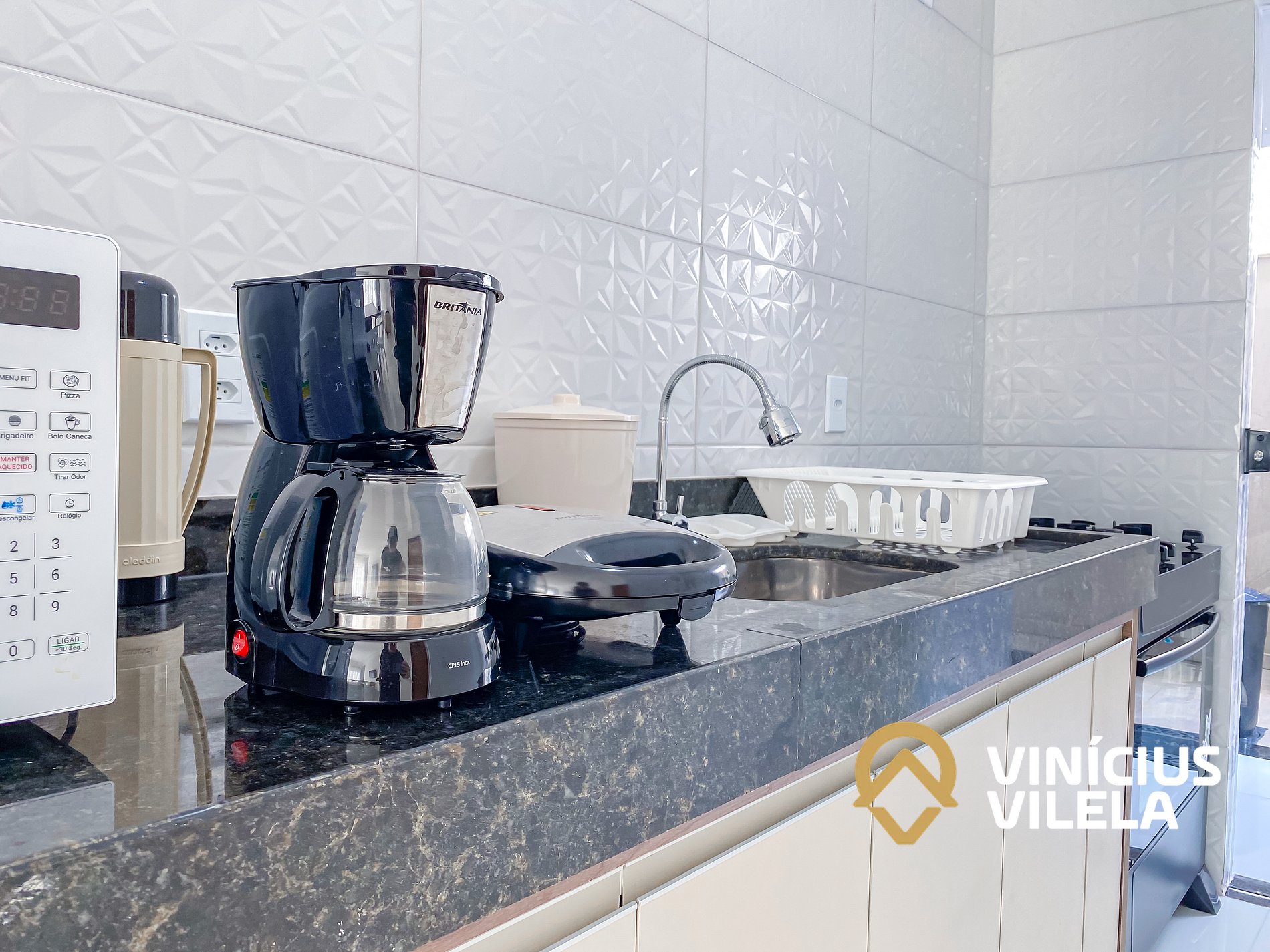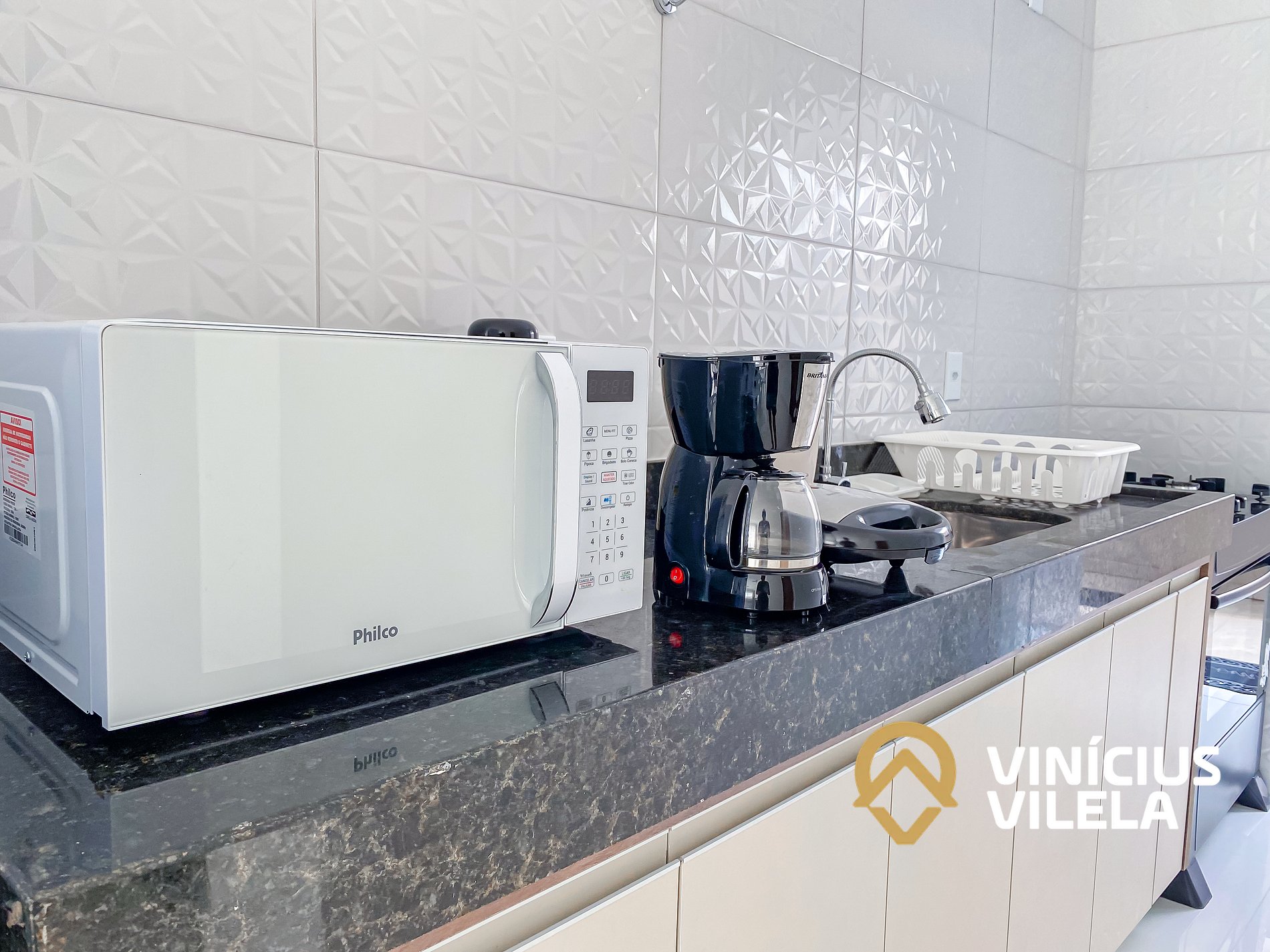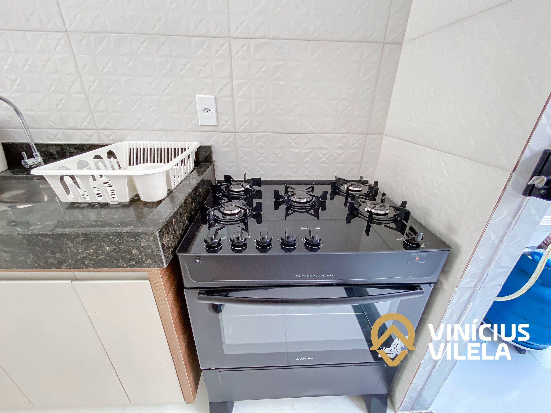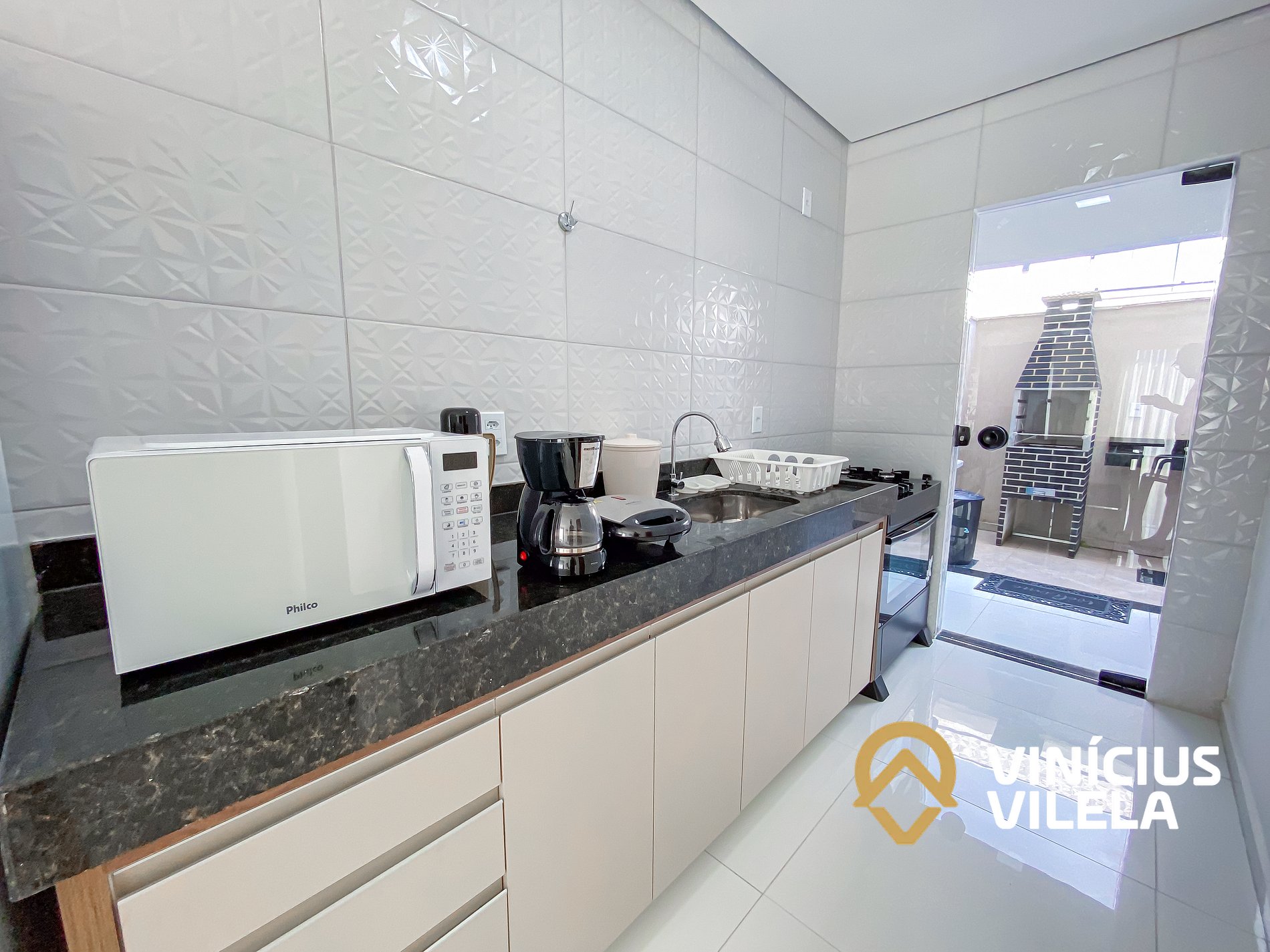 O apartamento conta com 3 quartos, sendo 2 suítes no pavimento superior uma com uma cama cama de casal e 1 de solteiro e uma demi-suite no térreo com uma 3 camas de solteiro, todos com ar condicionado Split, roupas de cama e banho, a sala com sofá- e TV , internet Wi-fi 300MBPS exclusiva do apartamento. Sala de jantar com mesa e 6 cadeiras, cozinha completa com armários , fogão, micro ondas, airfryer e utensílios, além de área de serviço com ducha e churrasqueira privativa.