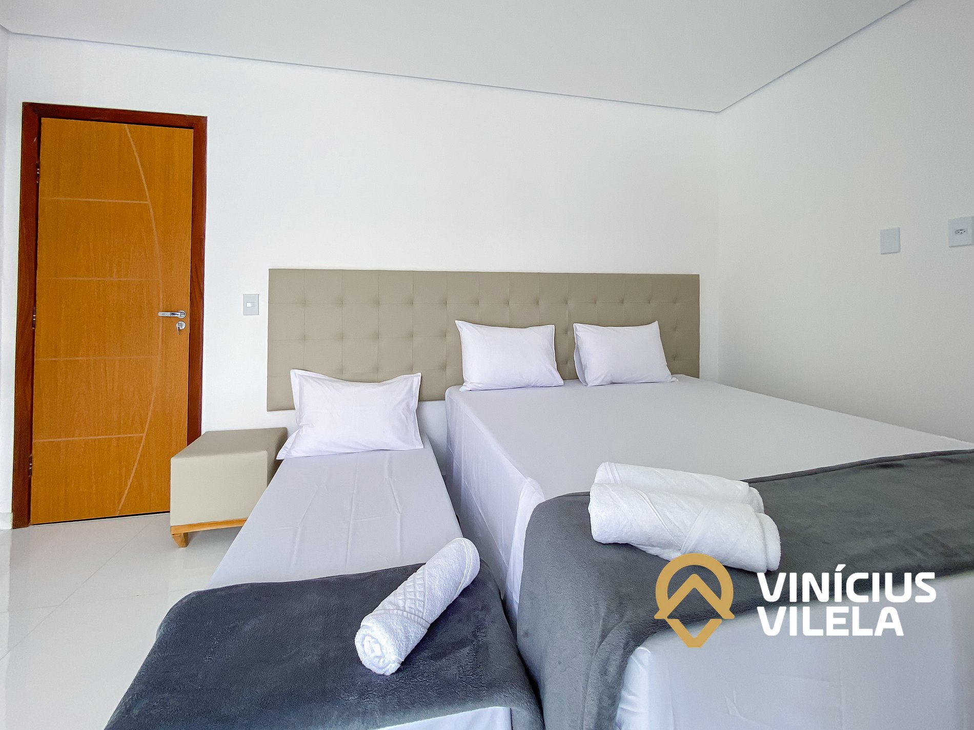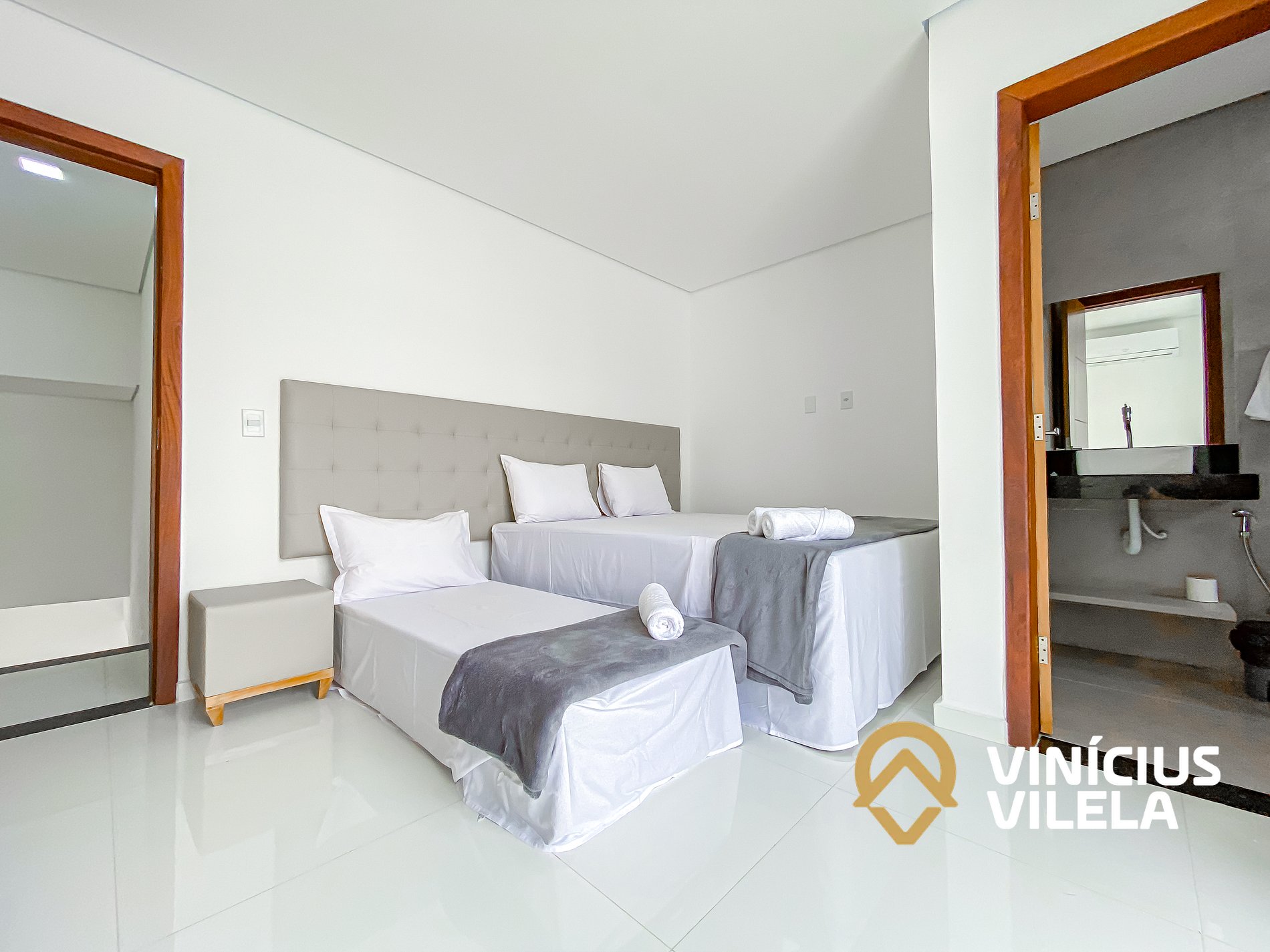- 3 quartos sendo 2 suítes e 1 demi-suíte, ambos com ar condicionado (casas com acomodações para de 08 a 12 hóspedes)