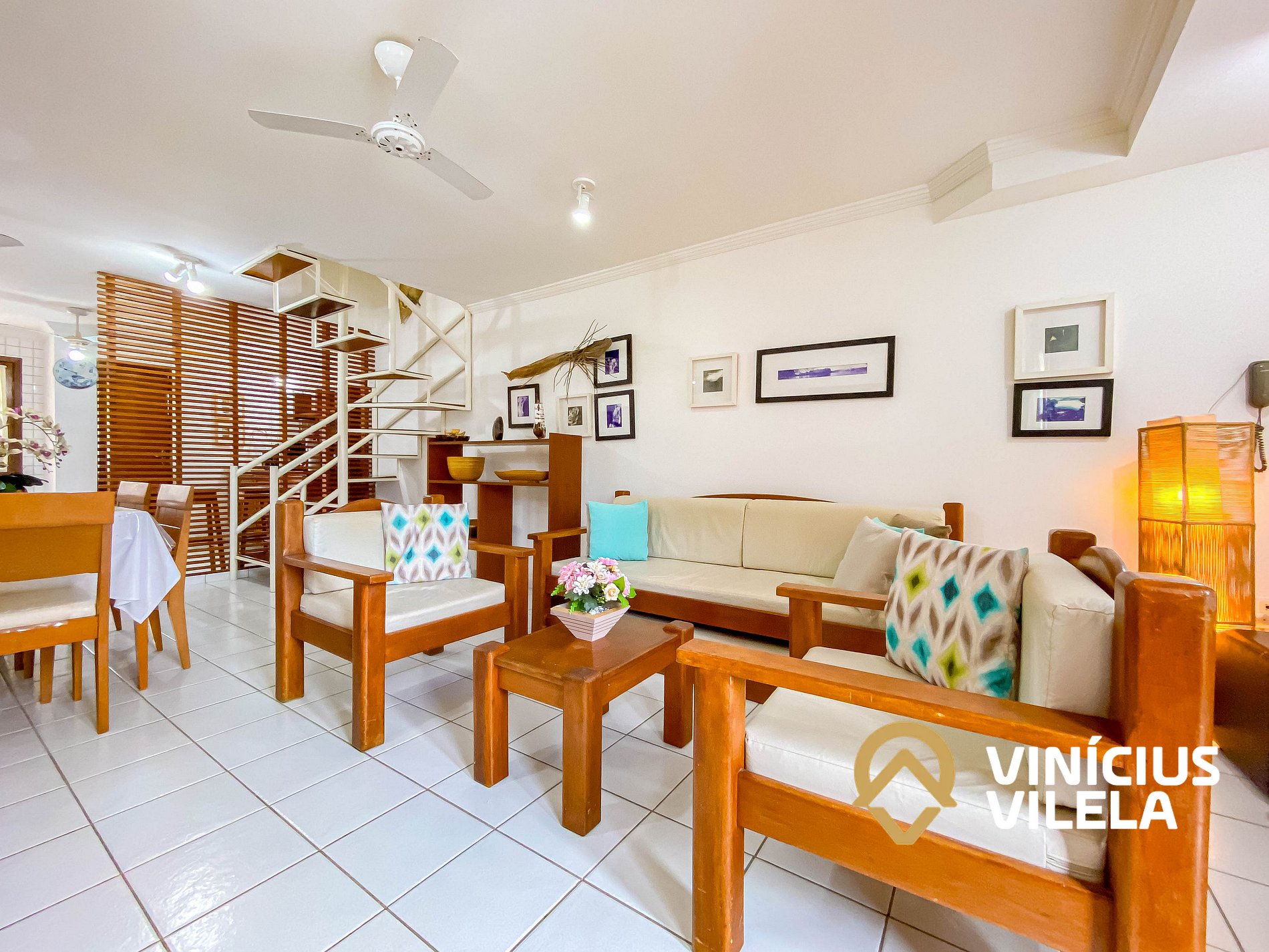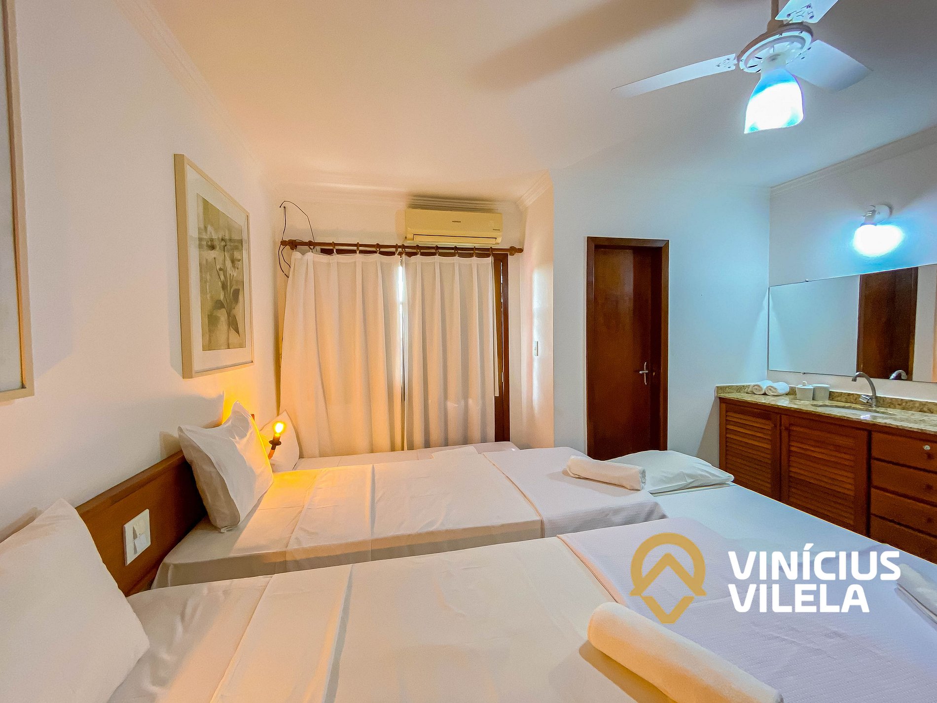 As 2 suítes no pavimento superior possui ar condicionado, ventilador de teto,