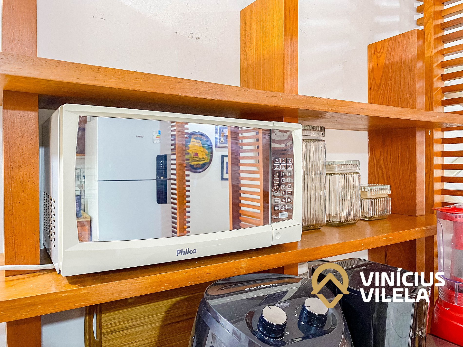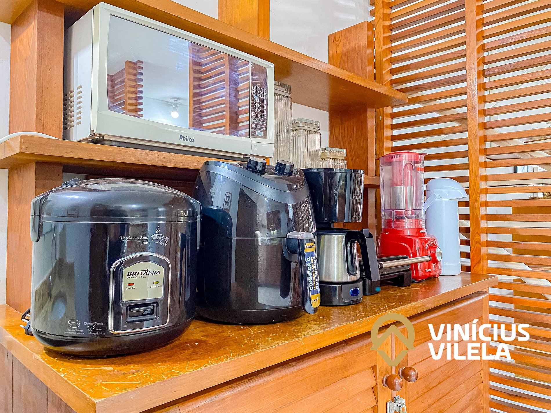 A cozinha é bem completa e oferece eletrodomésticos como liquidificador, micro-ondas,