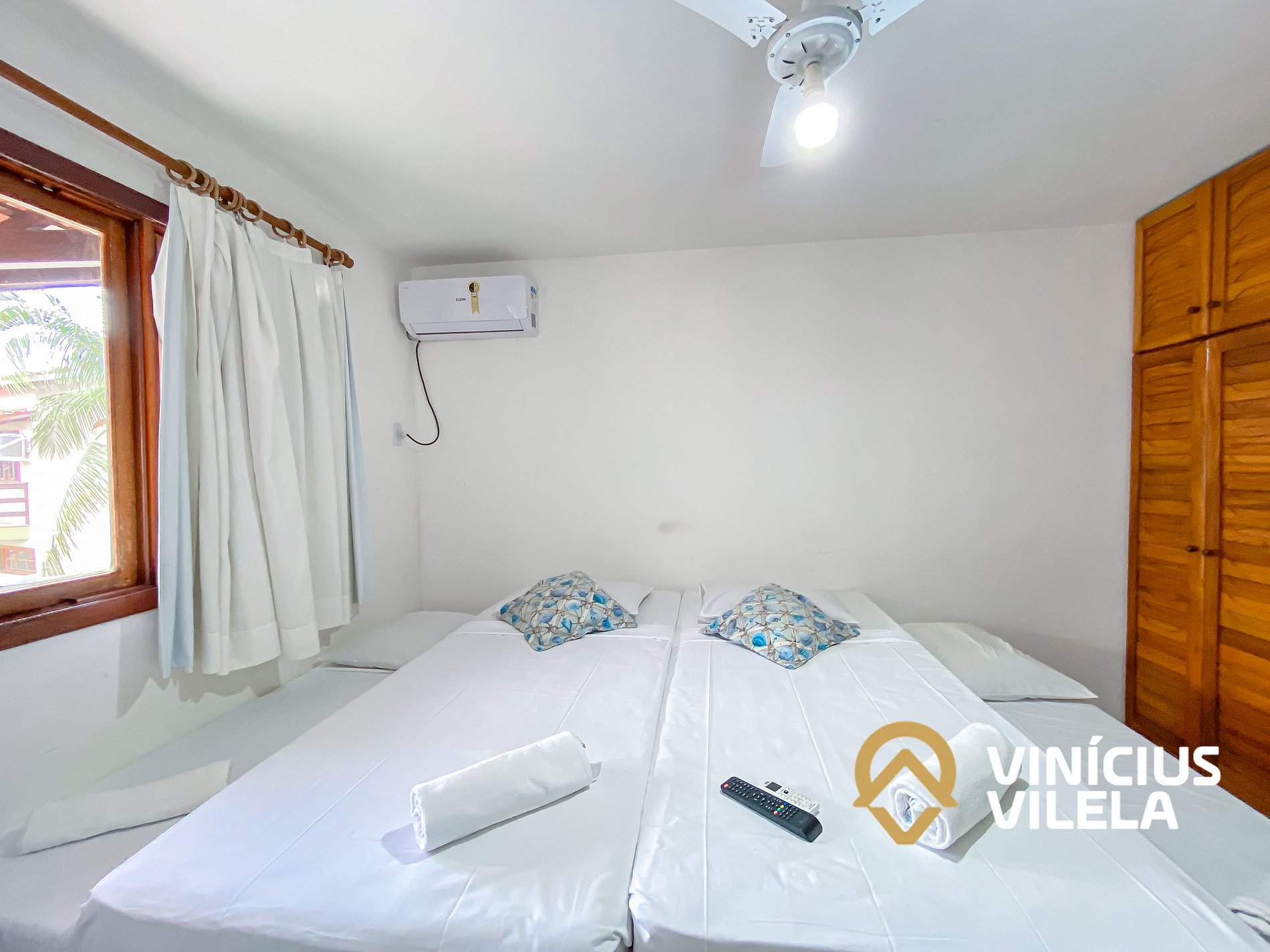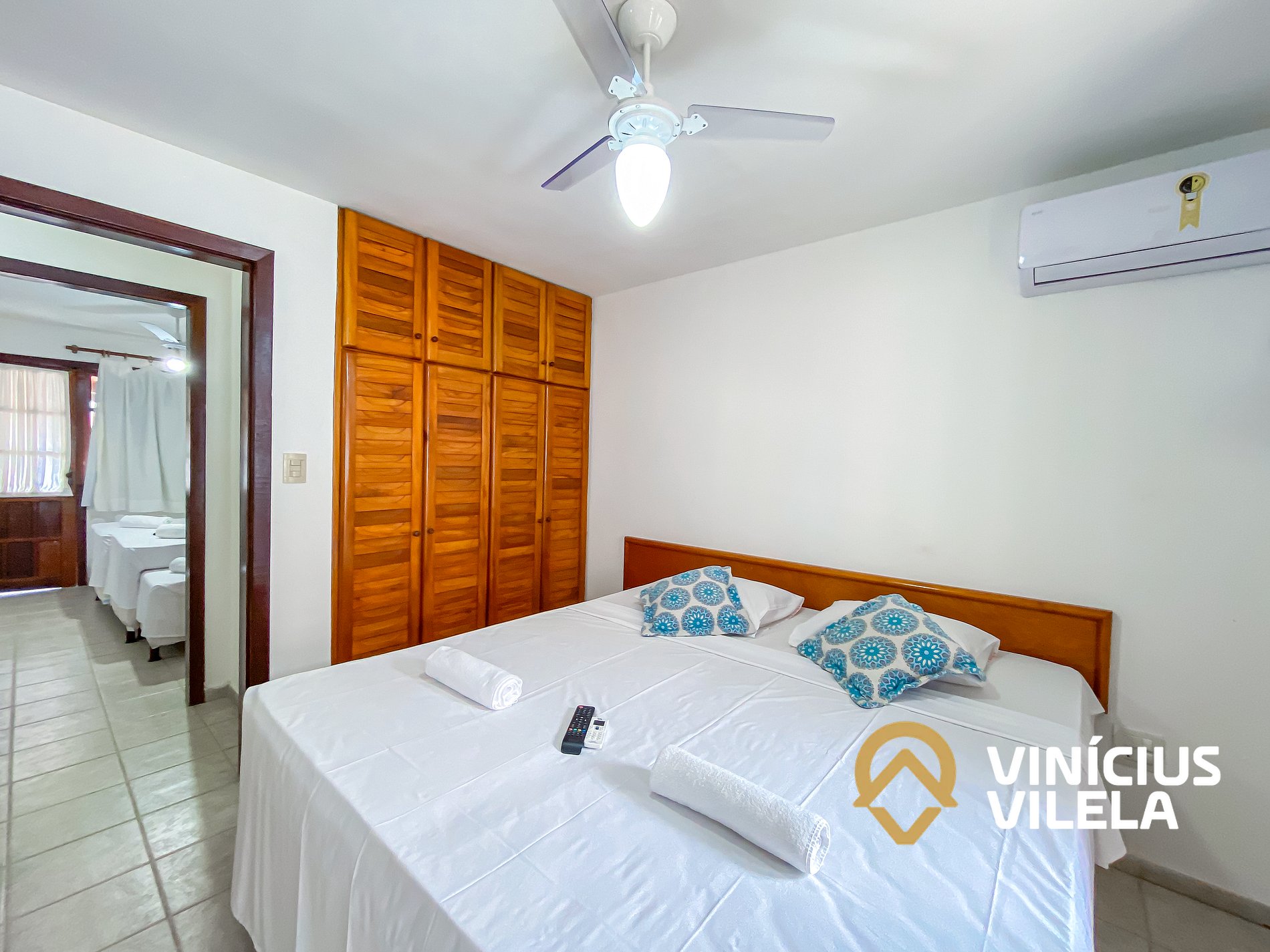 A primeira suíte possui ar-condicionado, ventilador de teto , 01 cama de casal, travesseiros, . Oferecemos o enxoval de cama e banho. No quarto você ainda terá um roupeiro para armazenar suas bagagens.